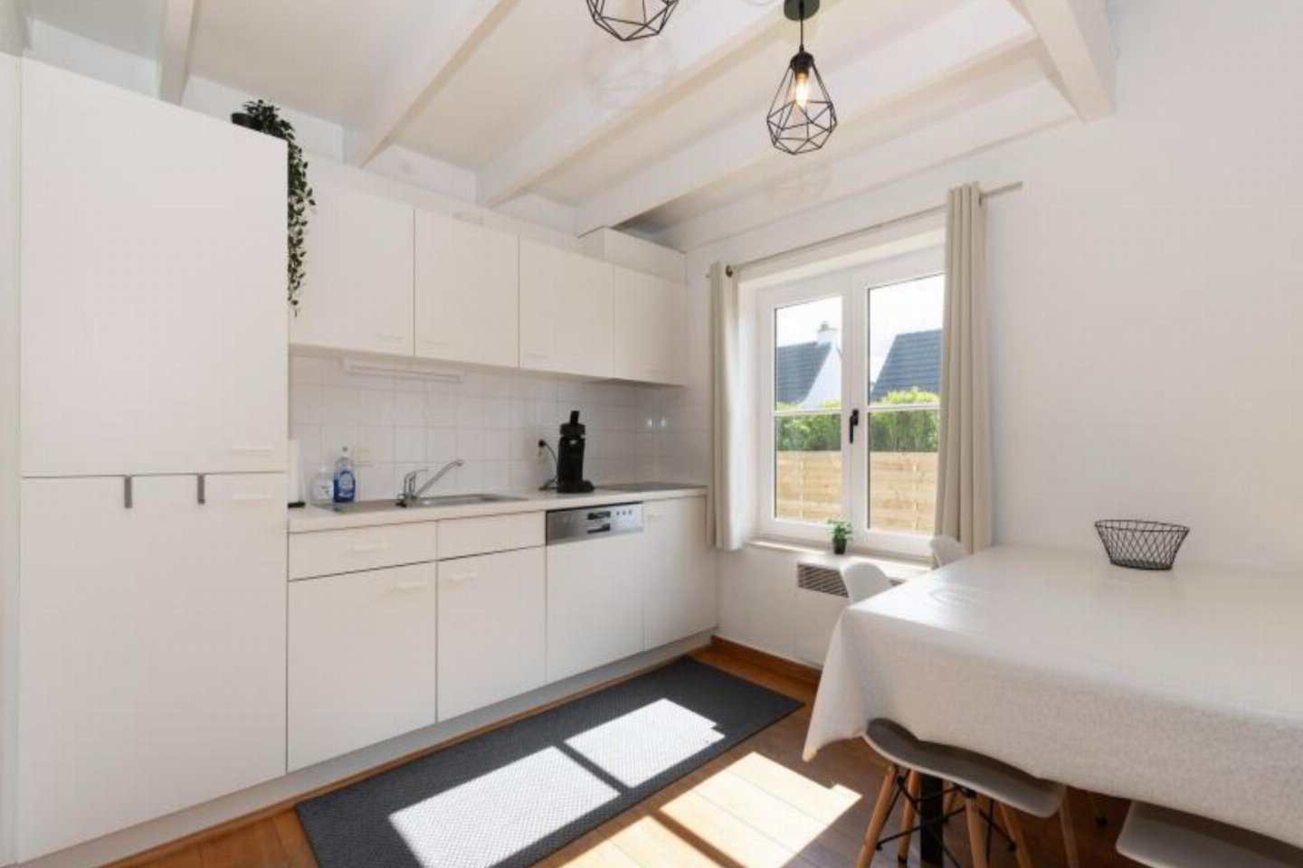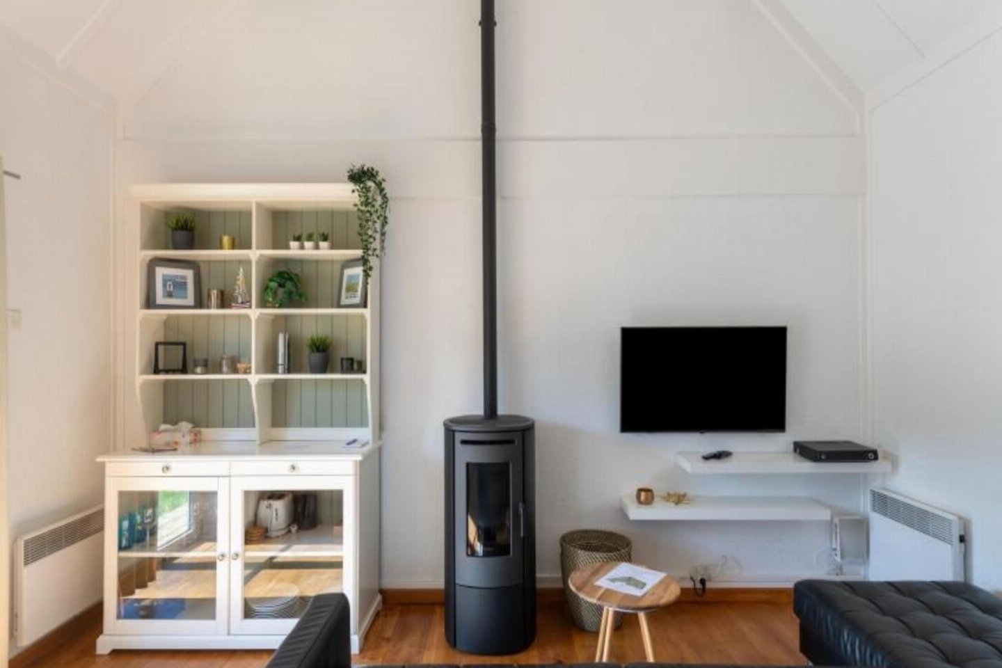 Begane grond: (open keuken(kookplaat, waterkoker, afzuigkap, koffiezetapparaat(senseo pads), magnetron, koelkast( vriesvak)), woon/eetkamer(TV(flatscreen, digital), eettafel, kachel(hout), zithoek), slaapkamer(2-pers. bed(2 persoons dekbed, 140 x 200 cm)), slaapkamer(2-pers. bed(2 persoons dekbed, 140 x 200 cm)), badkamer(bad met douche, wastafel), toilet(wc))