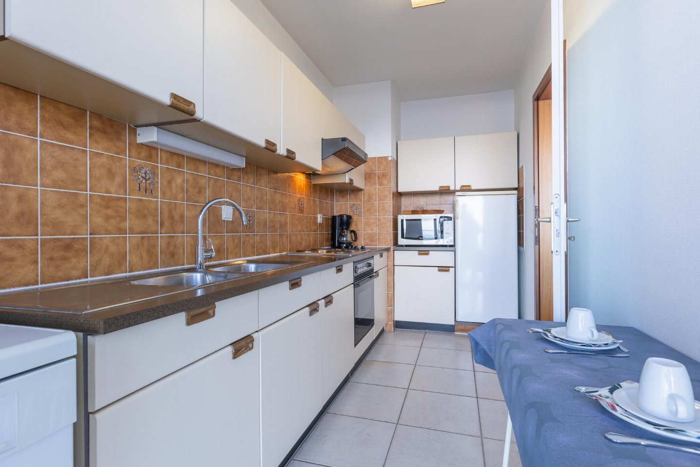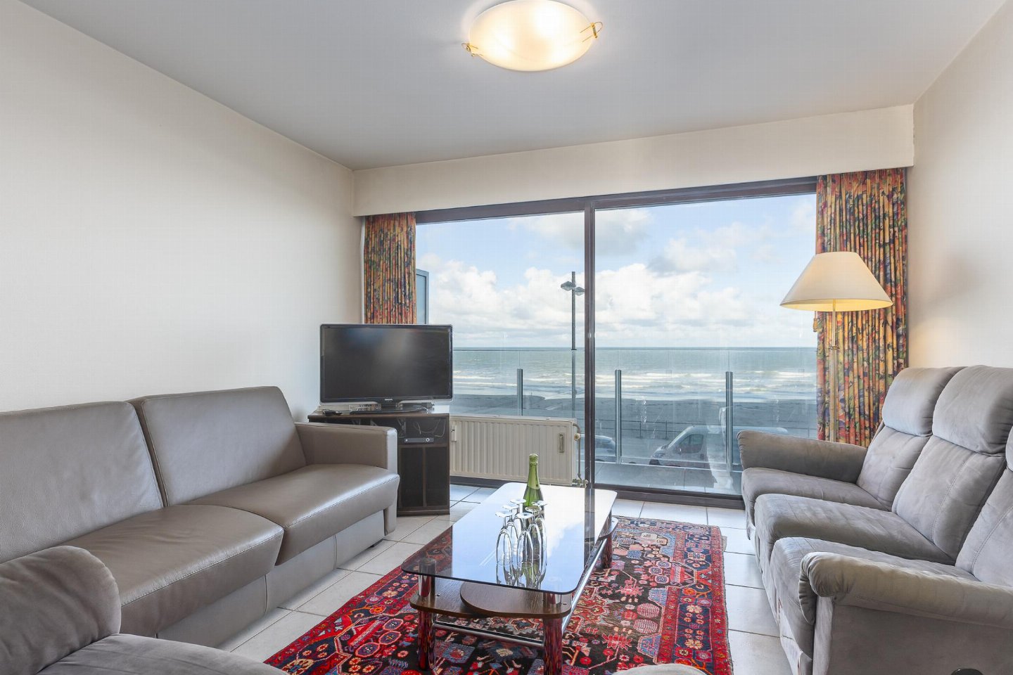 Appartement op de 1e verdieping met 1 slaapkamer (dubbel bed) en extra slaapmogelijkheden in de woonkamer. Lichtrijke living met zetelbed voor 2 personen en ruim terras met frontaal zeezicht. Volledig ingerichte keuken en badkamer met ligbad; apart toilet.