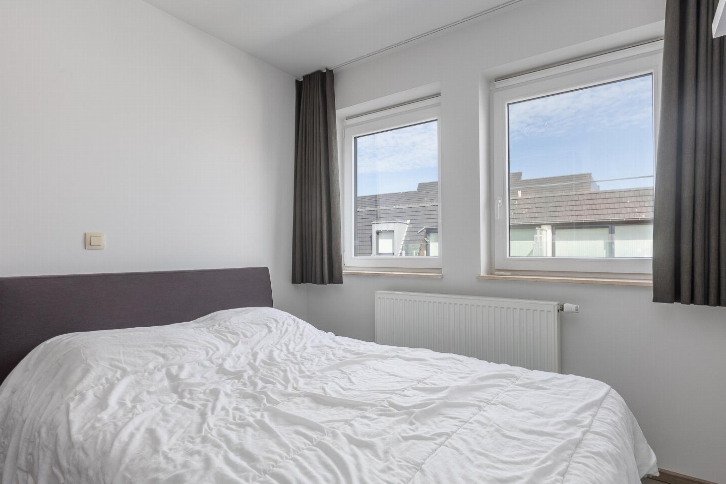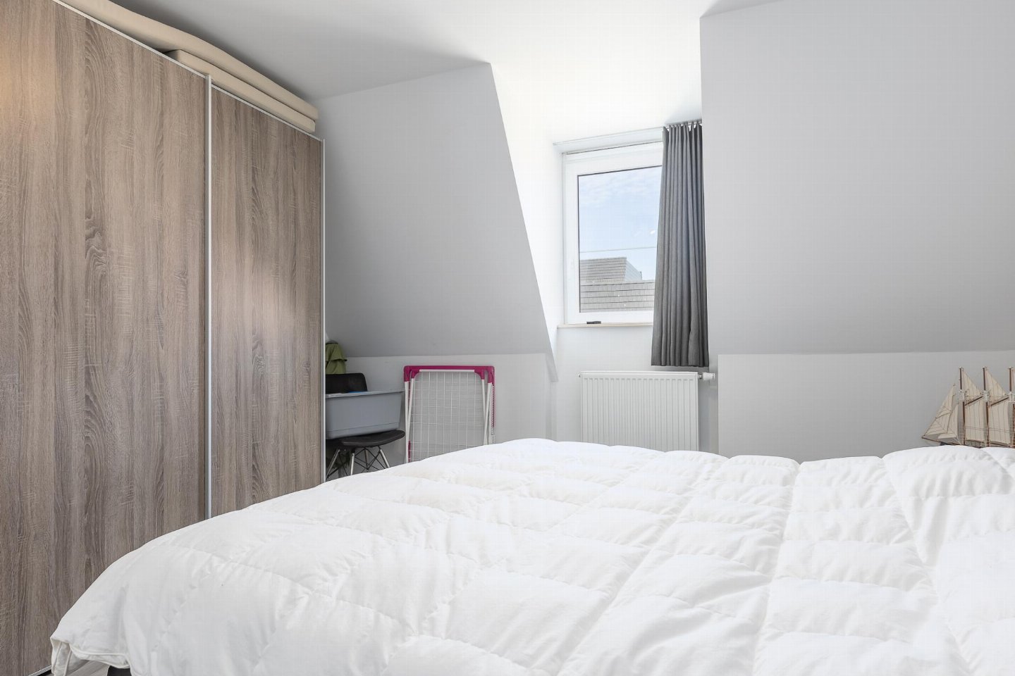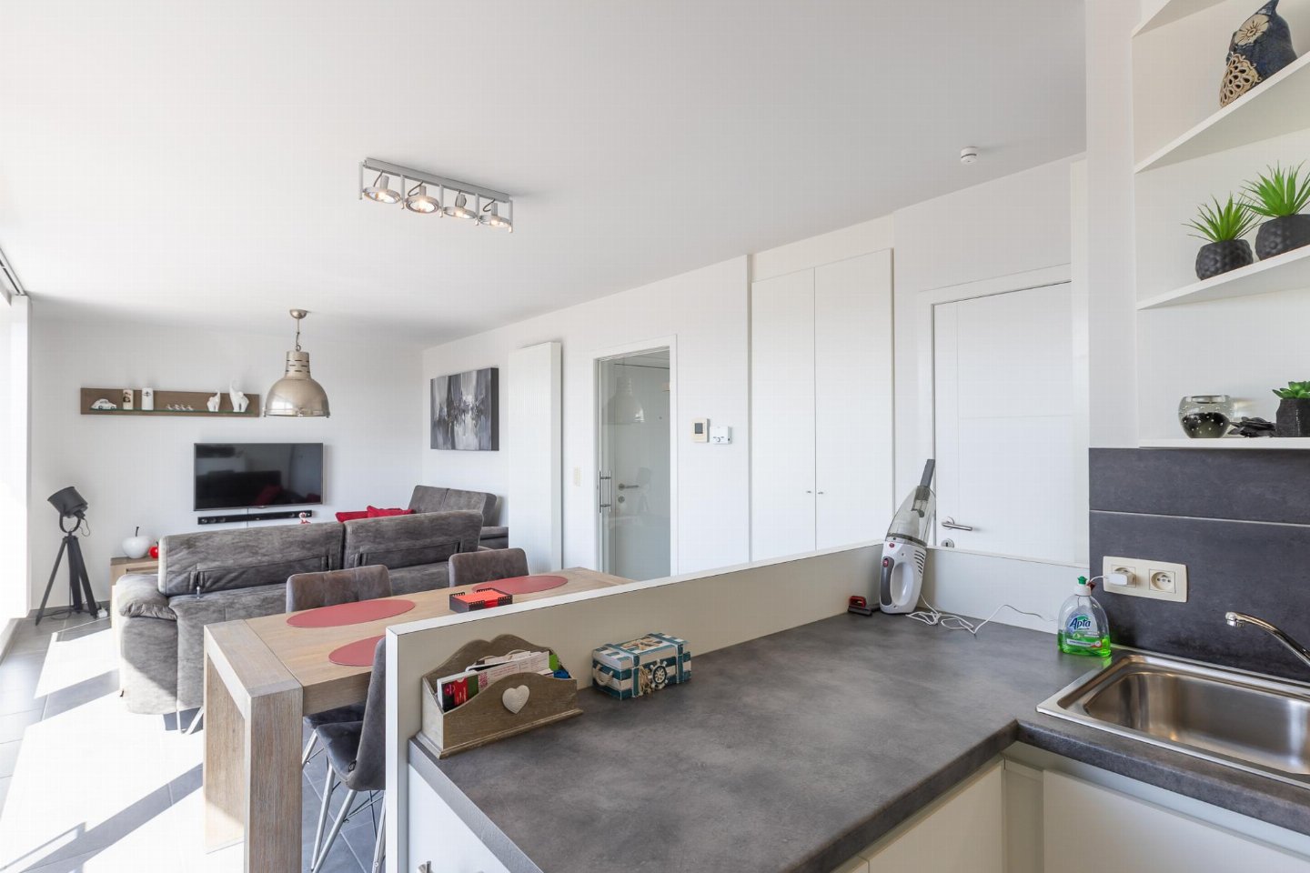Lichtrijk appartement op de 4de verdieping met 2 slaapkamers, elk met dubbel bed. Lichte woonkamer en open, volledig ingerichte keuken. Toegang tot breed zongericht terras, ideaal voor ontbijt in de zon. Moderne badkamer met ligbad/douche en apart toilet. bed(2 persoons dekbed, 180 x 210 cm) , slaapkamer met 2-pers.