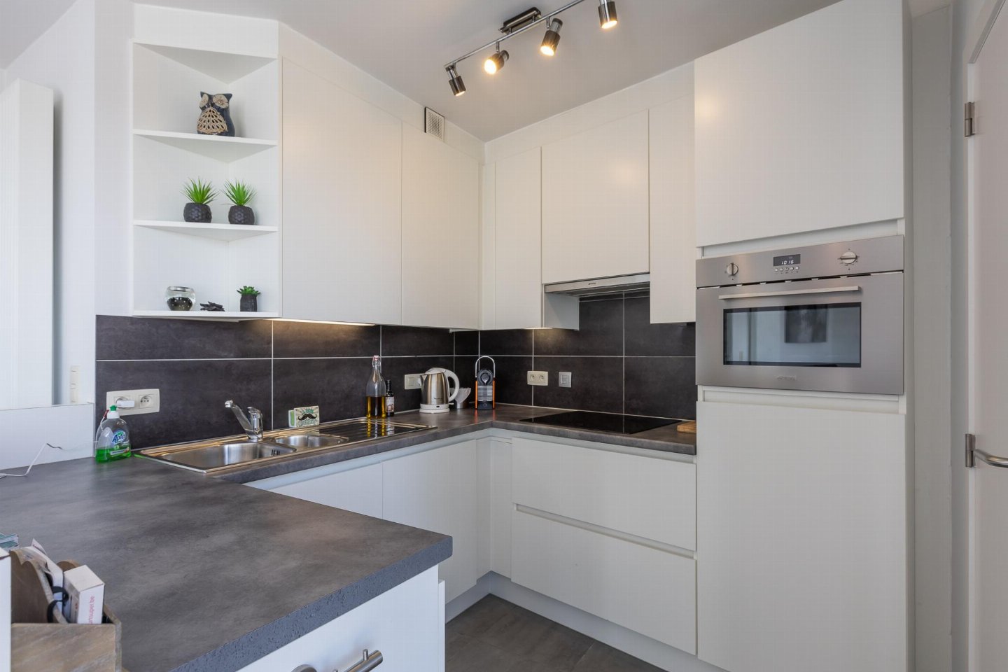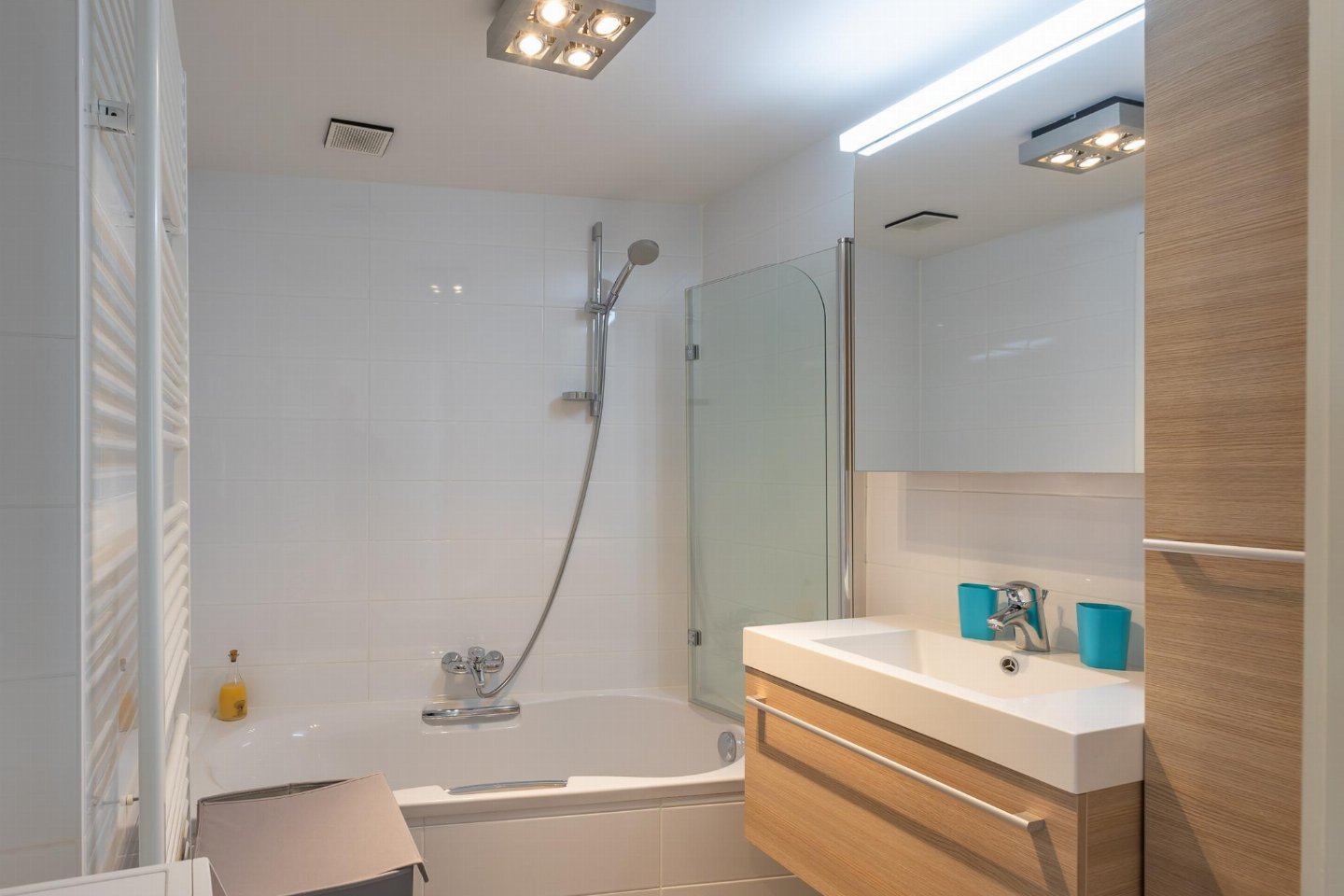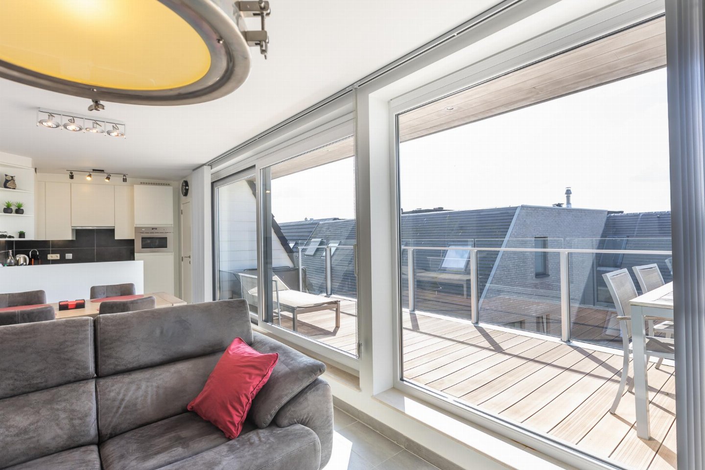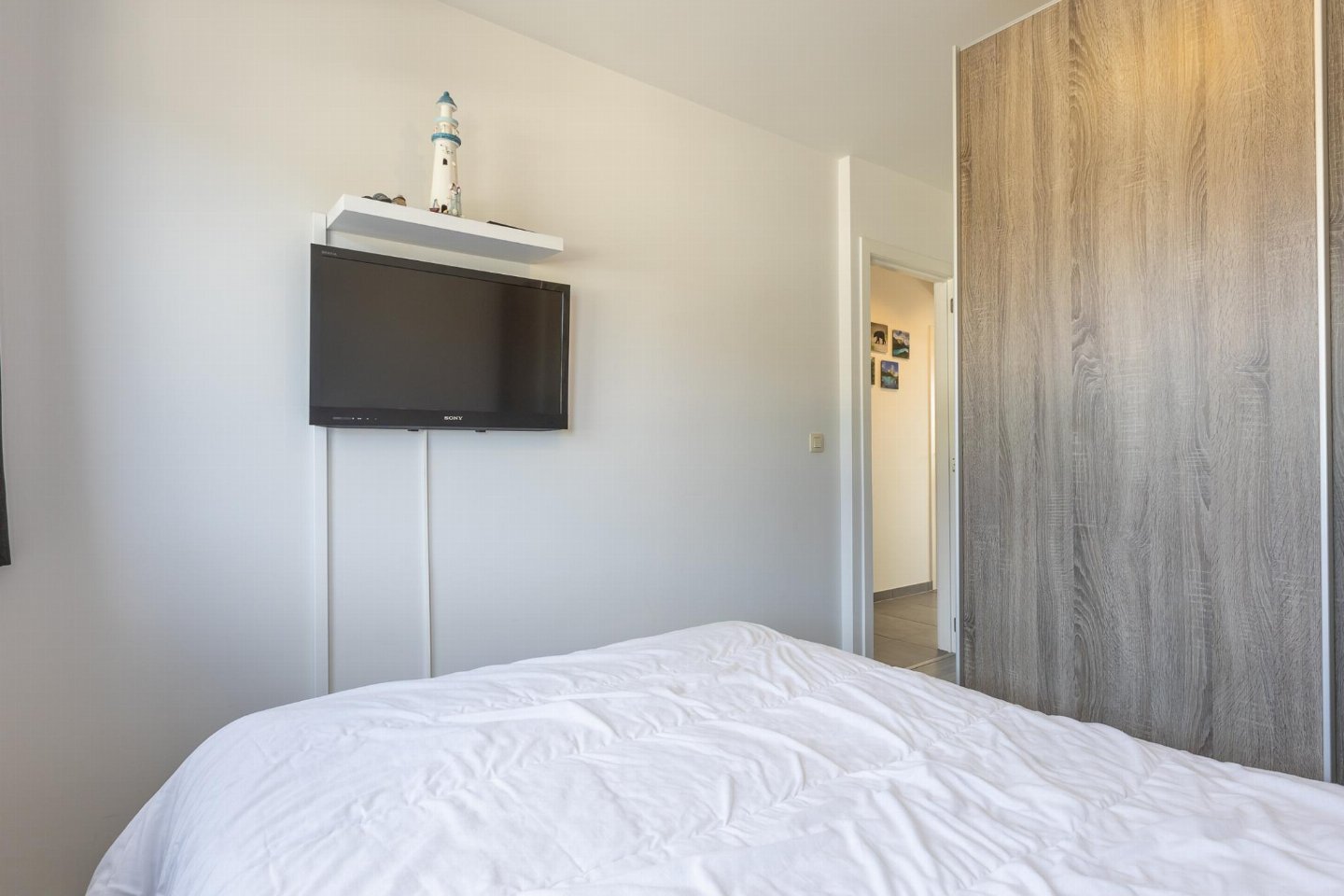 Lichtrijk appartement op de 4de verdieping met 2 slaapkamers, elk met dubbel bed. Lichte woonkamer en open, volledig ingerichte keuken. Toegang tot breed zongericht terras, ideaal voor ontbijt in de zon. Moderne badkamer met ligbad/douche en apart toilet. bed(2 persoons dekbed, 180 x 210 cm) , slaapkamer met 2-pers.