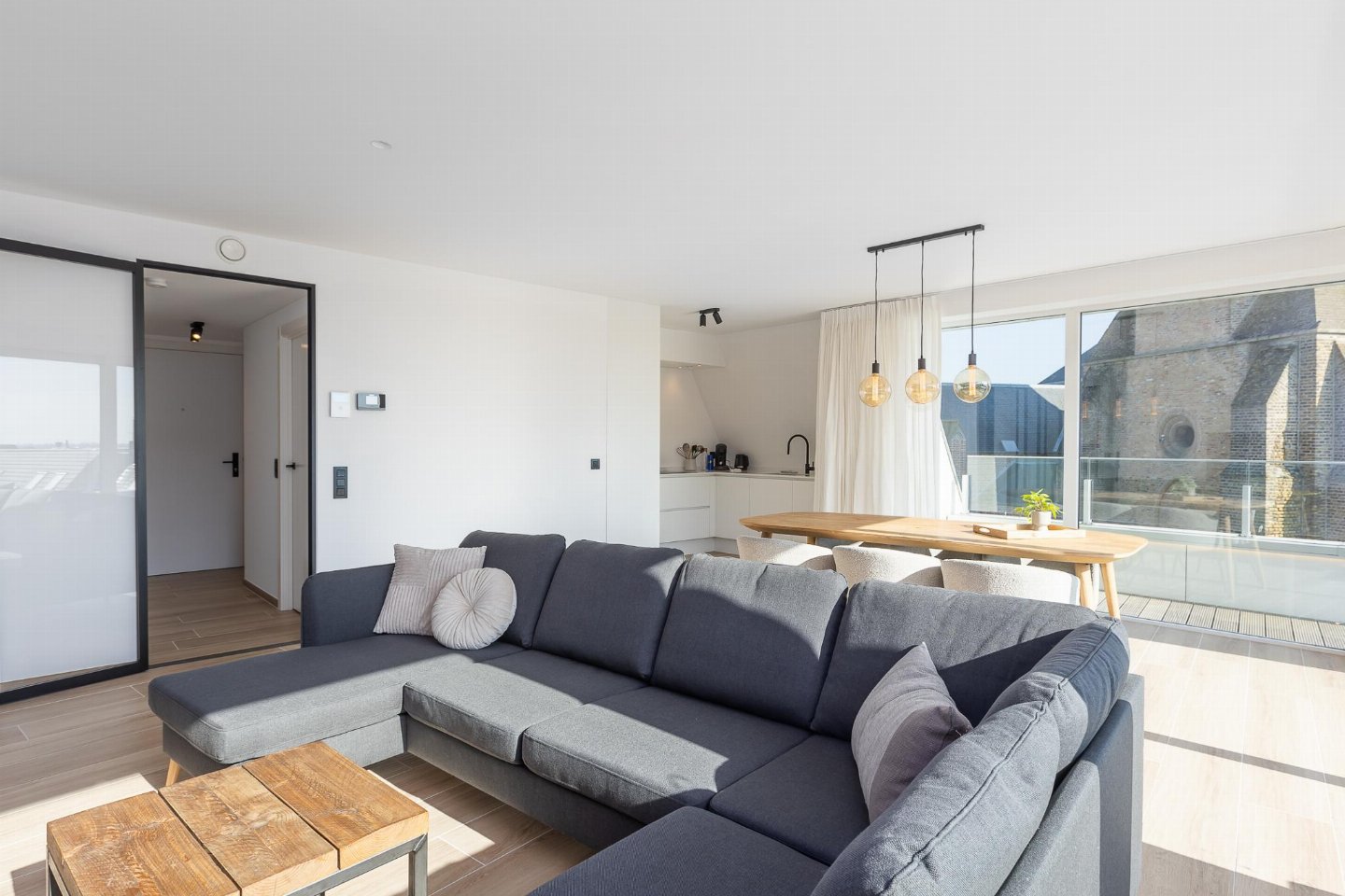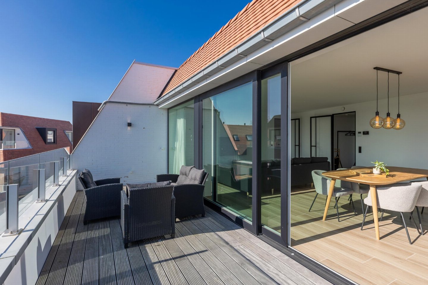 Ruim hoekappartement op de 4de verdieping met 3 slaapkamers: 2 met dubbel bed en 1 met 2 stapelbedden uitschuifbed (max. 9 pers. ). Lichte woonkamer met grote ramen en rondom zonneterras. Badkamer met inloopdouche extra toilet en 1 ensuite badkamer. Centraal bij park, Zeedijk en nieuw Casino.