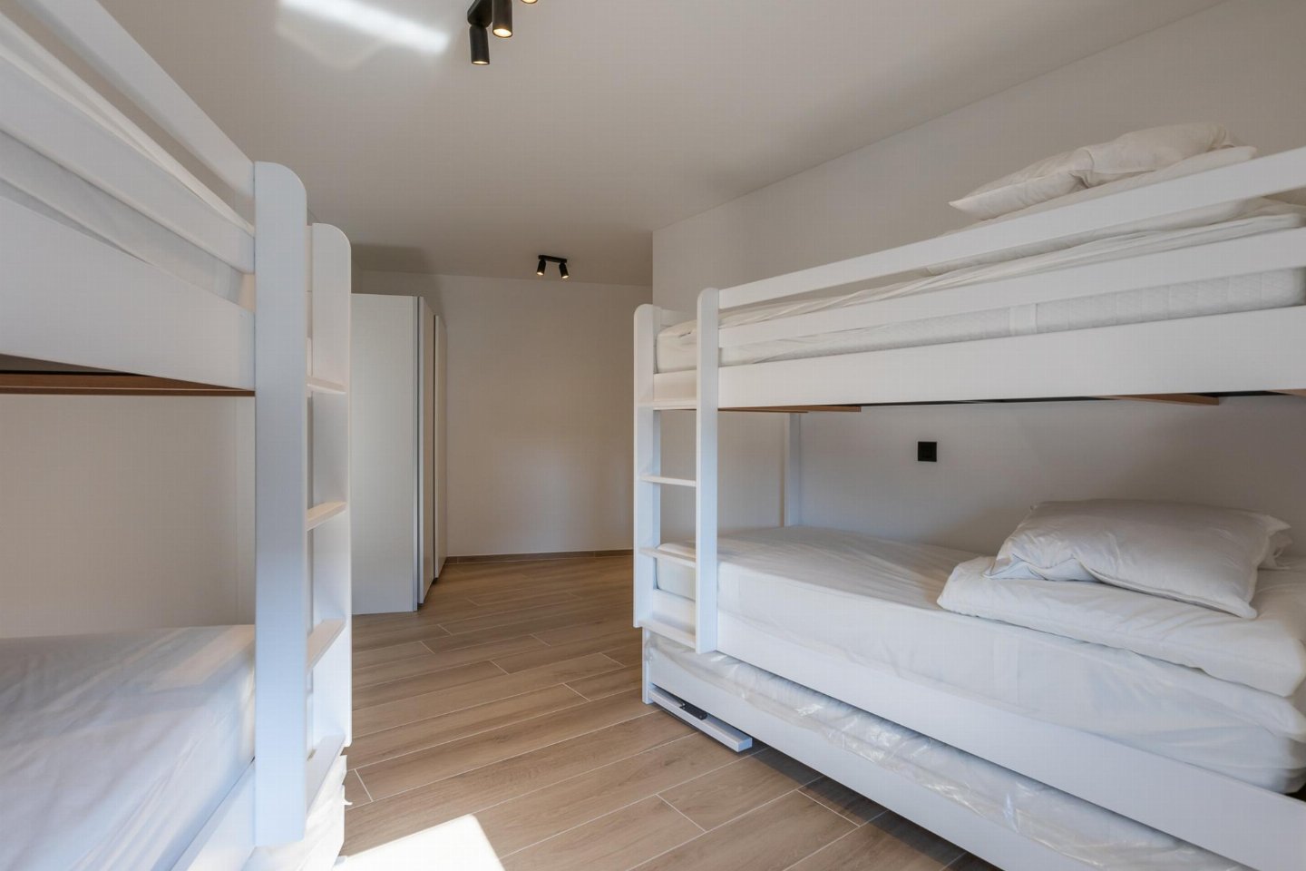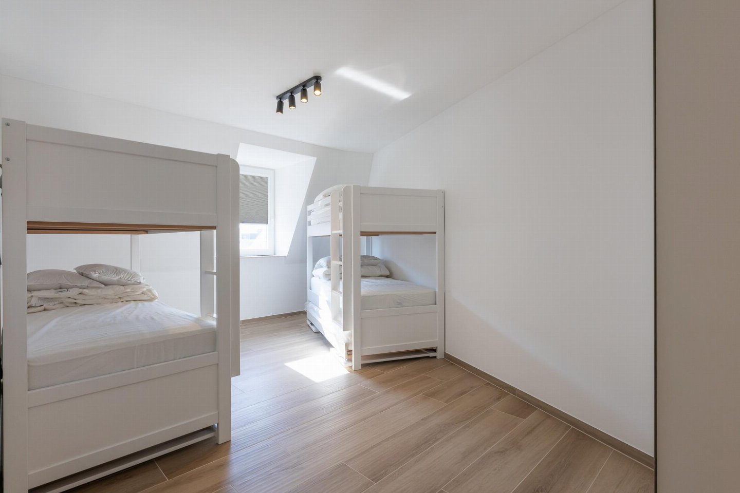 Op de 4e etage: woonkamer met TV, eettafel , keuken met waterkoker, koffiezetapparaat(filtermaling), oven, magnetron, afwasmachine, koelkast, vriezer, koel-/vriescombinatie , slaapkamer met 2-pers. bed(2 persoons dekbed, 180 x 220 cm) , slaapkamer met 2-pers. bed(2 persoons dekbed, 180 x 220 cm) , slaapkamer met 2x 3-pers. stapelbed(dekbed, 90 x 220 cm) , badkamer met douche , badkamer met douche , berging
