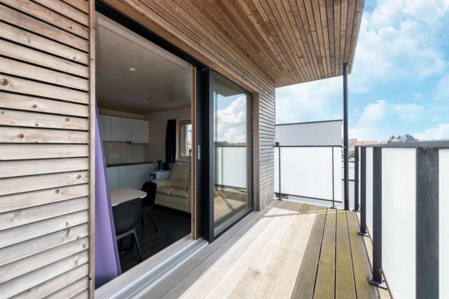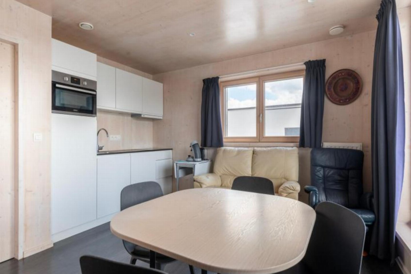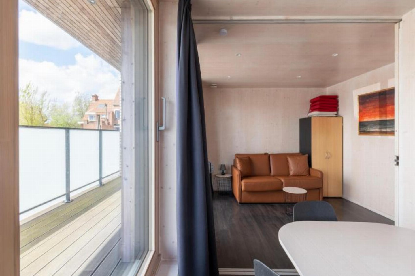 Op de 1e etage: (open keuken(kookplaat, waterkoker, afzuigkap, koffiezetapparaat(senseo pads), magnetron, afwasmachine), woon/eetkamer(TV(flatscreen, digital), eettafel, zithoek), slaapkamer(1-pers. onderschuifbed(dekbed, 90 x 200 cm), stapelbed(dekbed, 90 x 200 cm)), slaapcabine(2-pers. slaapbank(2 persoons dekbed, 160 x 200 cm)), badkamer(douche(inloopdouche), wastafel, wc, haardroger), balkon of terras, 1x kinderbed (excl. beddengoed), 1x kinderstoel)