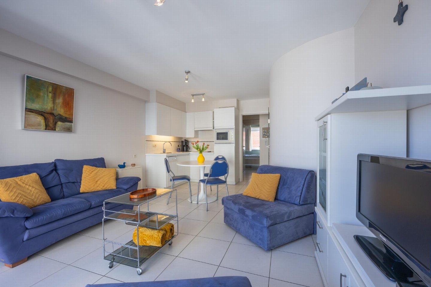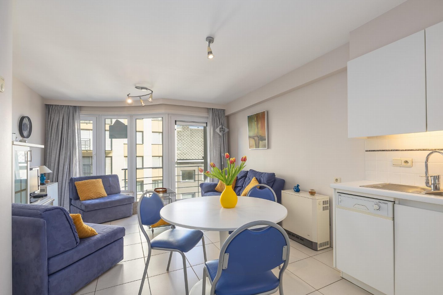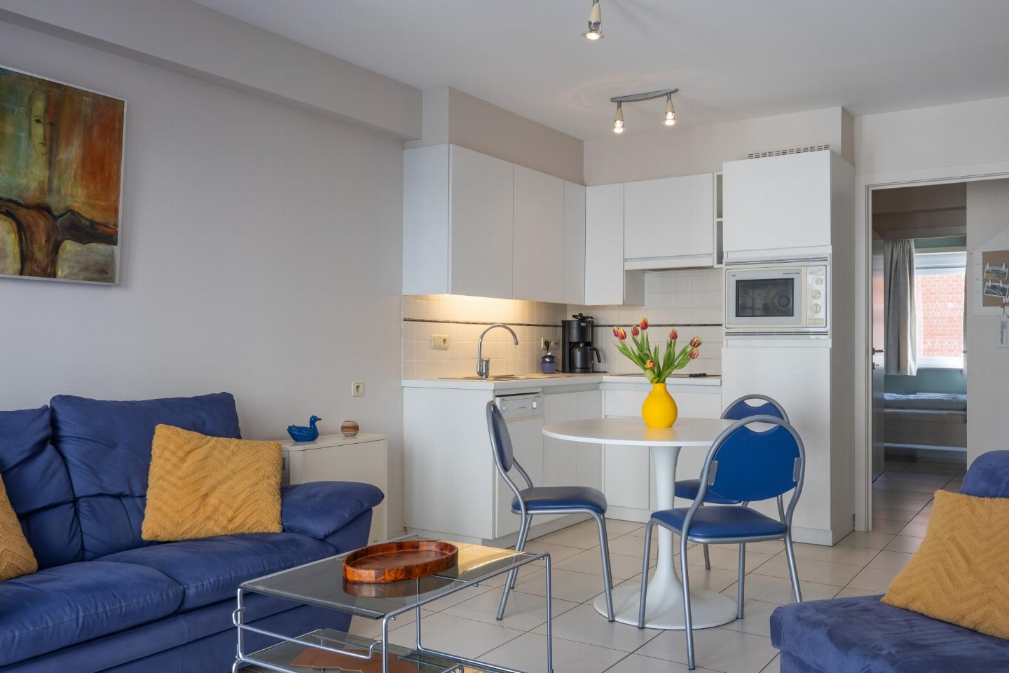 Appartement op de 4e verdieping met 1 slaapkamer met dubbel bed, ideaal voor koppels of kleine gezinnen. Woonkamer met zetelbed voor 2 personen en toegang tot terras met zijzeezicht. Rustig gelegen in zijstraat van de Zeedijk, op 5 min wandelen van het Casinoplein.