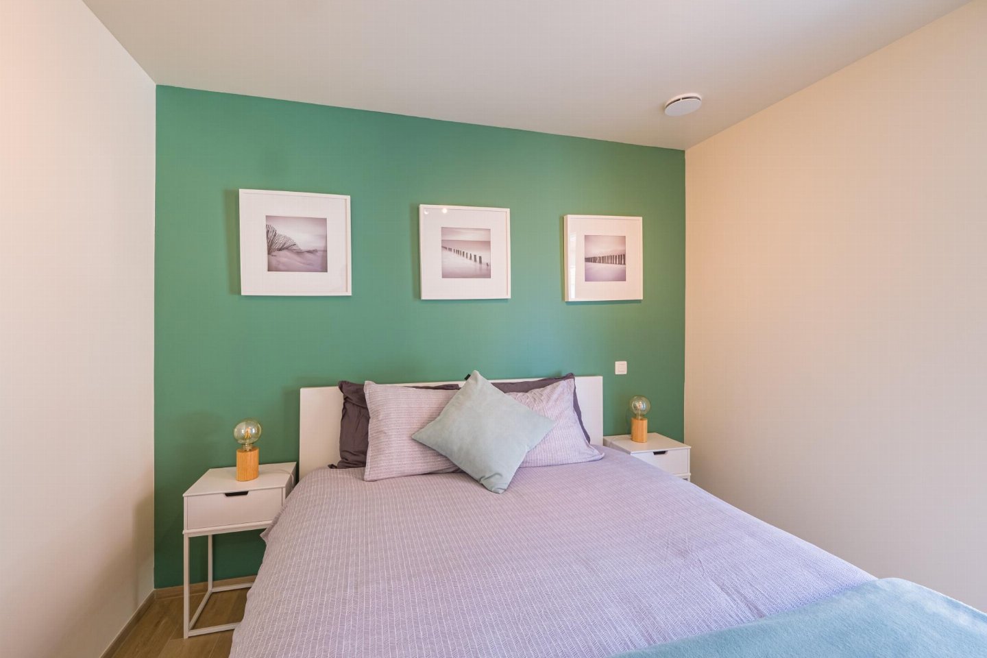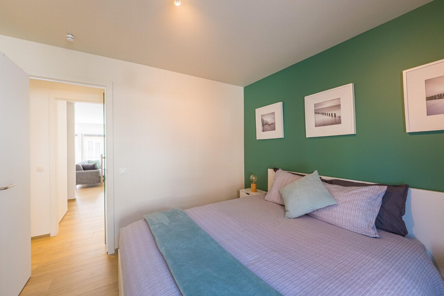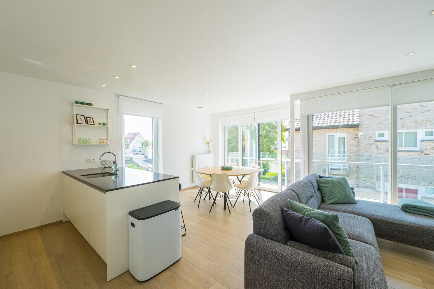 België, West-Vlaanderen, MiddelkerkeGezellig en licht appartement op de 1e verdieping met 2 slaapkamers: één met dubbel bed en één met twee enkele bedden (omvormbaar tot dubbel). Lichtrijke woonkamer met kamerhoge ramen en gezellig terras. Beide slaapkamers geven uit op een ruim zonneterras. Rustige groene ligging dicht bij strand en duinen.