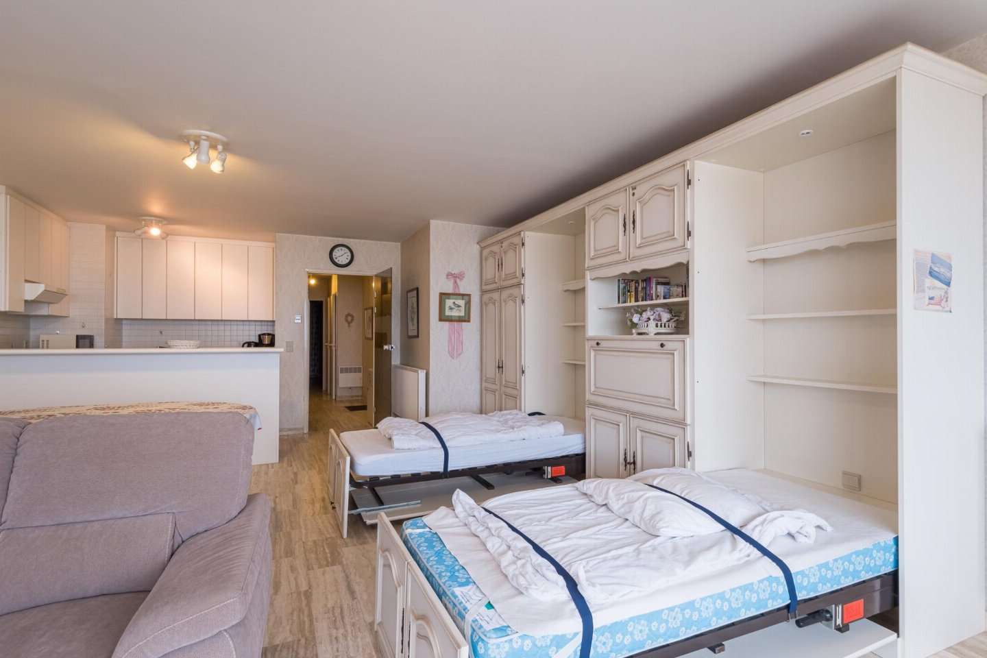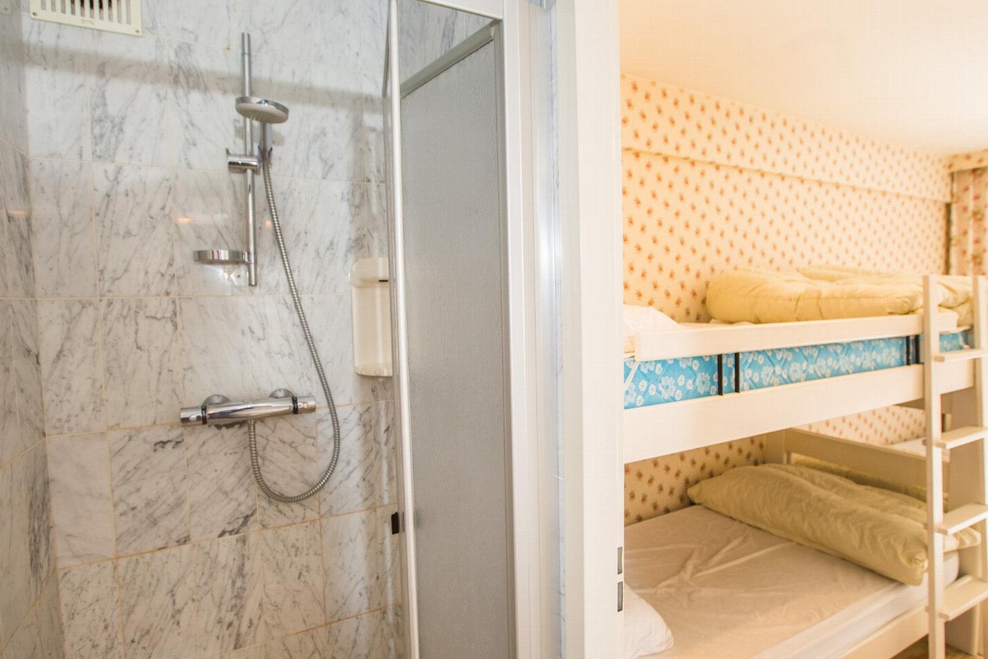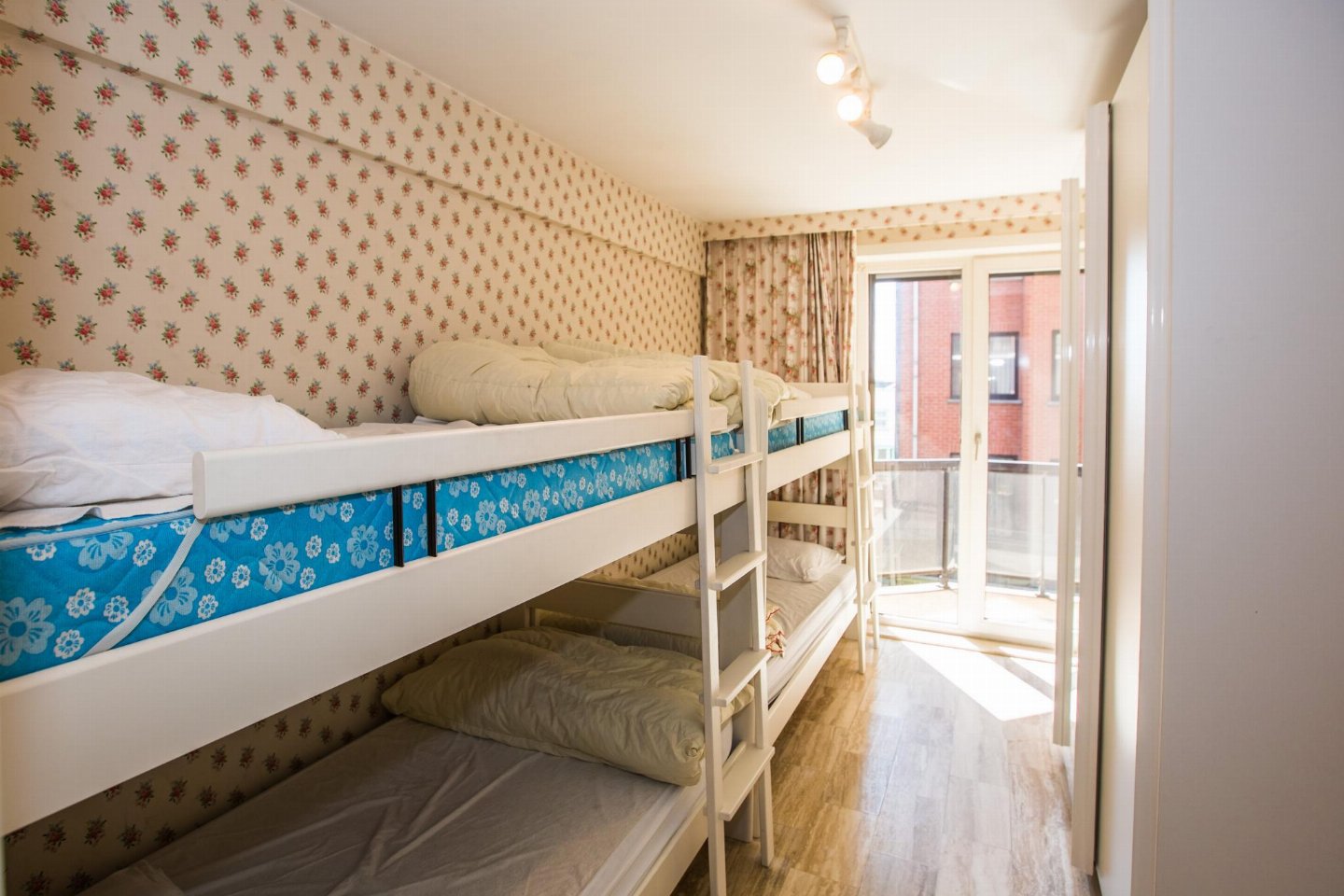Gezellig appartement op de 2e verdieping met 2 slaapkamers: één met twee stapelbedden en één met kastbed voor 2 personen. In de ruime woonkamer is ook een kastbed voor 2 personen. Woonkamer met toegang tot ruim terras over de volledige breedte met prachtig zeezicht.