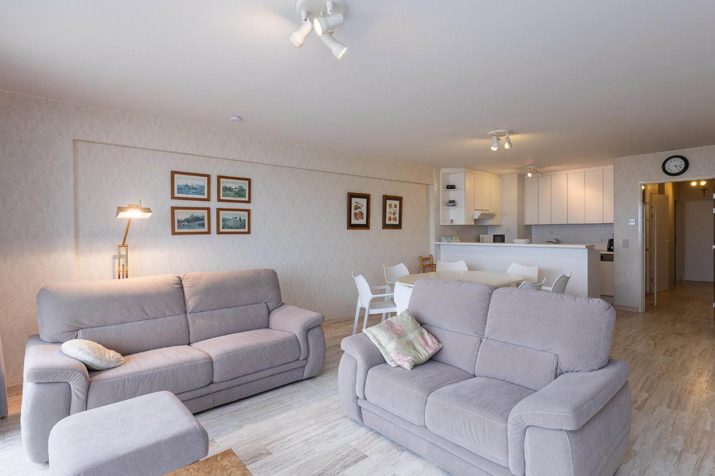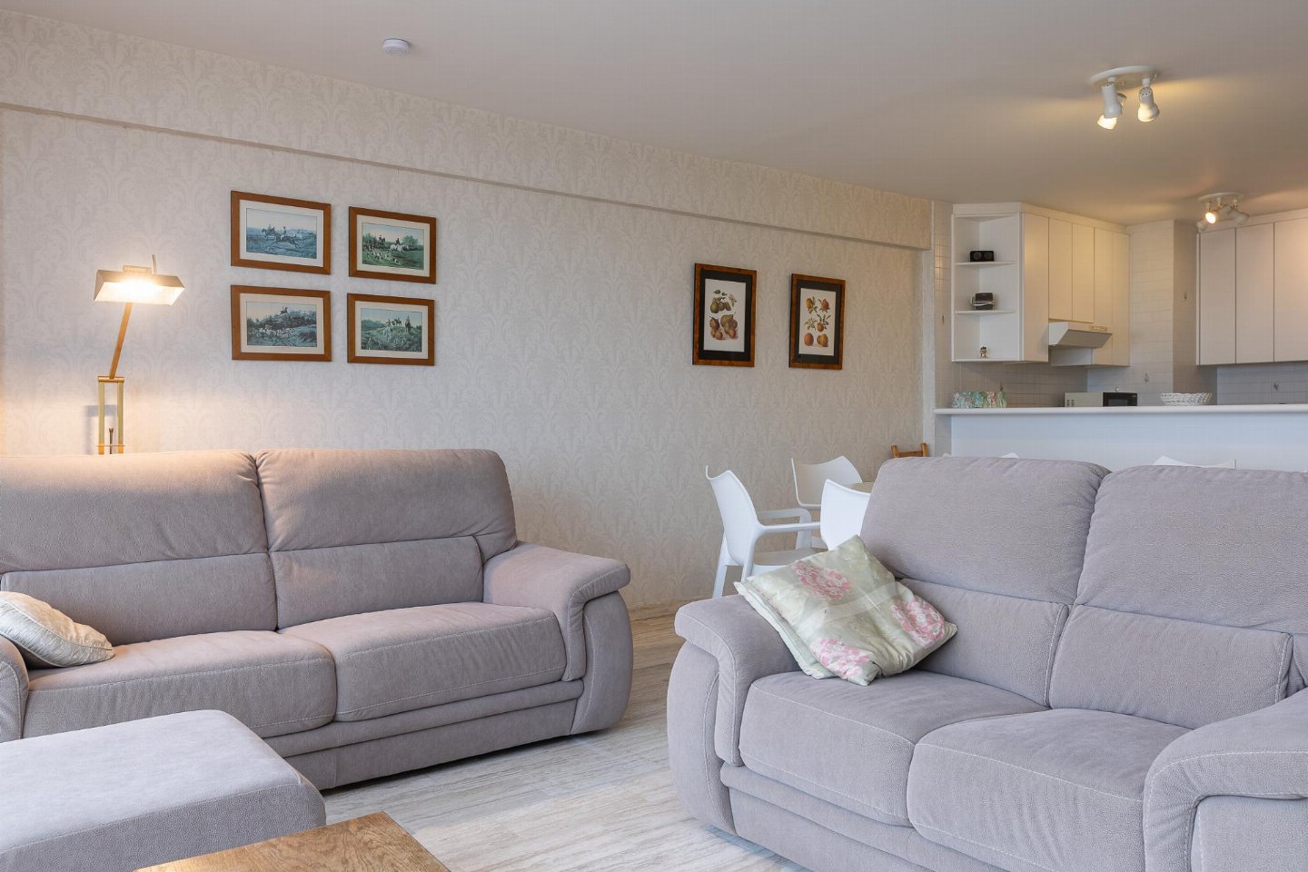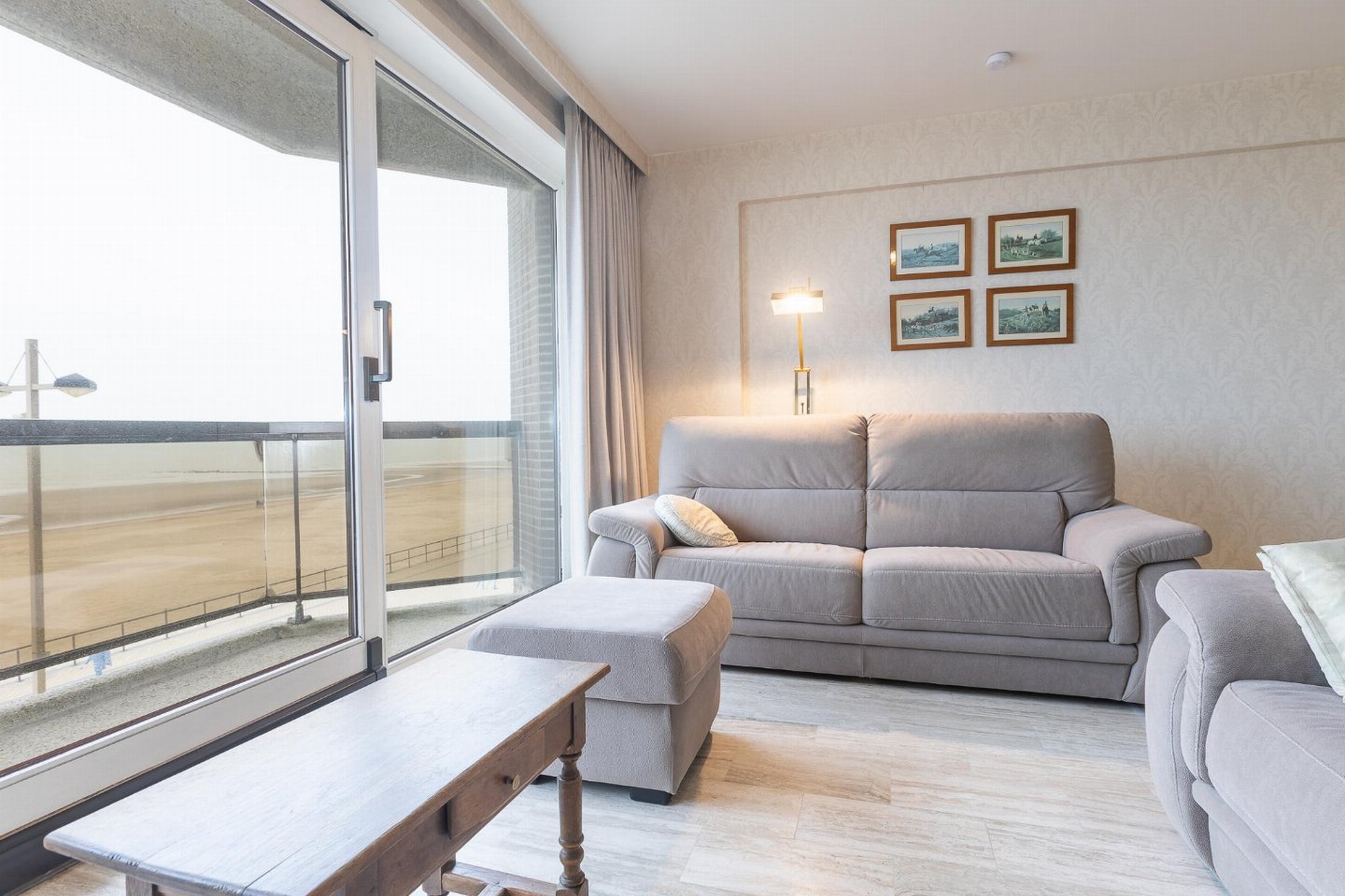 Gezellig appartement op de 2e verdieping met 2 slaapkamers: één met twee stapelbedden en één met kastbed voor 2 personen. In de ruime woonkamer is ook een kastbed voor 2 personen. Woonkamer met toegang tot ruim terras over de volledige breedte met prachtig zeezicht.
