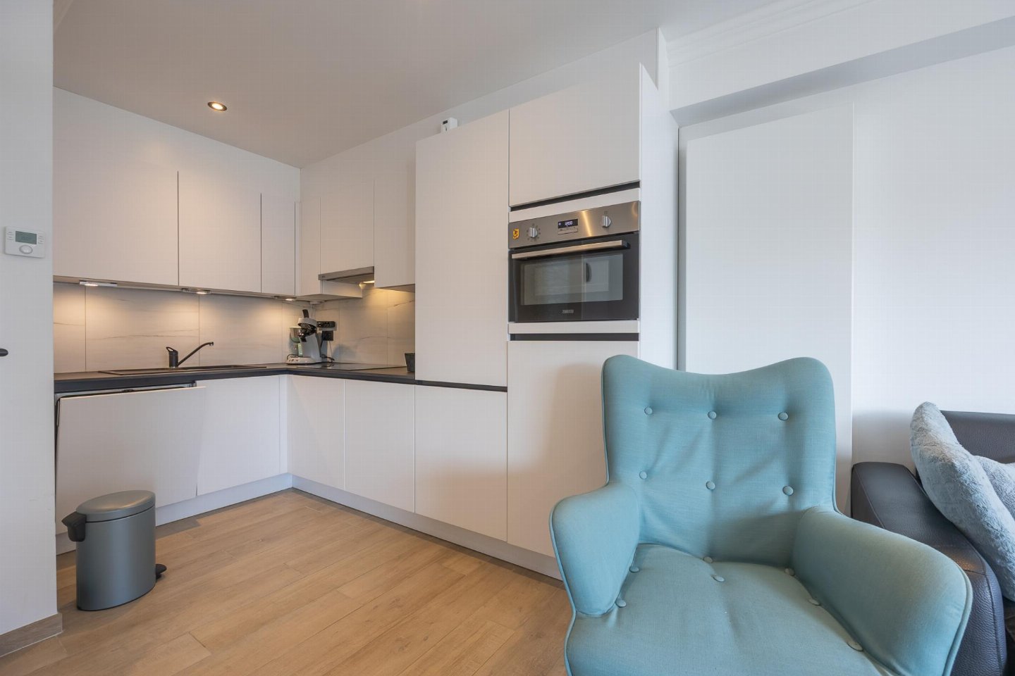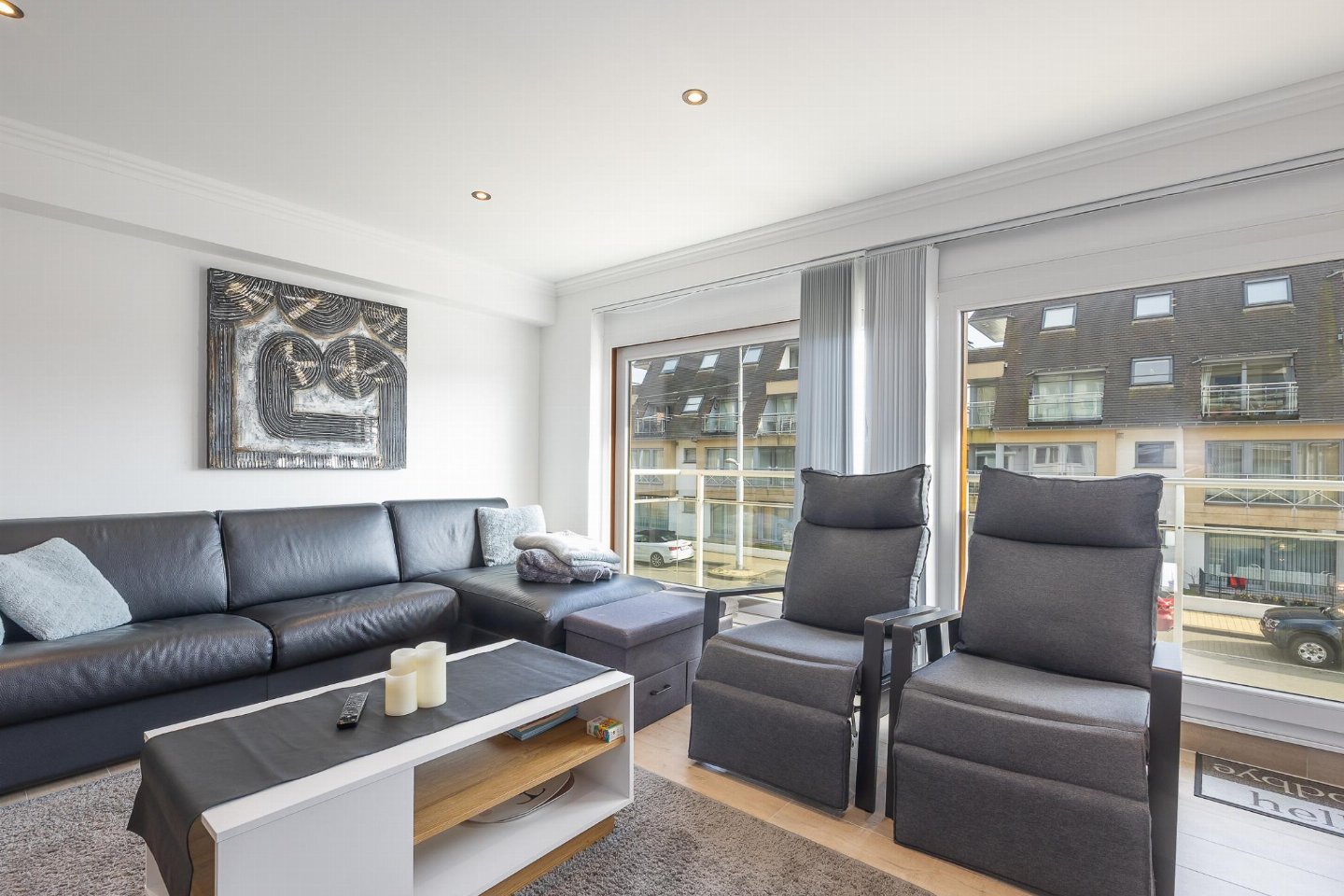 Prachtig gerenoveerd appartement op de 1e verdieping in residentie Royal, vlak bij strand en Zeedijk. Lichtrijke woonkamer met kamerhoge ramen en toegang tot zonnig terras. Open, volledig uitgeruste keuken. 2 slaapkamers (1 dubbel bed, 1 stapelbed) zetelbed voor 2 personen.