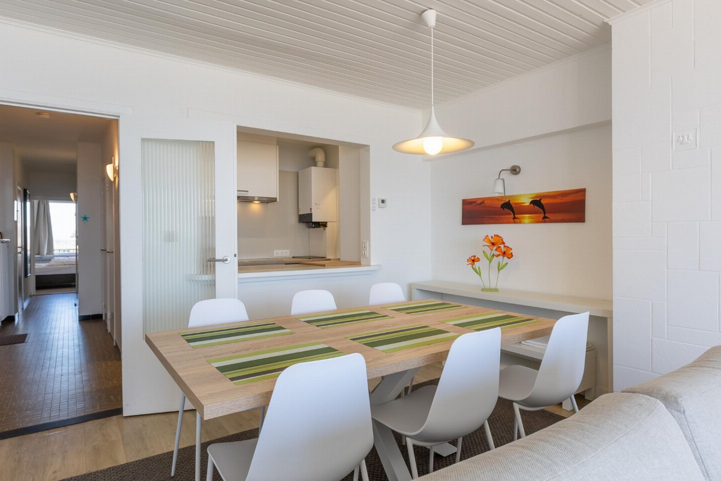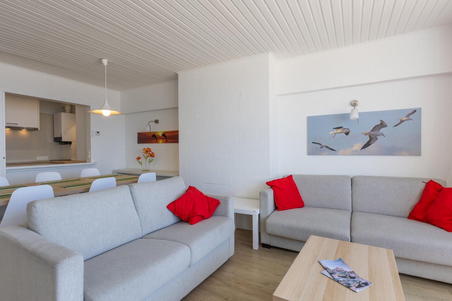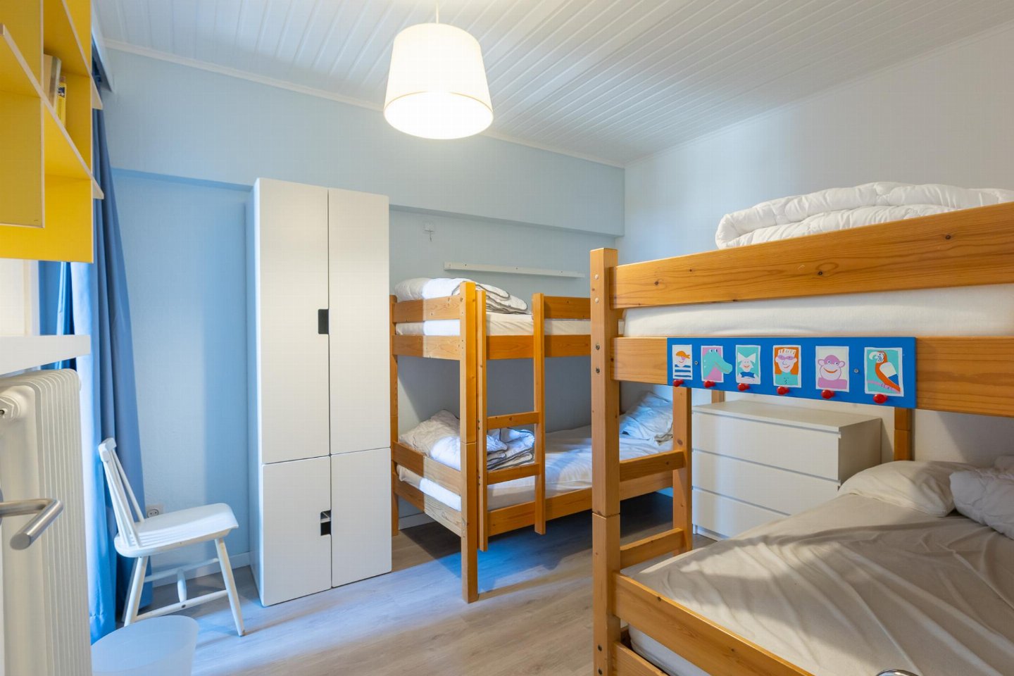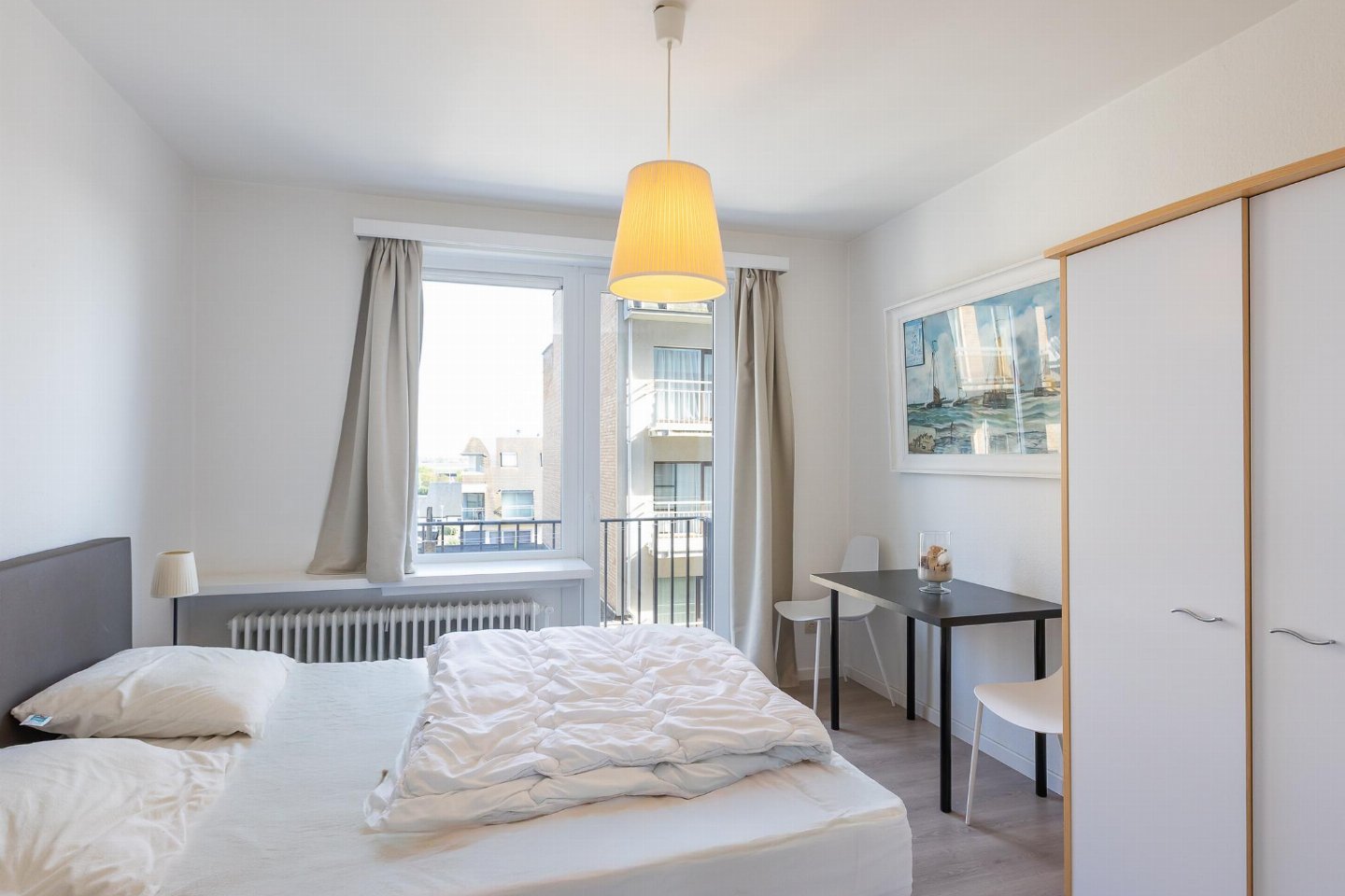 Appartement op de 3e verdieping met 2 slaapkamers: één met dubbel bed en één met 2 stapelbedden. Smaakvol ingerichte woonkamer met zetelbed voor 2 personen en prachtig zeezicht. Vernieuwde badkamer met inloopdouche en lavabo, apart toilet.