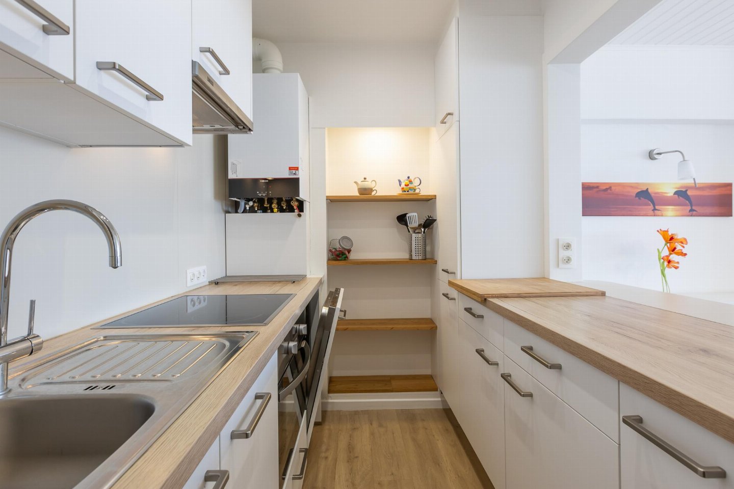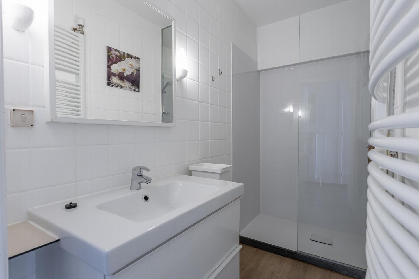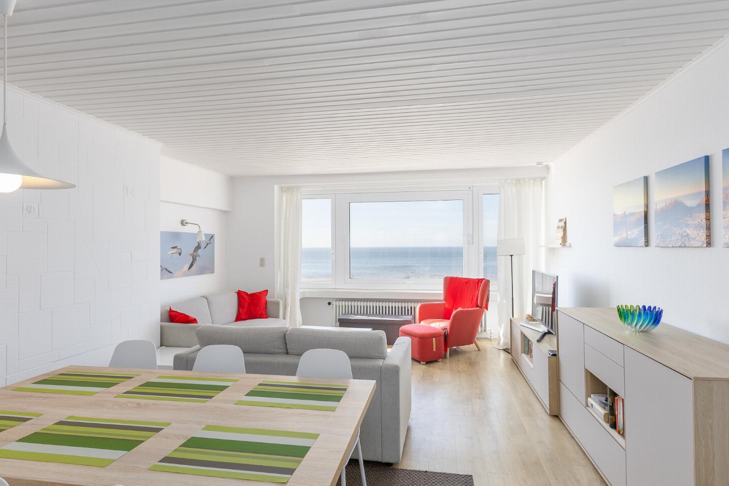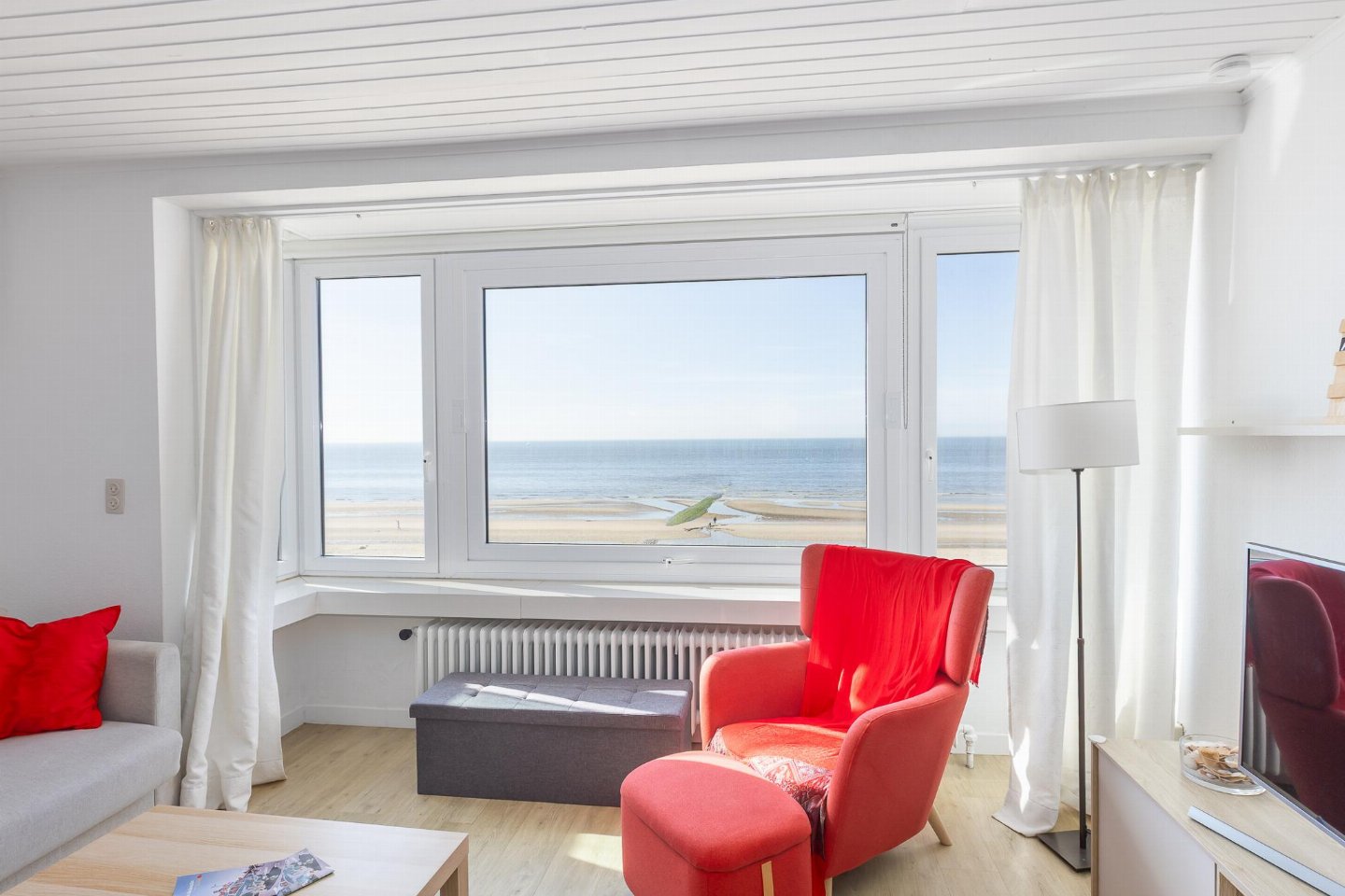 Appartement op de 3e verdieping met 2 slaapkamers: één met dubbel bed en één met 2 stapelbedden. Smaakvol ingerichte woonkamer met zetelbed voor 2 personen en prachtig zeezicht. Vernieuwde badkamer met inloopdouche en lavabo, apart toilet.