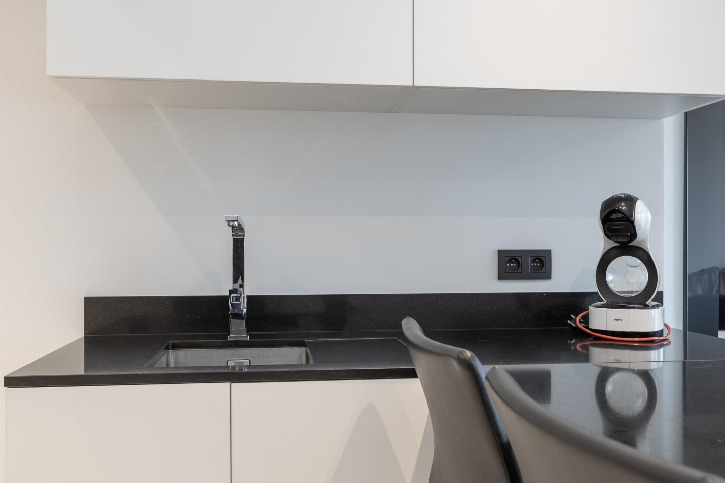 Luxe appartement op de 8ste verdieping met prachtig zeezicht. 1 slaapkamer met tweepersoonsbed en woonkamer met zetelbed voor 2. Lichtrijke leefruimte met open, volledig uitgeruste keuken. Moderne badkamer met inloopdouche en apart toilet. Slaapkamer met toegang tot zonovergoten terras met zicht op het hinterland. Stijlvol en comfortabel voor een vakantie aan zee.