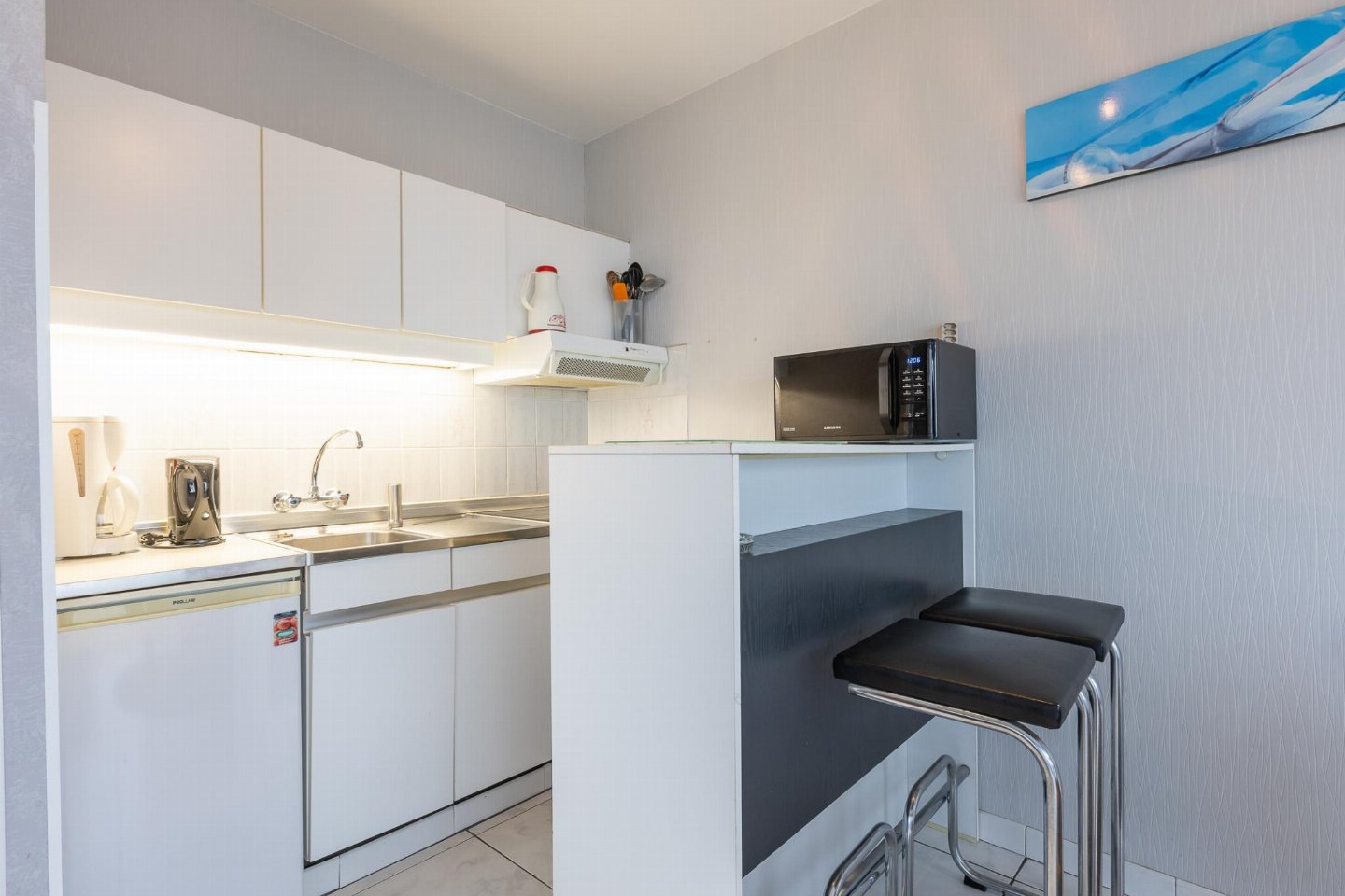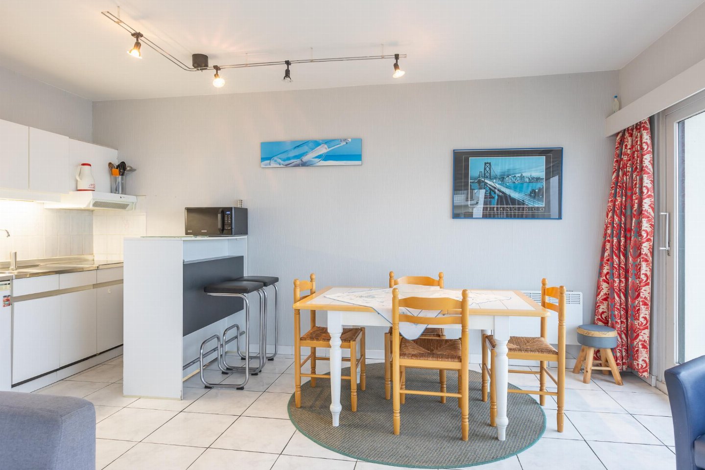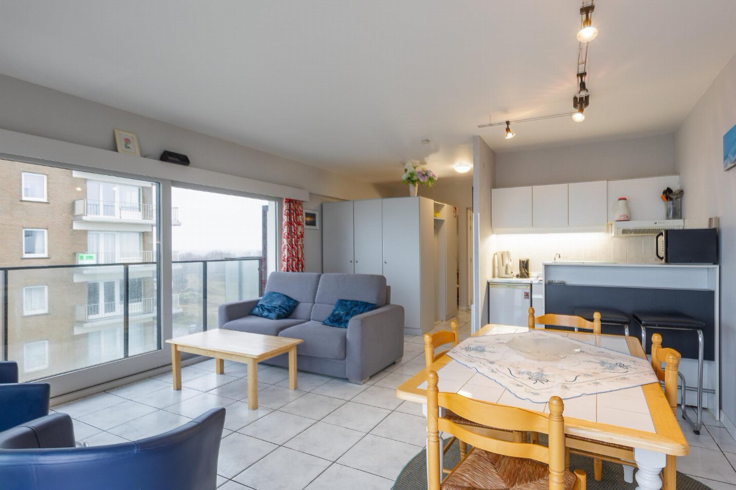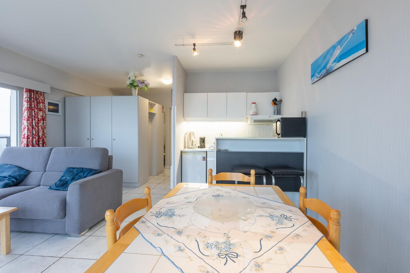België, West-Vlaanderen, Middelkerkeoekstudio op de 6de verdieping met prachtig zeezicht, ideaal voor een ontspannende vakantie aan de kust. Slaaphoek met stapelbed en zetelbed voor 2 in een lichtrijke woonkamer met grote ramen. Halfopen, volledig uitgeruste keuken en badkamer met ligbad. Gezellige, comfortabele studio voor een zorgeloos verblijf.