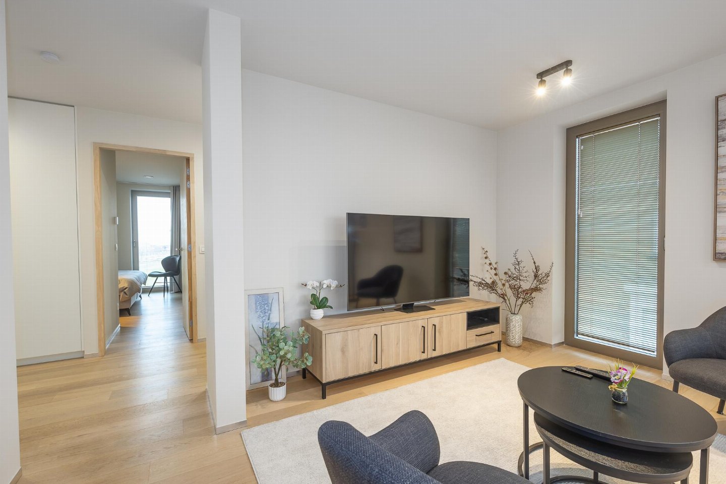 Stijlvol nieuwbouwappartement op de 1ste verdieping, ideaal voor een vakantie aan zee. Twee slaapkamers met dubbel bed en zetelbed in de leefruimte. Lichtrijke woonkamer met kamerhoge ramen en toegang tot zonnig terras van 14 m². Topligging: 1 min van strand en Zeedijk, nabij winkels, OV en Normandpark.