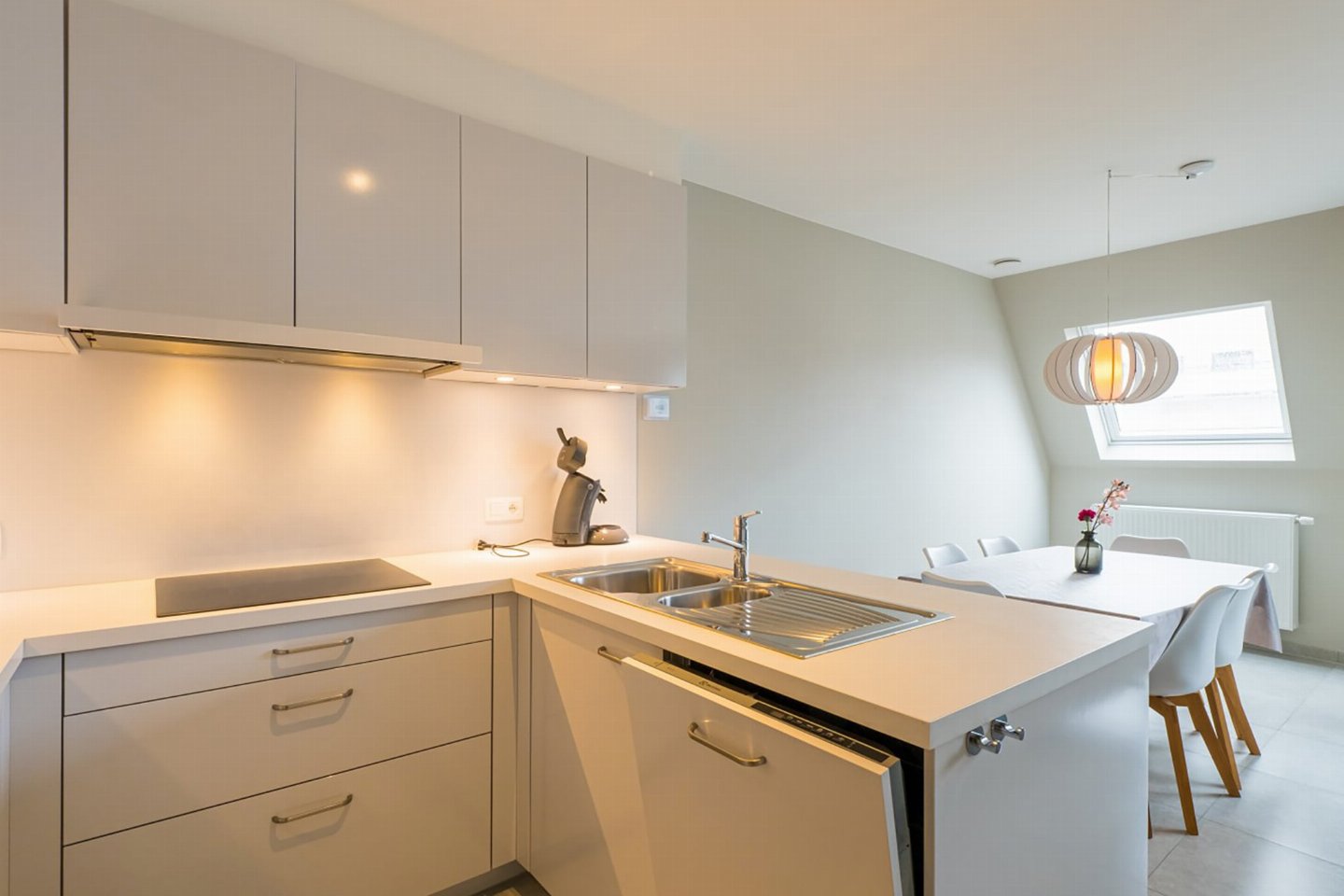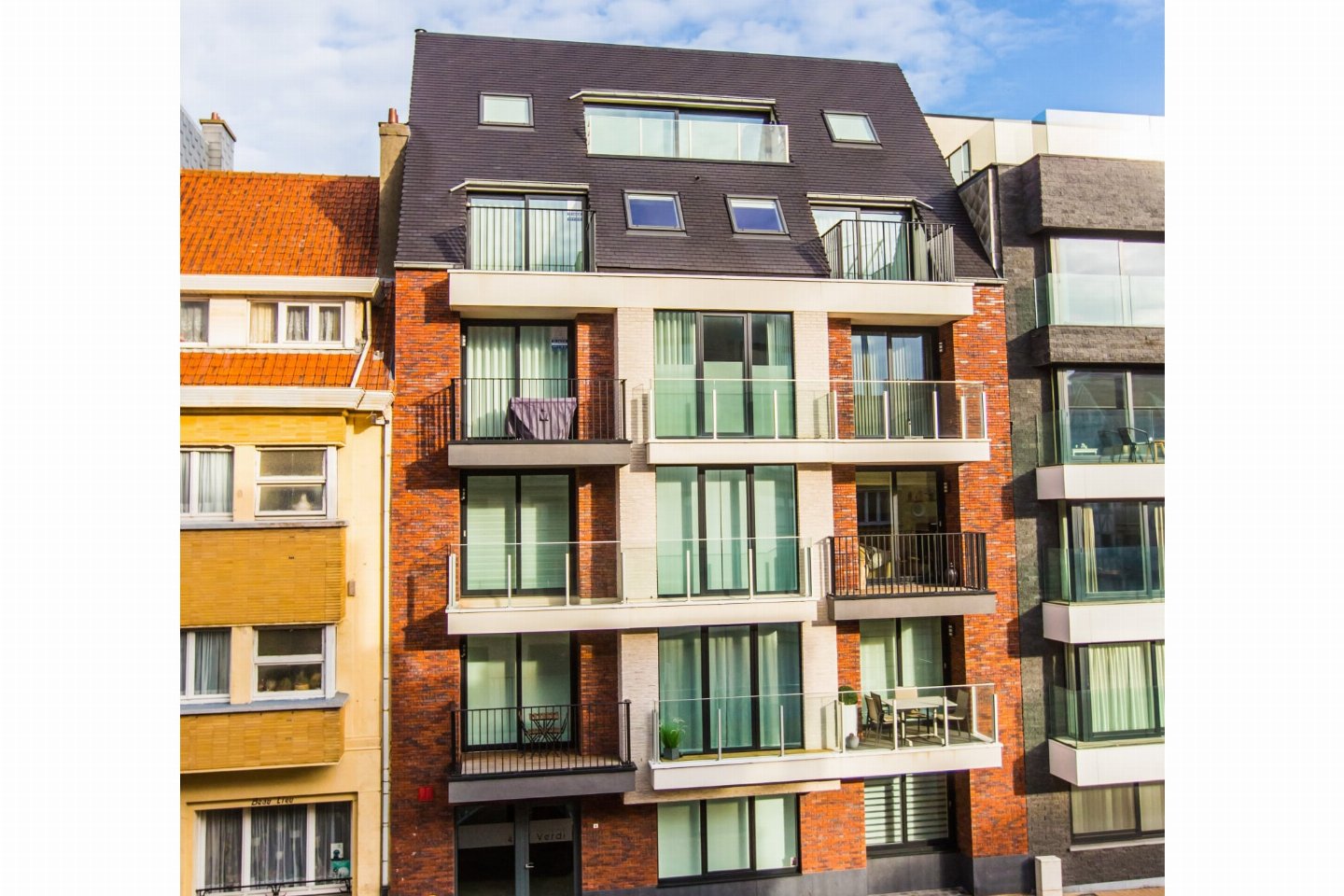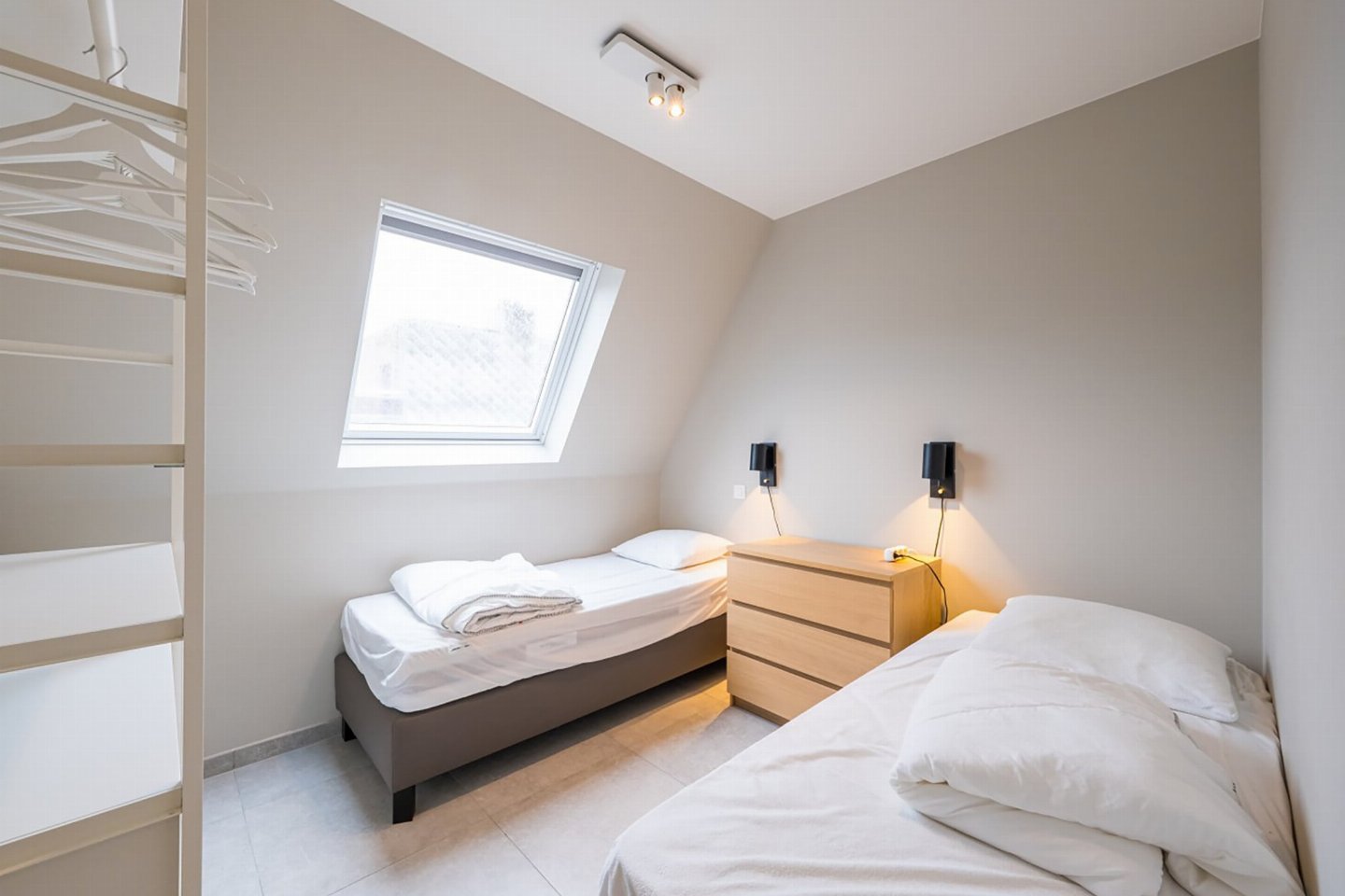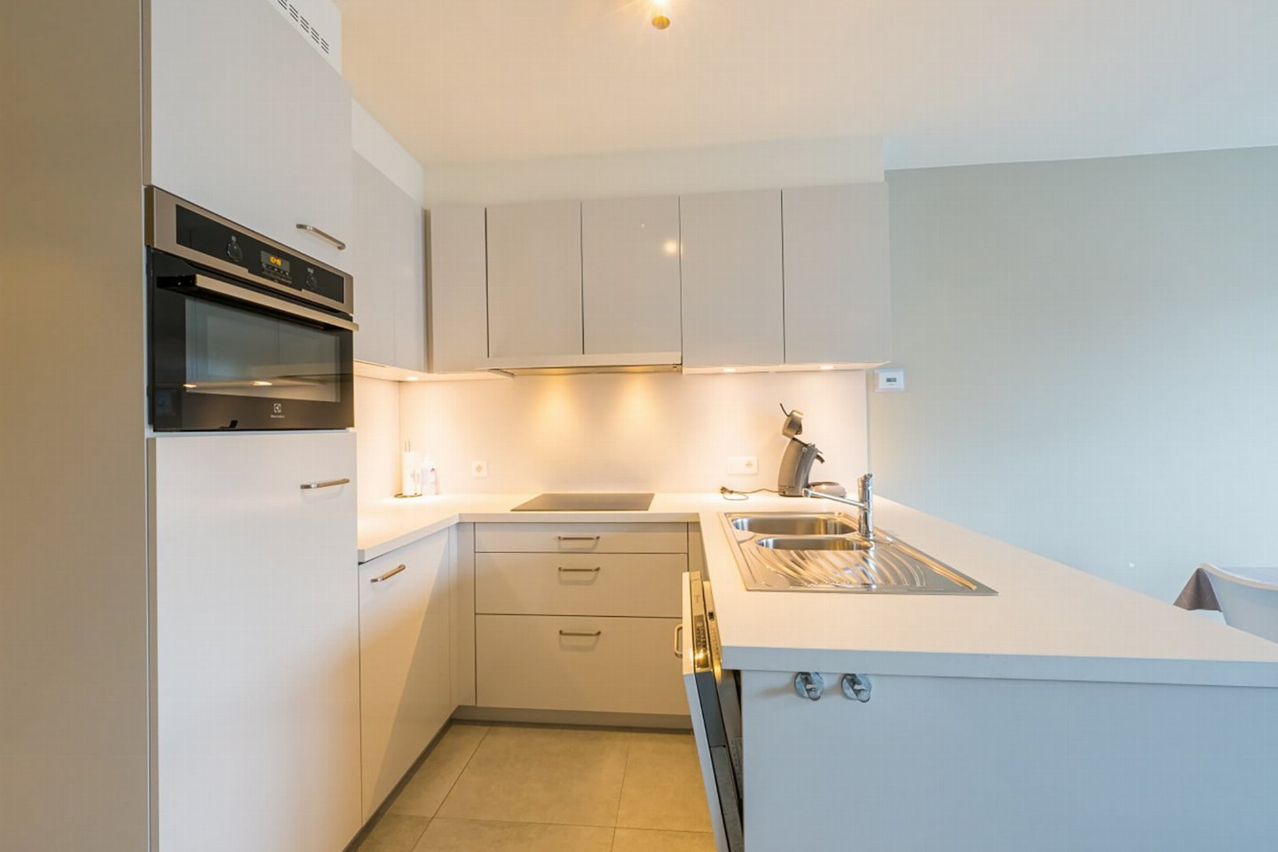 Appartement op de 4e verdieping met 2 slaapkamers: één met dubbel bed en één met 2 enkele bedden. Lichte woonkamer met volledig ingerichte open keuken en toegang tot zongericht terras met zijzeezicht. Badkamer met inloopdouche en apart toilet. Moderne residentie met hedendaagse architectuur.