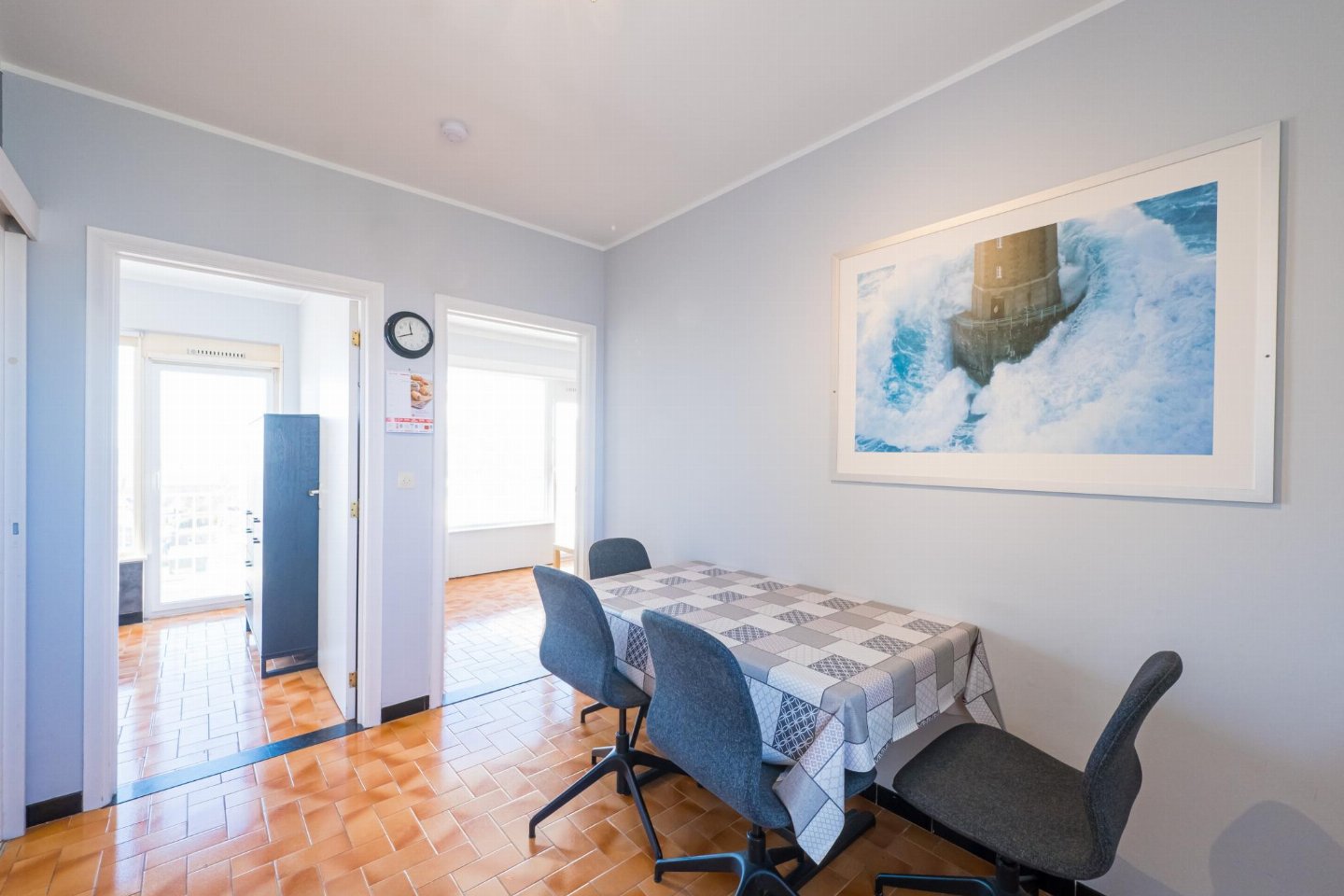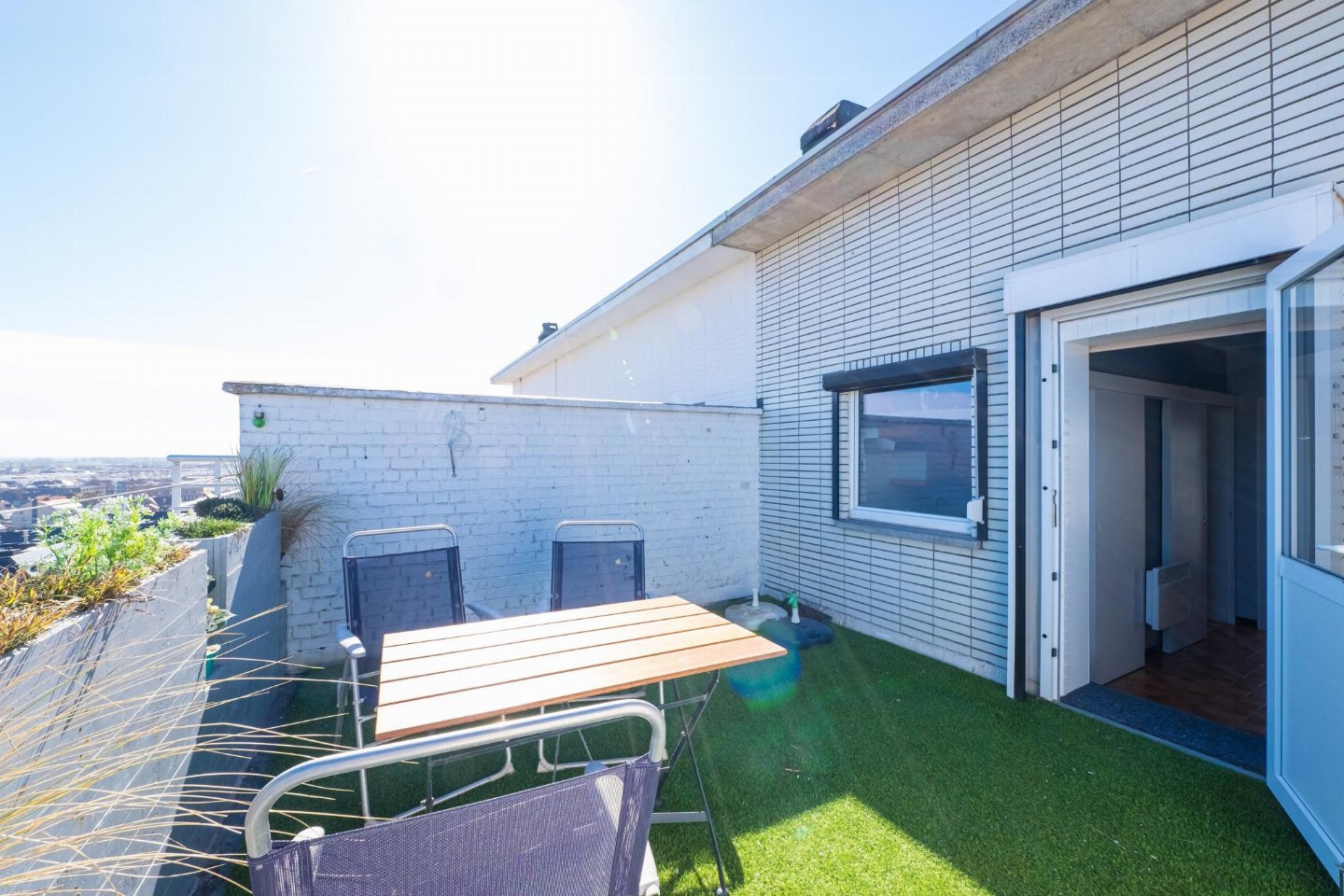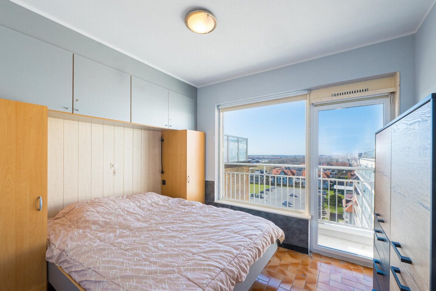 Gezellig dakappartement op de 8e verdieping met 1 slaapkamer (dubbel bed), ideaal voor koppels of kleine gezinnen. Knusse living met slaapzetel voor 2 personen en terras met zicht op het hinterland. Volledig uitgeruste keuken en badkamer met douche. Via de keuken bereikt u het ruime dakterras met prachtig zeezicht, perfect om te ontspannen. Gunstige ligging nabij Zeedijk, openbaar vervoer en winkels.