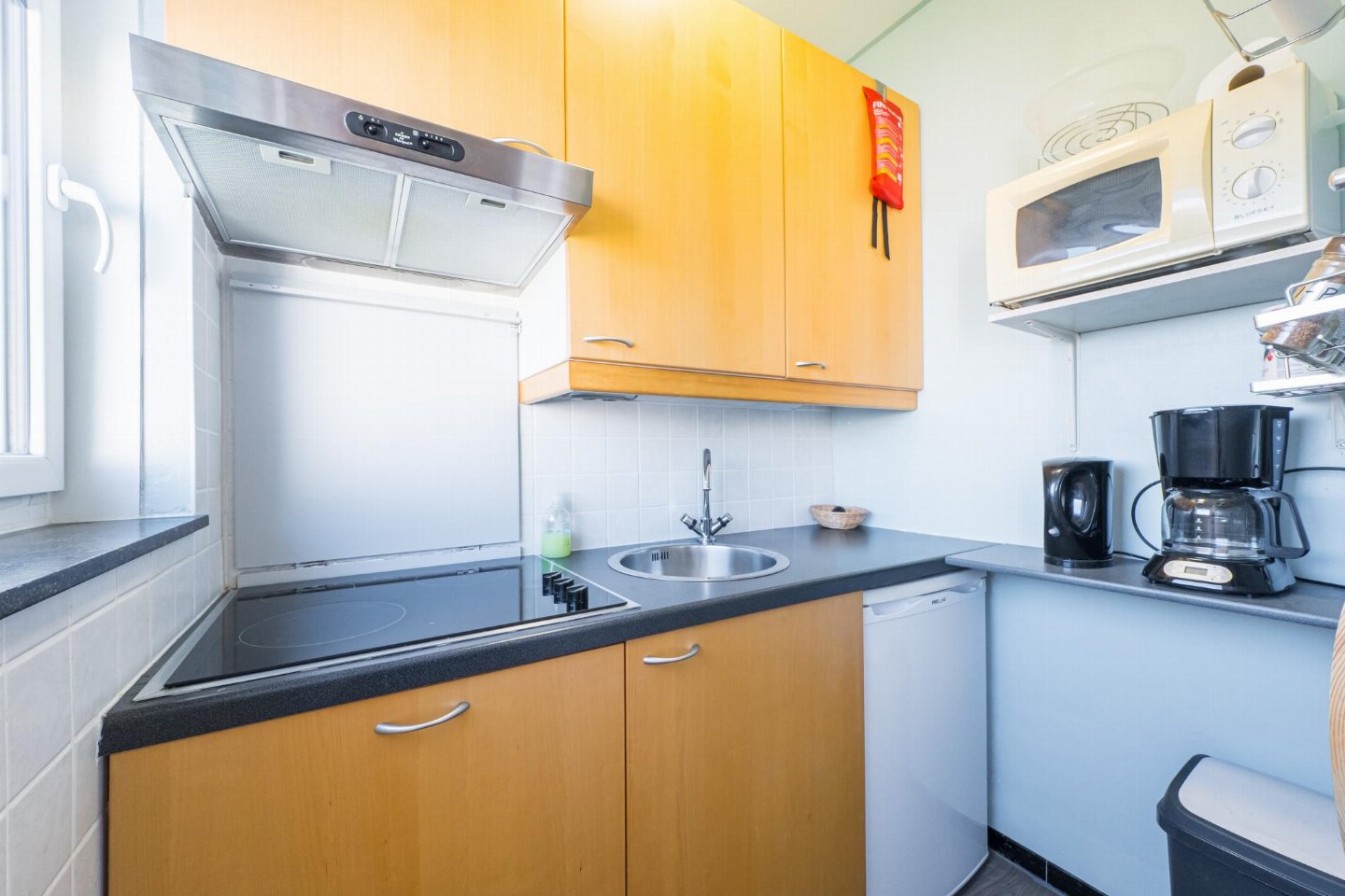 Op de 8e etage: woonkamer met 2-pers. slaapbank(2 persoons dekbed, 140 x 200 cm), TV, eettafel , keuken met waterkoker, broodrooster, koffiezetapparaat(filtermaling), magnetron, koelkast, vriezer, koel-/vriescombinatie, citruspers , slaapkamer met 2-pers. bed(2 persoons dekbed, 160 x 200 cm) , badkamer met douche , toilet, berging