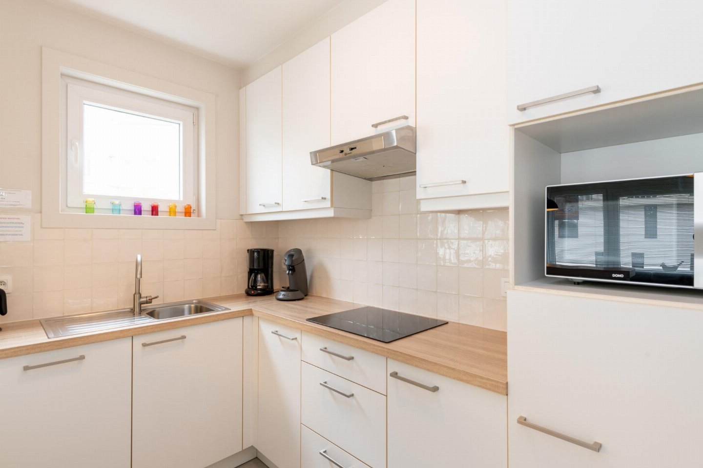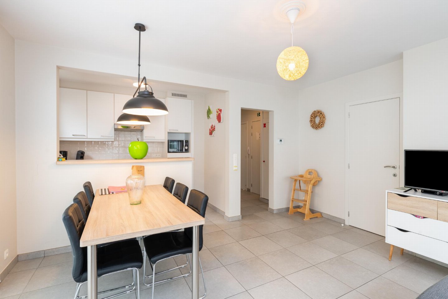 Op de 2e etage: (open keuken(kookplaat, waterkoker, afzuigkap, koffiezetapparaat(filtermaling, senseo pads), oven, magnetron, afwasmachine), woon/eetkamer(TV(flatscreen, digital, smart TV), eettafel, zithoek, 1x kinderstoel), 2x slaapkamer(2-pers. bed), slaapkamer(stapelbed), badkamer(douche(inloopdouche), wastafel, haardroger), toilet(wc), 1x kinderbed (excl. beddengoed))
