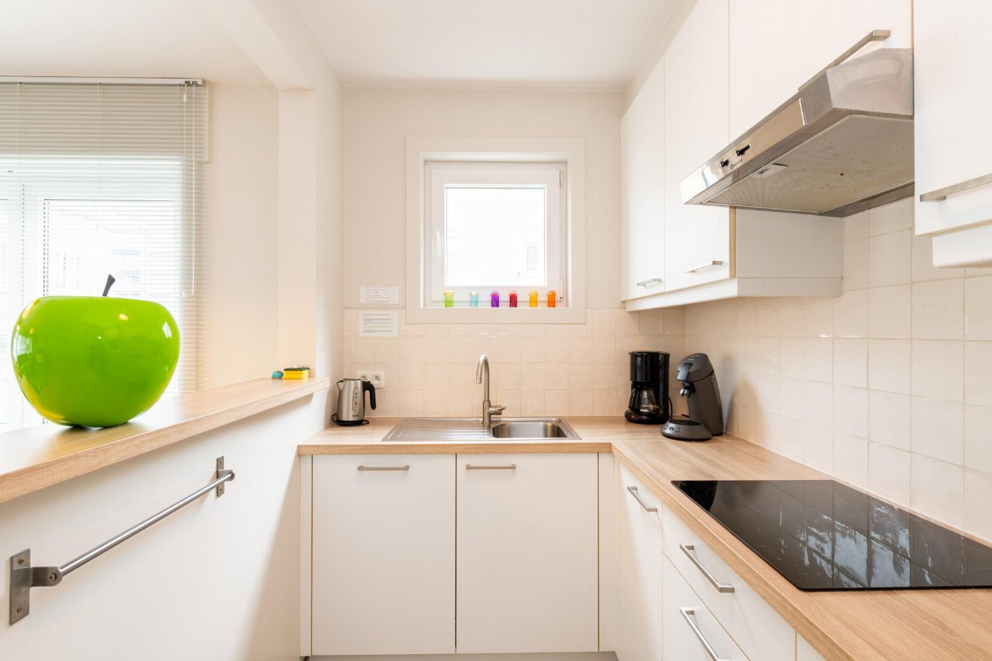 Op de 1e etage: (open keuken(kookplaat, waterkoker, afzuigkap, koffiezetapparaat(filtermaling, senseo pads), oven, magnetron, afwasmachine), woon/eetkamer(TV(flatscreen, digital, smart TV), eettafel(6 personen), zithoek, 1x kinderstoel), 2x slaapkamer(2-pers. bed), slaapkamer(stapelbed), badkamer(douche(inloopdouche), wastafel, haardroger), toilet(wc), 1x kinderbed (excl. beddengoed))