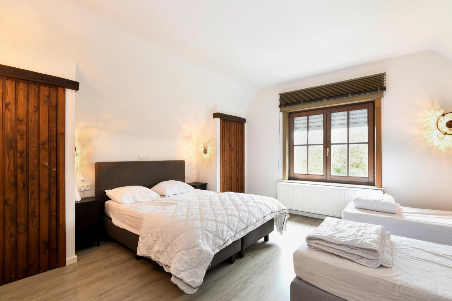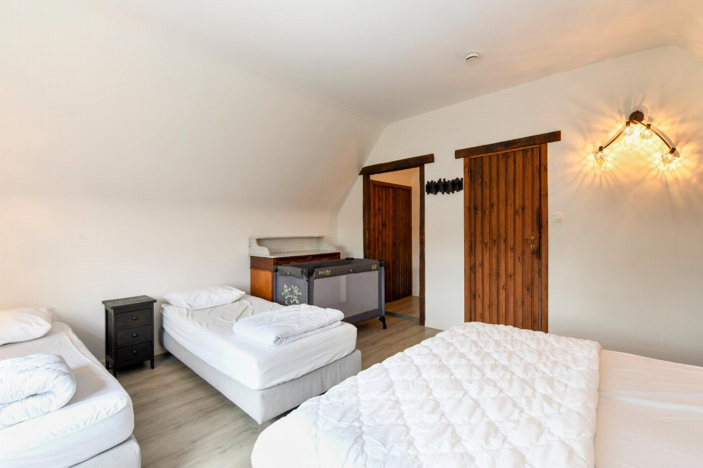 Op de 1e etage: (slaapkamer(2x 1-pers. bed(dekbed), 2-pers. bed(2 persoons dekbed), 1x kinderbed (excl. beddengoed)), doorloop slaapkamer(2x 1-pers. bed, 2-pers. bed), badkamer(douche(inloopdouche), wastafel, wc))