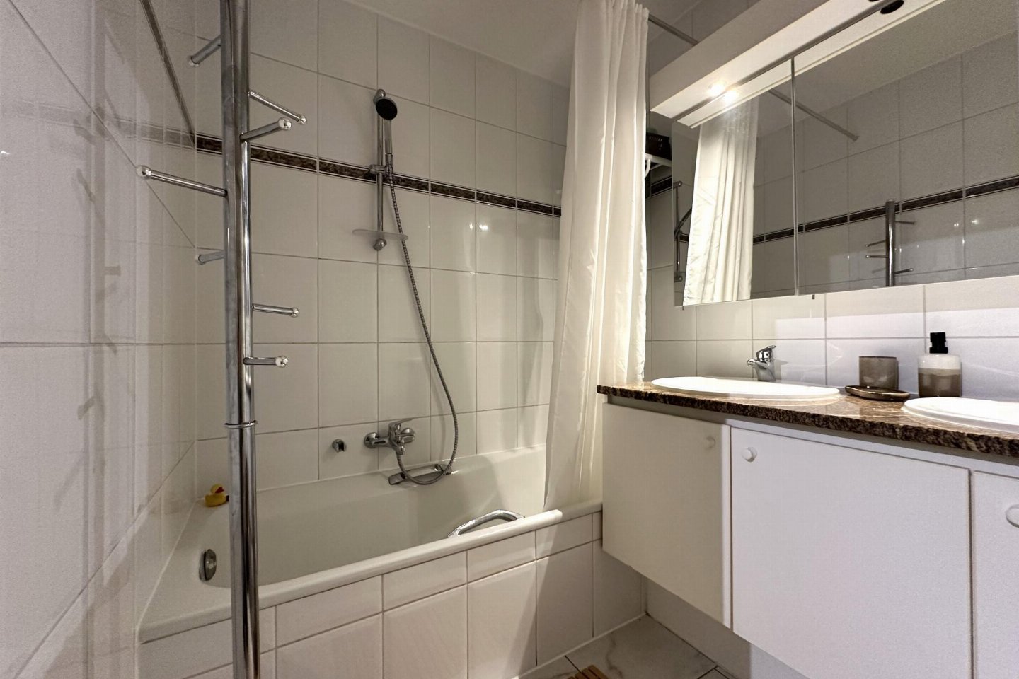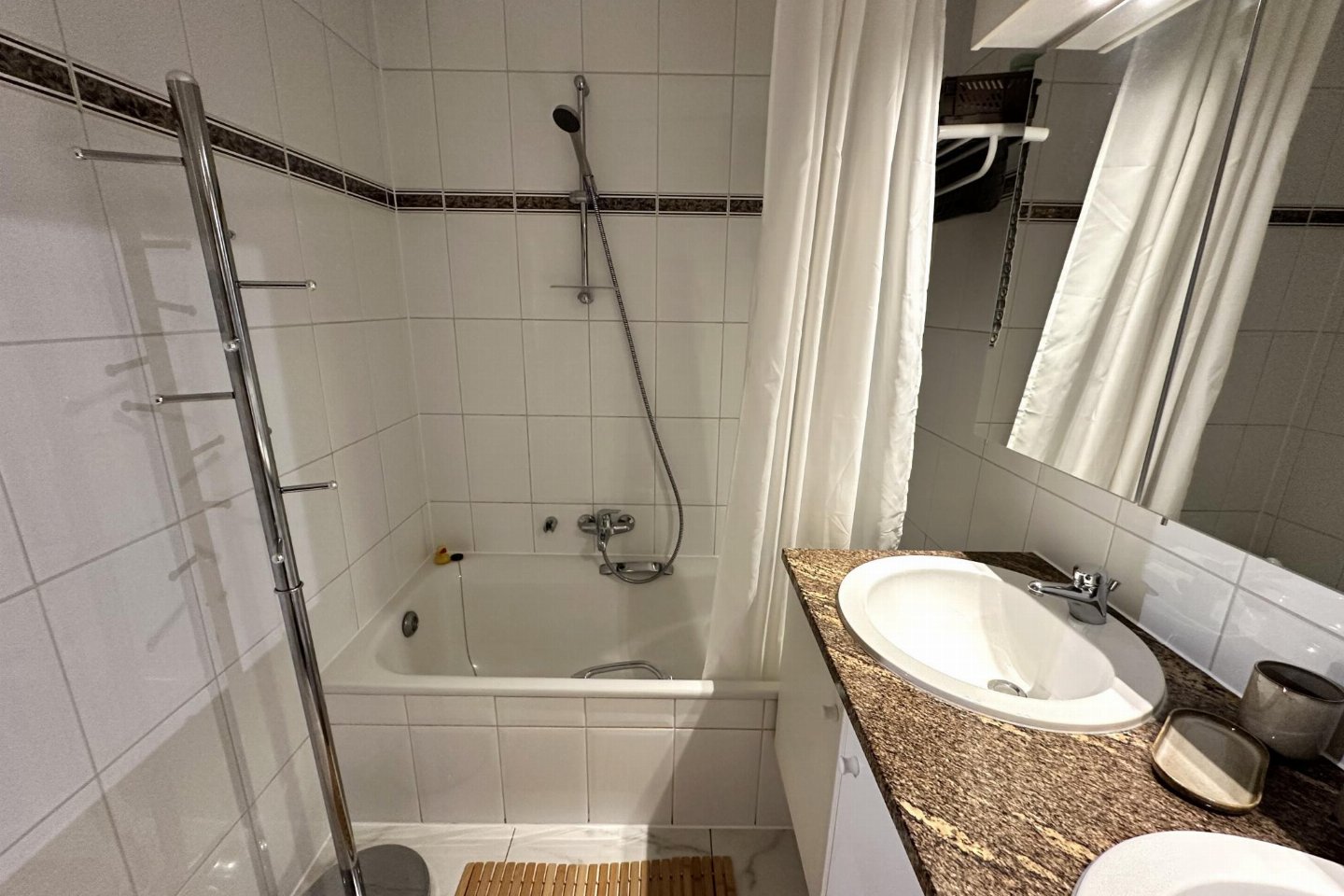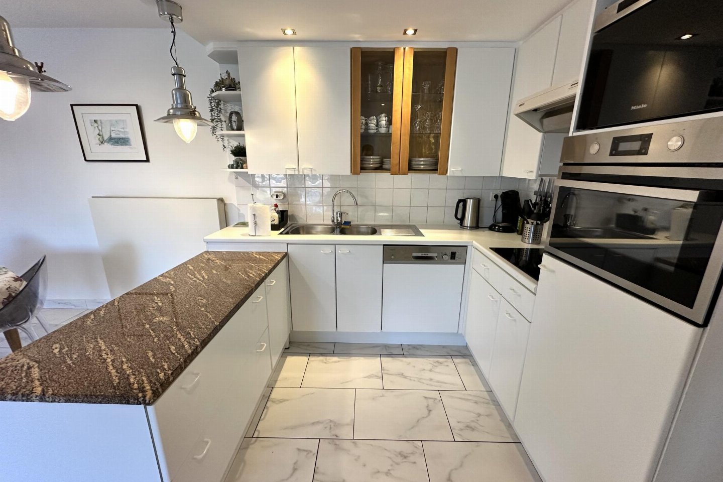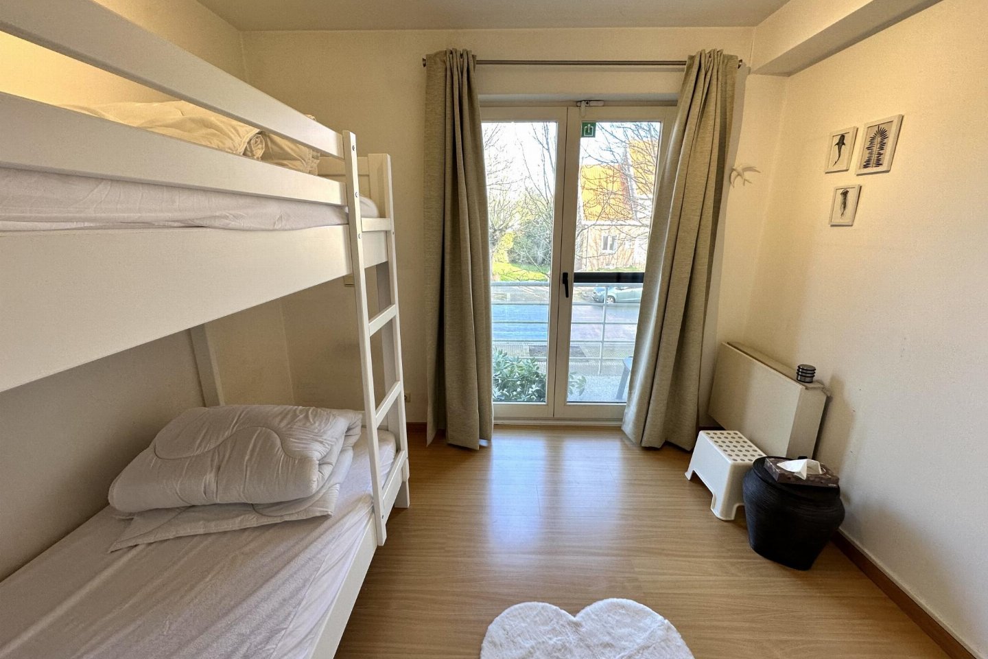 Op de 1e etage: (open keuken(kookplaat(keramisch), waterkoker, afzuigkap, koffiezetapparaat(senseo pads), oven, magnetron, afwasmachine, koelkast), woon/eetkamer(TV, eettafel, zithoek), slaapkamer(2-pers. bed(2 persoons dekbed, 160 x 200 cm)), slaapkamer(stapelbed(dekbed, 90 x 200 cm)), badkamer(bad met douche, 2x wastafel, haardroger), toilet(wc), balkon of terras)
