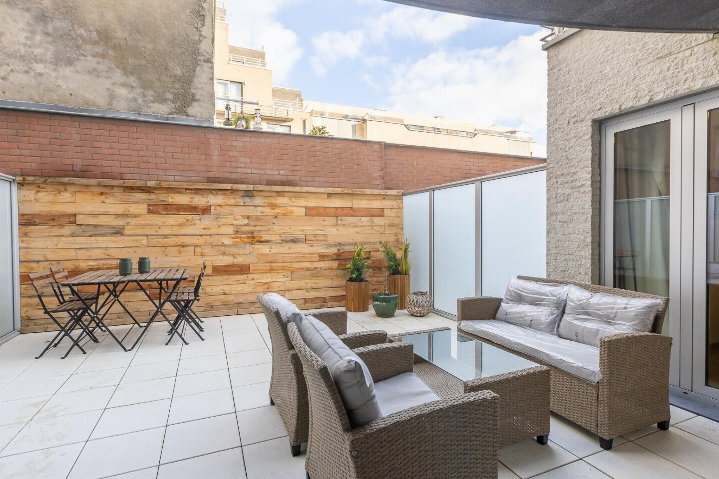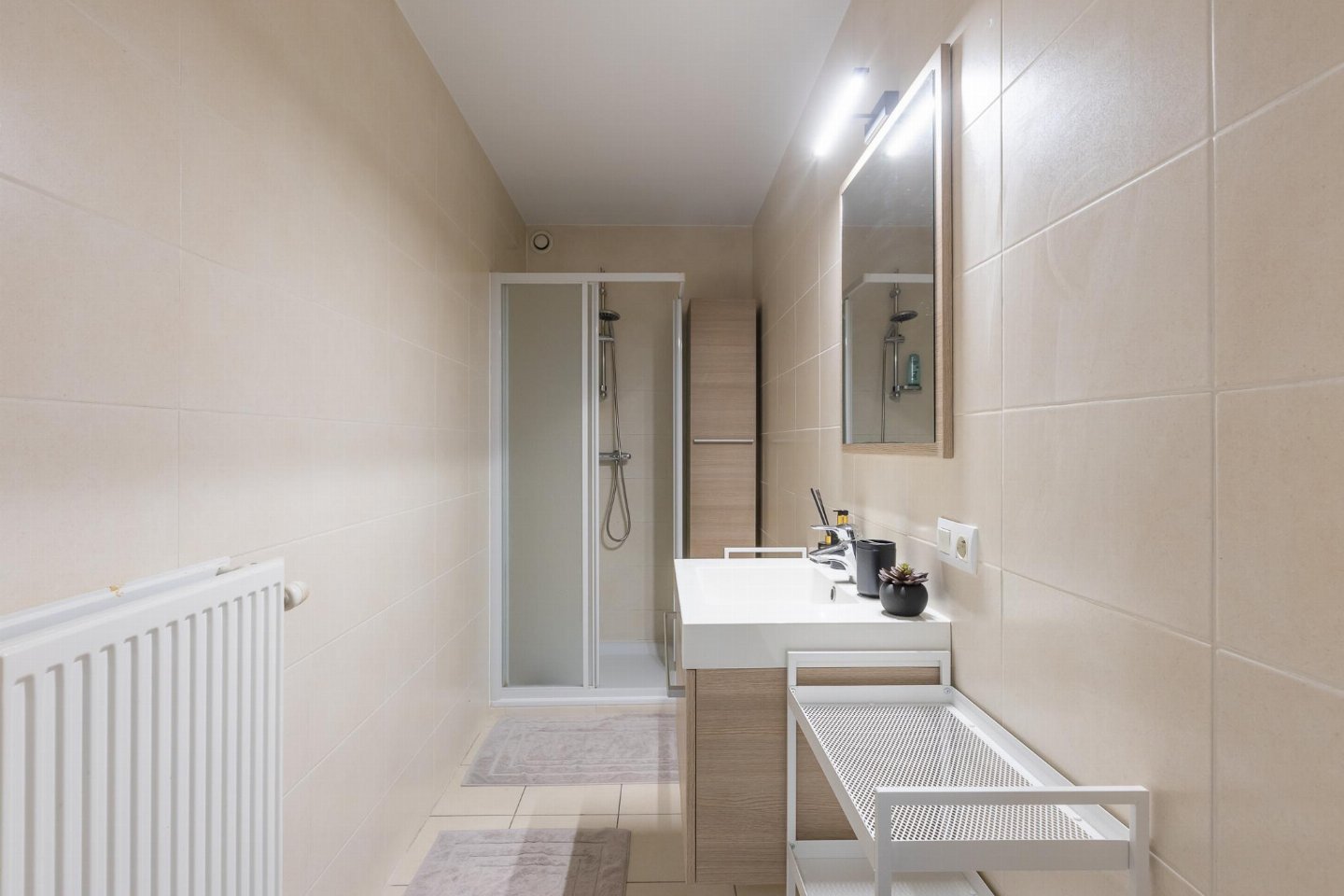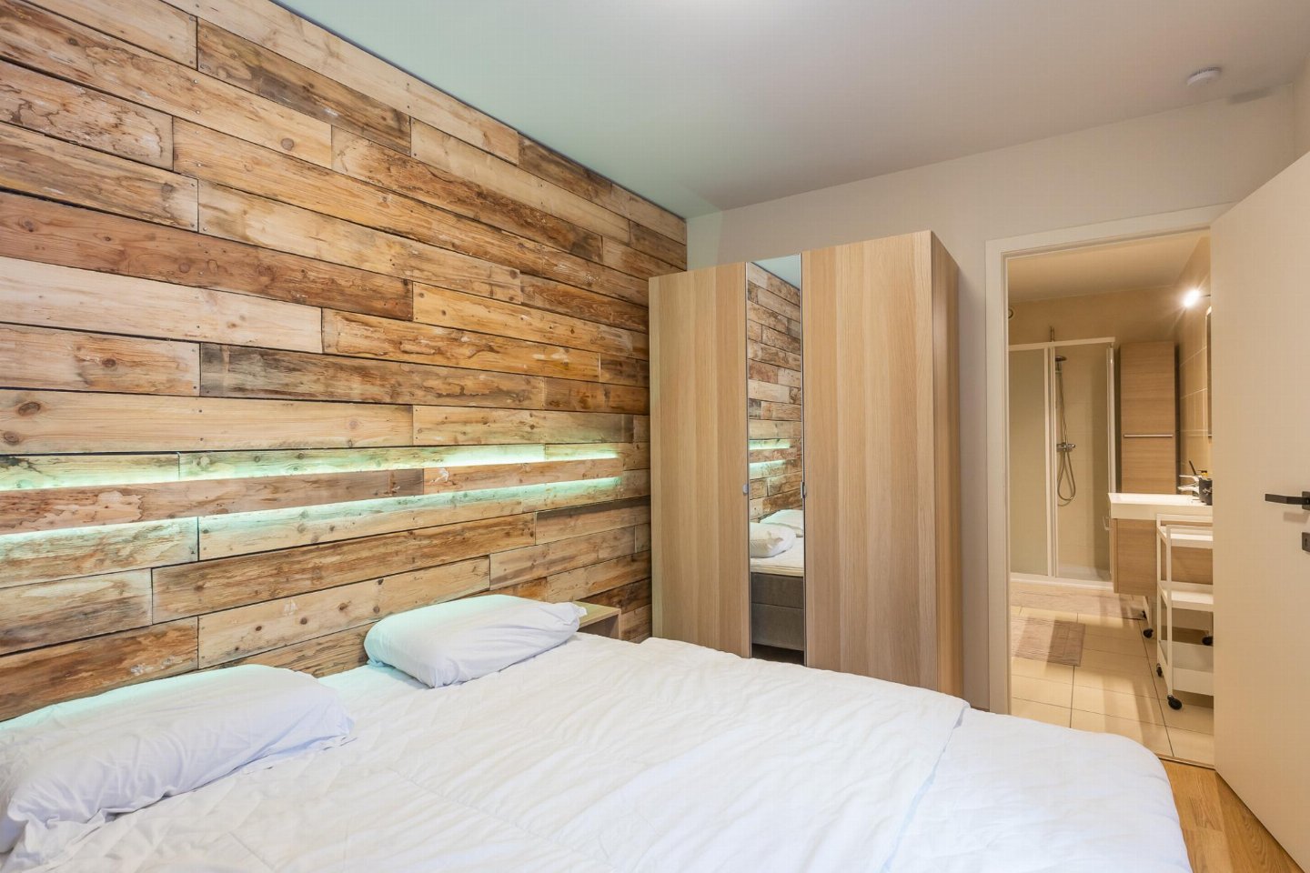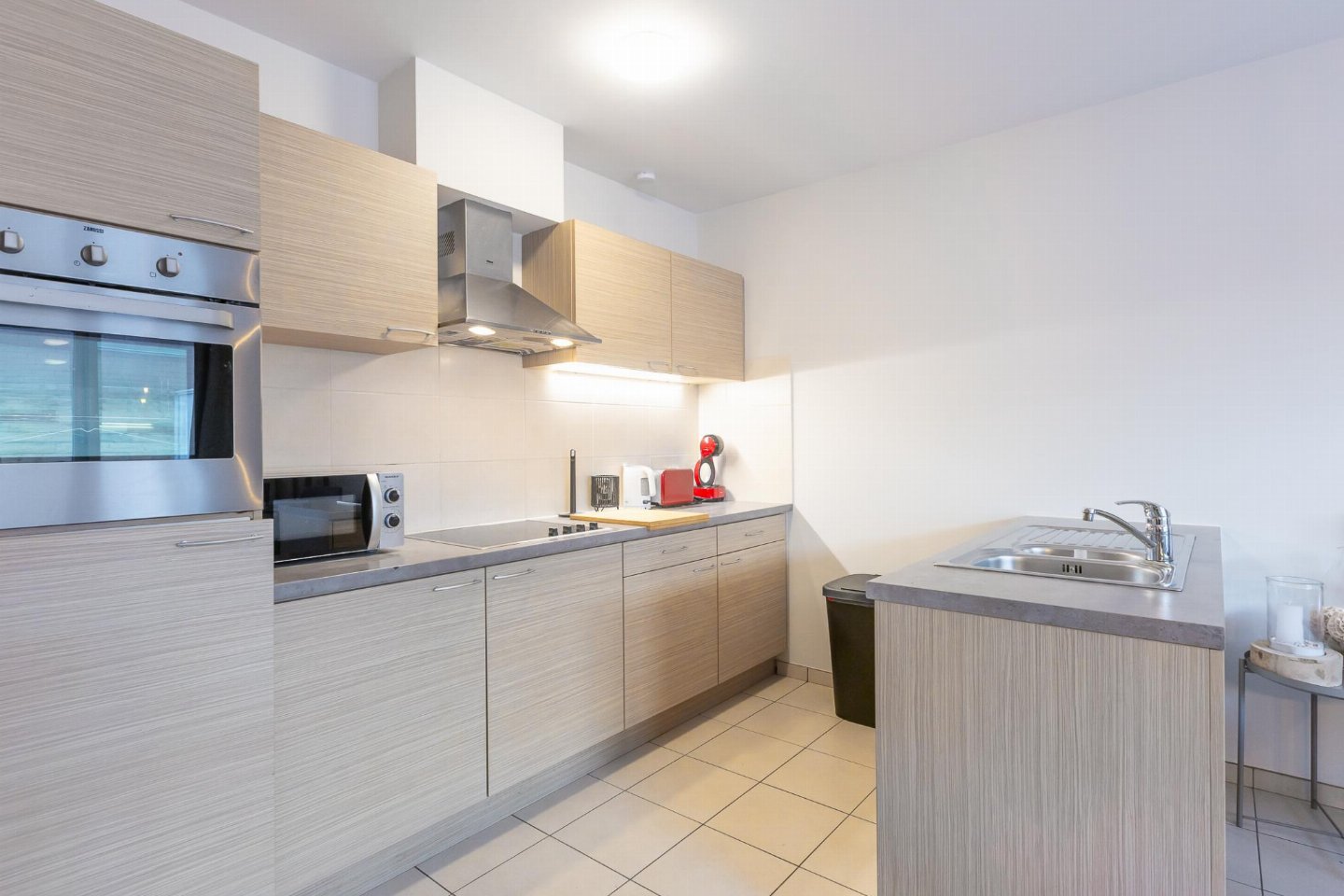 Gezellig gelijkvloers appartement met 1 slaapkamer (dubbel bed) en lichtrijke woonkamer met zetelbed voor 2 personen. Kamerhoge ramen geven toegang tot een ruim, zuidgericht terras met meubilair. Moderne open keuken, badkamer met douche, apart toilet en berging met wasmachine.