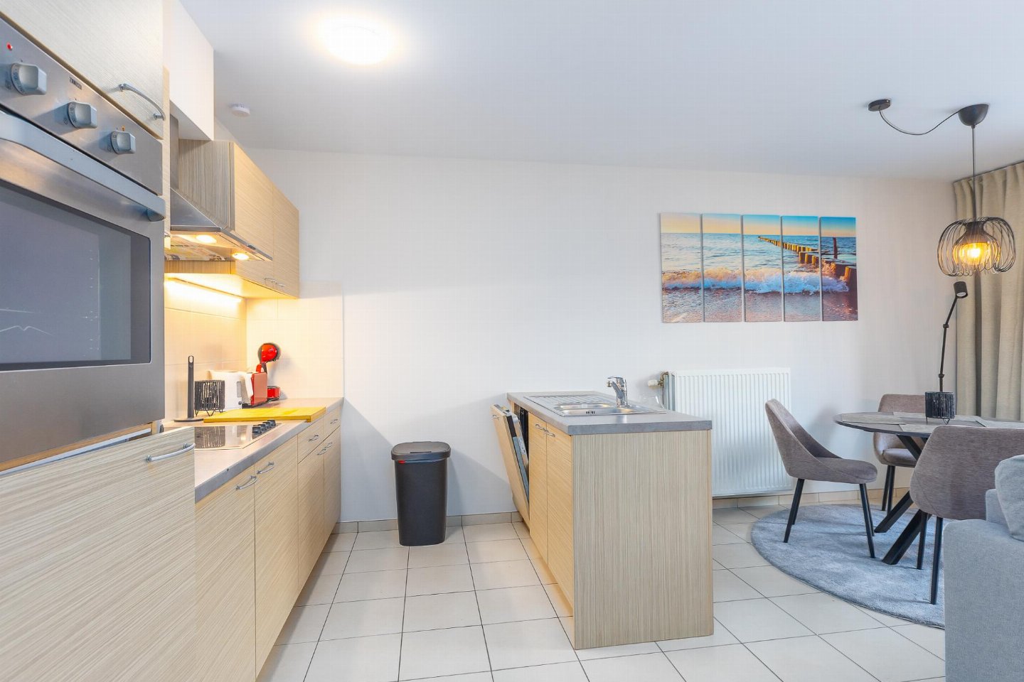 Gezellig gelijkvloers appartement met 1 slaapkamer (dubbel bed) en lichtrijke woonkamer met zetelbed voor 2 personen. Kamerhoge ramen geven toegang tot een ruim, zuidgericht terras met meubilair. Moderne open keuken, badkamer met douche, apart toilet en berging met wasmachine. Op enkele stappen van de Zeedijk; tramhalte vlakbij richting Middelkerke of Oostende. Ideaal voor een ontspannen vakantie.