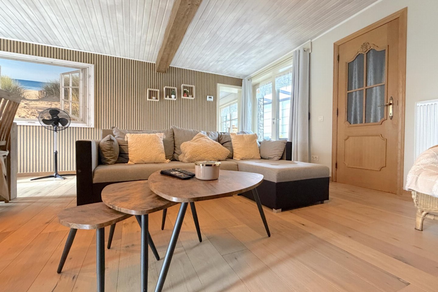 Op de 1e etage: slaapkamer met 2x 1-pers. bed(90 x 200 cm) , slaapkamer met 2-pers. bed(180 x 200 cm) , overloop met 1x kinderbed (excl. beddengoed)