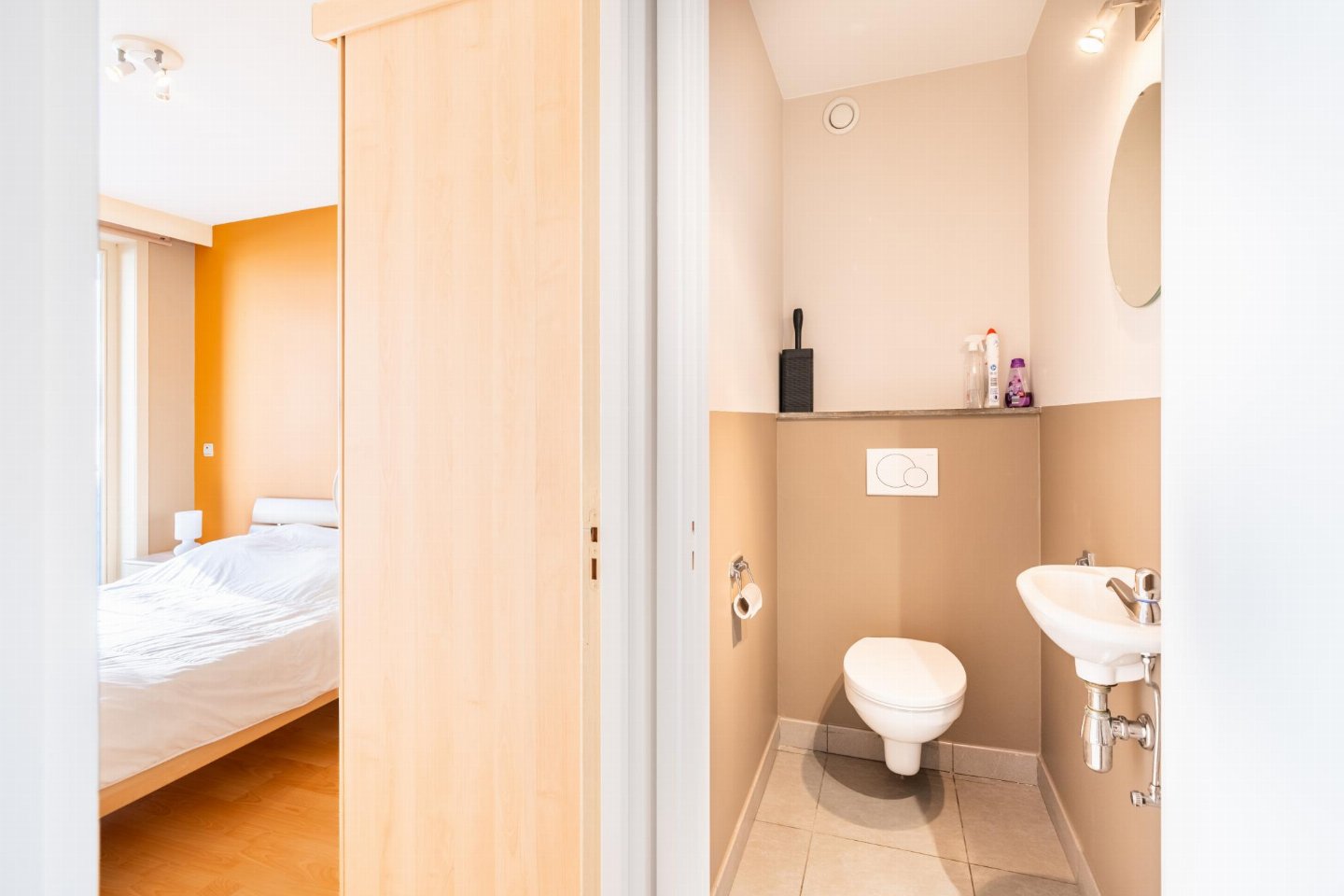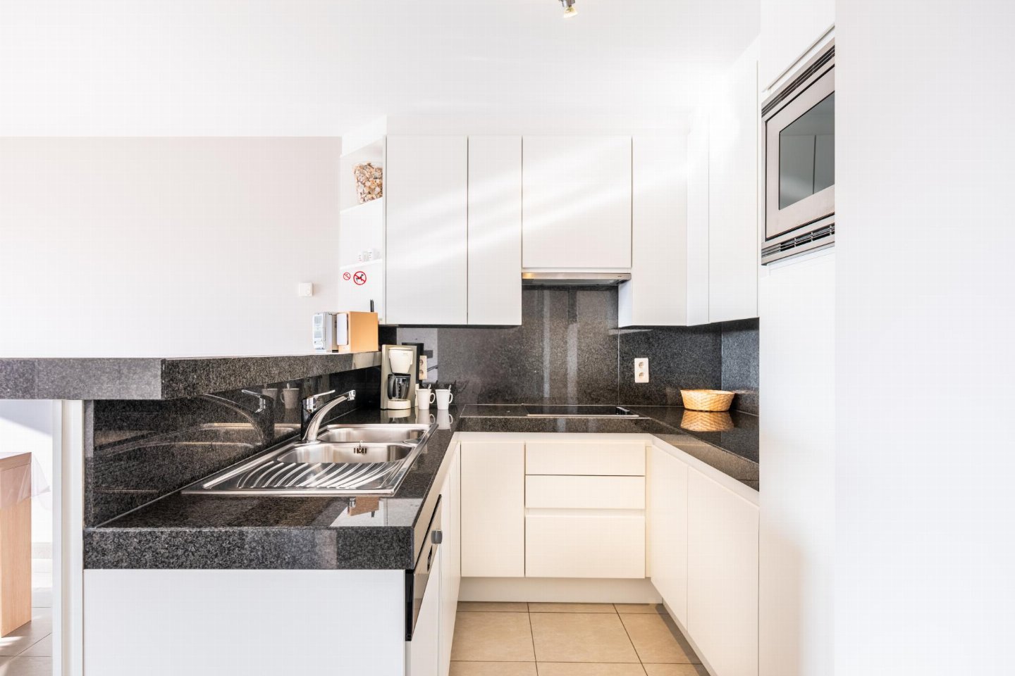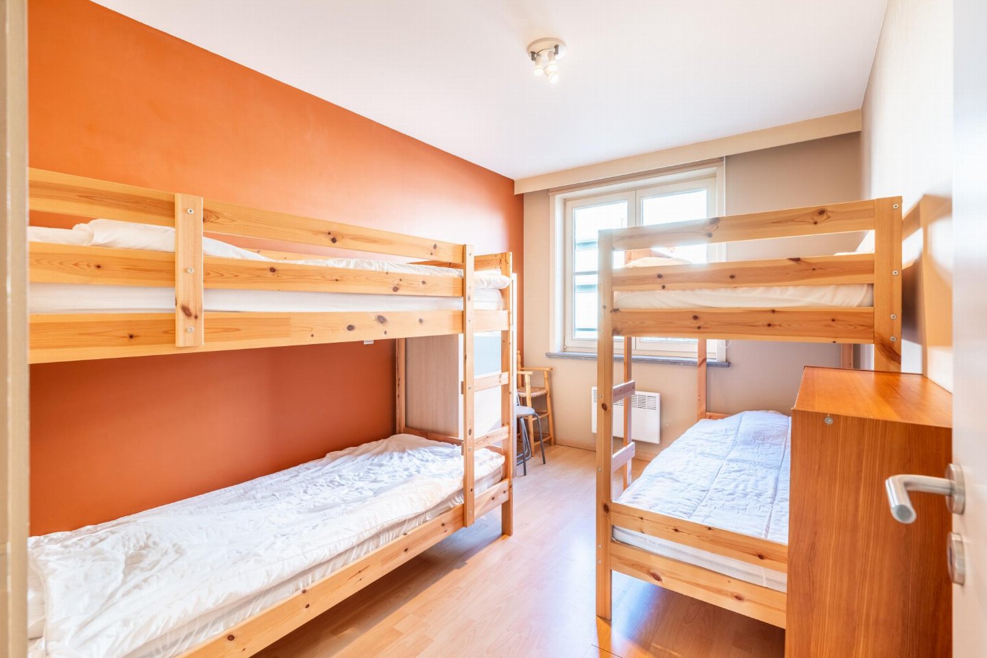 Op de 1e etage: (open keuken(kookplaat(keramisch), afzuigkap, koffiezetapparaat(filtermaling, senseo pads), afwasmachine, koelkast( vriesvak)), woon/eetkamer(TV, eettafel, zithoek), slaapkamer(2-pers. bed), slaapkamer(2x stapelbed), badkamer(douche(inloopdouche), wastafel), toilet(wc), berging(wasmachine), balkon, tuinmeubilair)