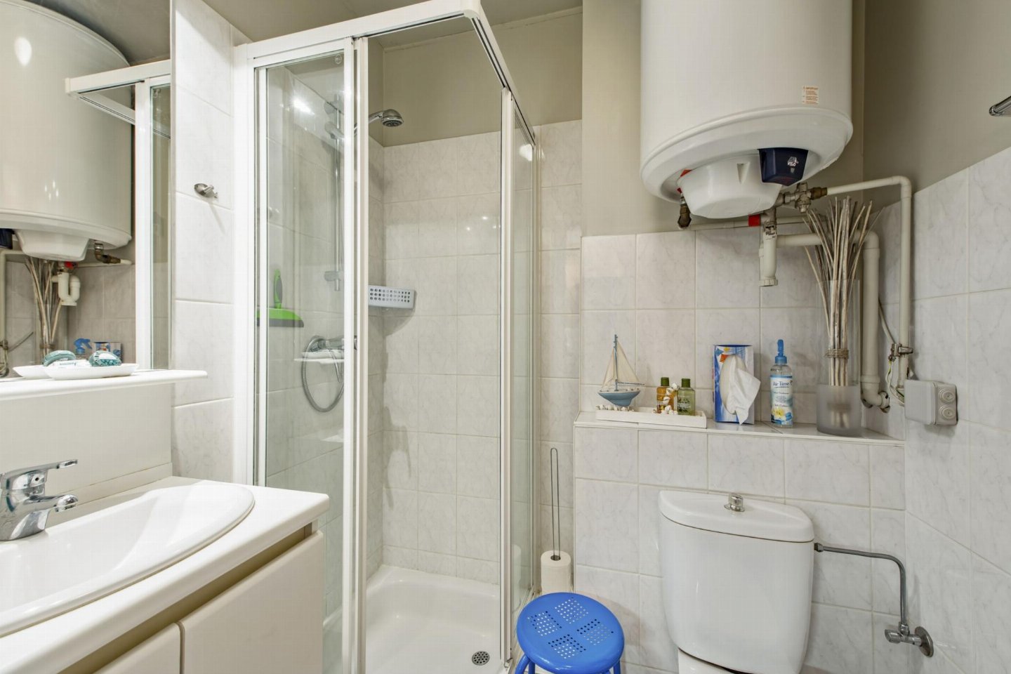 Op de 5e etage: (kitchenette(kookplaat(keramisch), waterkoker, broodrooster, afzuigkap, koffiezetapparaat(filtermaling), magnetron, koelkast( vriesvak)), woon/slaapkamer(2-pers. slaapbank(2 persoons dekbed), TV(flatscreen, digital), eettafel, zithoek), slaapnis(2-pers. kastbed(2 persoons dekbed)), badkamer(douche, wastafel, wc), stofzuiger, balkon, tuinmeubilair, 1x kinderbed (excl. beddengoed), 1x kinderstoel)