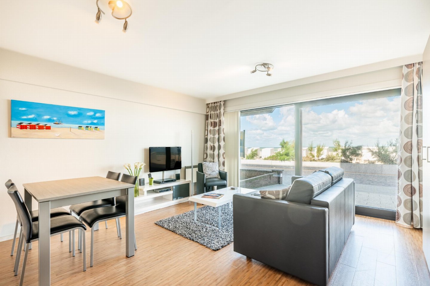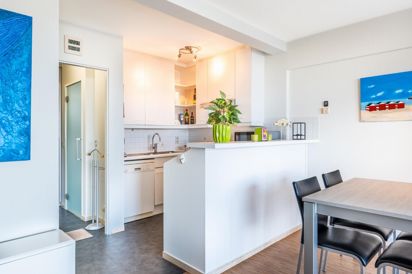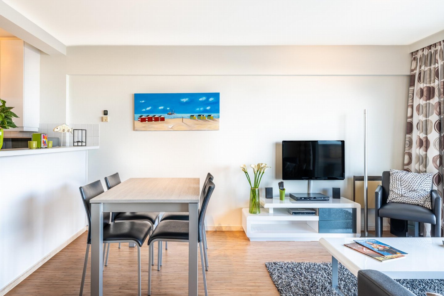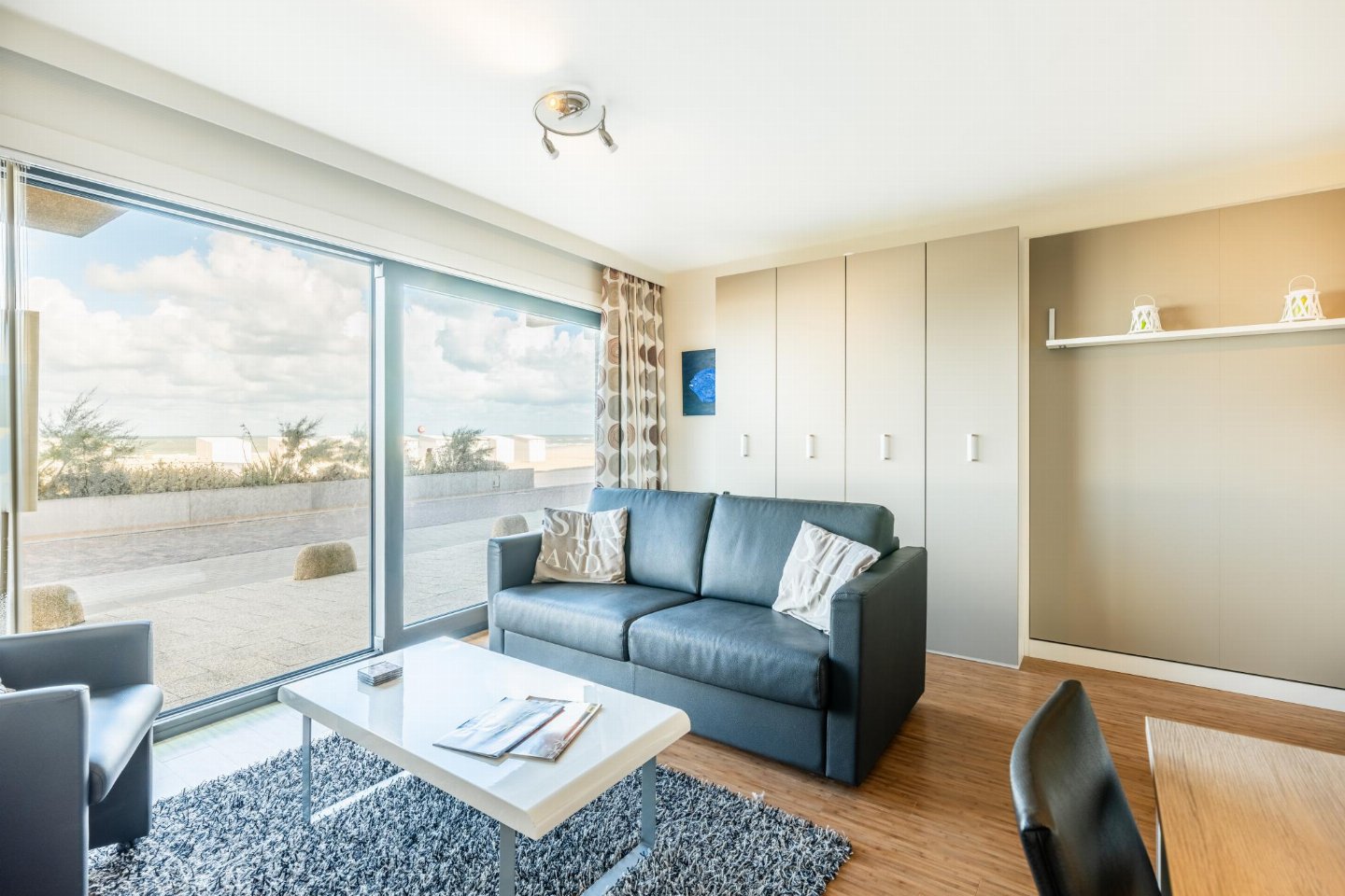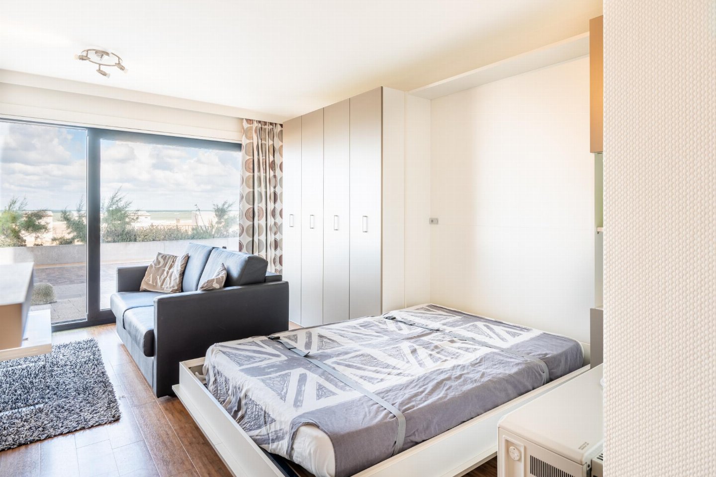 Laat je betoveren door het zeezicht in deze charmante, gerenoveerde studio op de zeedijk van St-Idesbald!. Word wakker met het geluid van de golven en geniet van het uitzicht over zee en duinen. slaapbank(2 persoons dekbed, 140 x 200 cm), 2-pers.