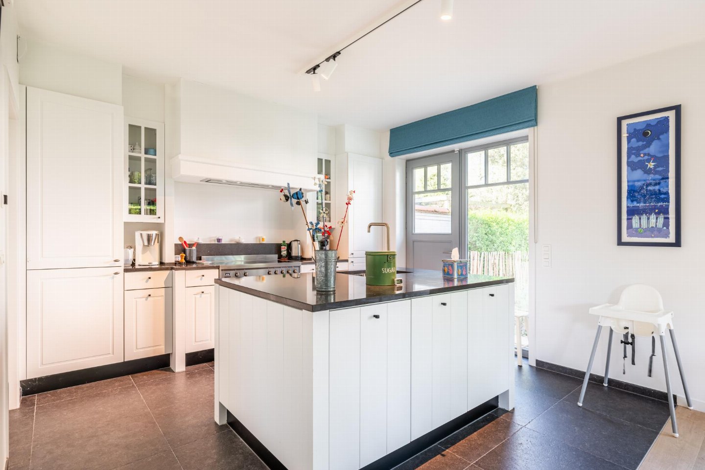 Begane grond: (hal, open keuken(kookplaat(keramisch), waterkoker, broodrooster, afzuigkap, koffiezetapparaat(filtermaling, nespresso cups), oven(elektrisch), magnetron, afwasmachine, koel-/vriescombinatie, Blender), woon/eetkamer(TV(flatscreen, digital, smart TV), eettafel, zithoek), toilet(wc), berging(wasdroger, wasmachine, stofzuiger, tafeltennistafel, strijkplank, strijkijzer))
