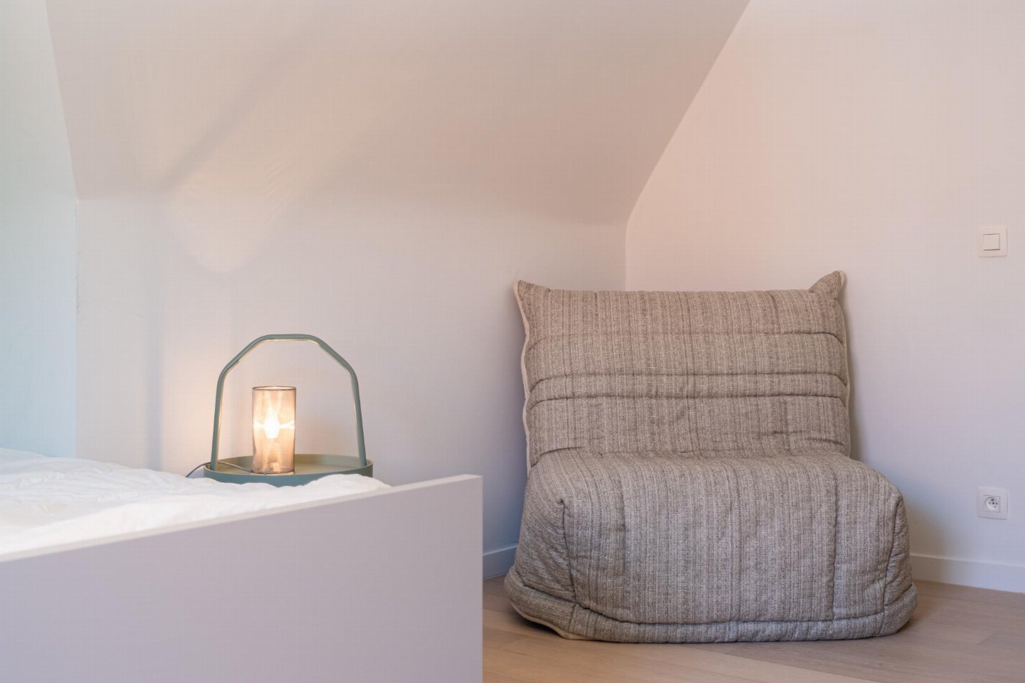 Op de 1e etage: (slaapkamer(1-pers. onderschuifbed(dekbed), stapelbed(dekbed)), 2x slaapkamer(2-pers. bed(2 persoons dekbed)), badkamer(ligbad, douche, wastafel), toilet(wc))