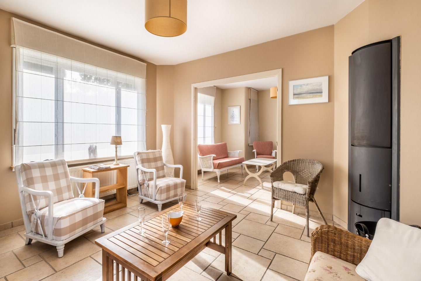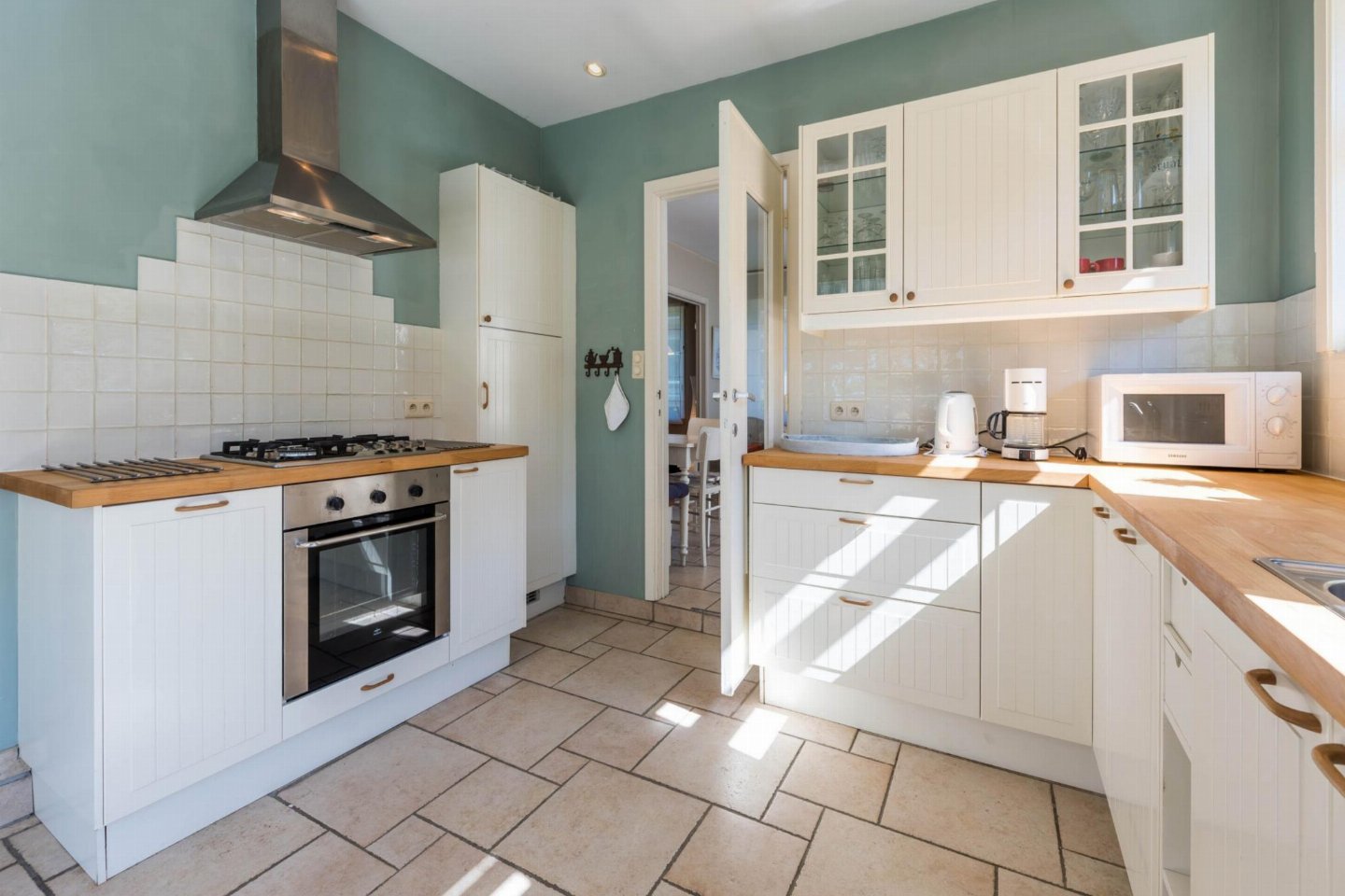 Begane grond: (hal, woonkamer(TV(flatscreen, digital), kachel(hout), zithoek, speelgoed), eetkamer(eettafel), keuken(kookplaat(gas), waterkoker, broodrooster, afzuigkap, koffiezetapparaat(filtermaling), oven(elektrisch), magnetron, afwasmachine, koelkast( vriesvak), Staafmixer), toilet(wc), veranda(zithoek), terras(10 m2))