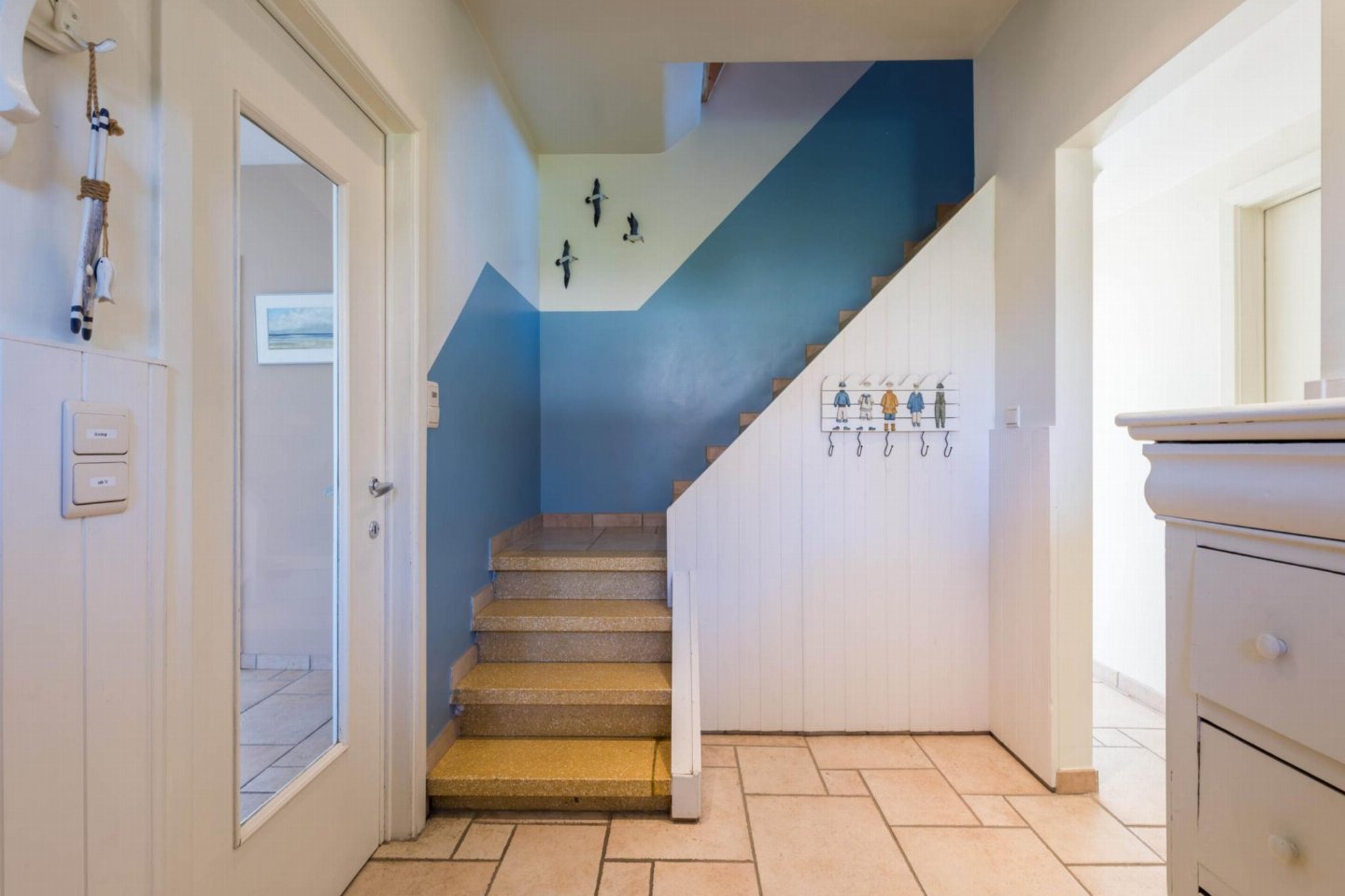 Op de 1e etage: (2x slaapkamer(2-pers. bed(2 éénpersoonsbedden, 2 x 1 persoons dekbed), wastafel), badkamer(zitbad, wastafel), toilet(wc))