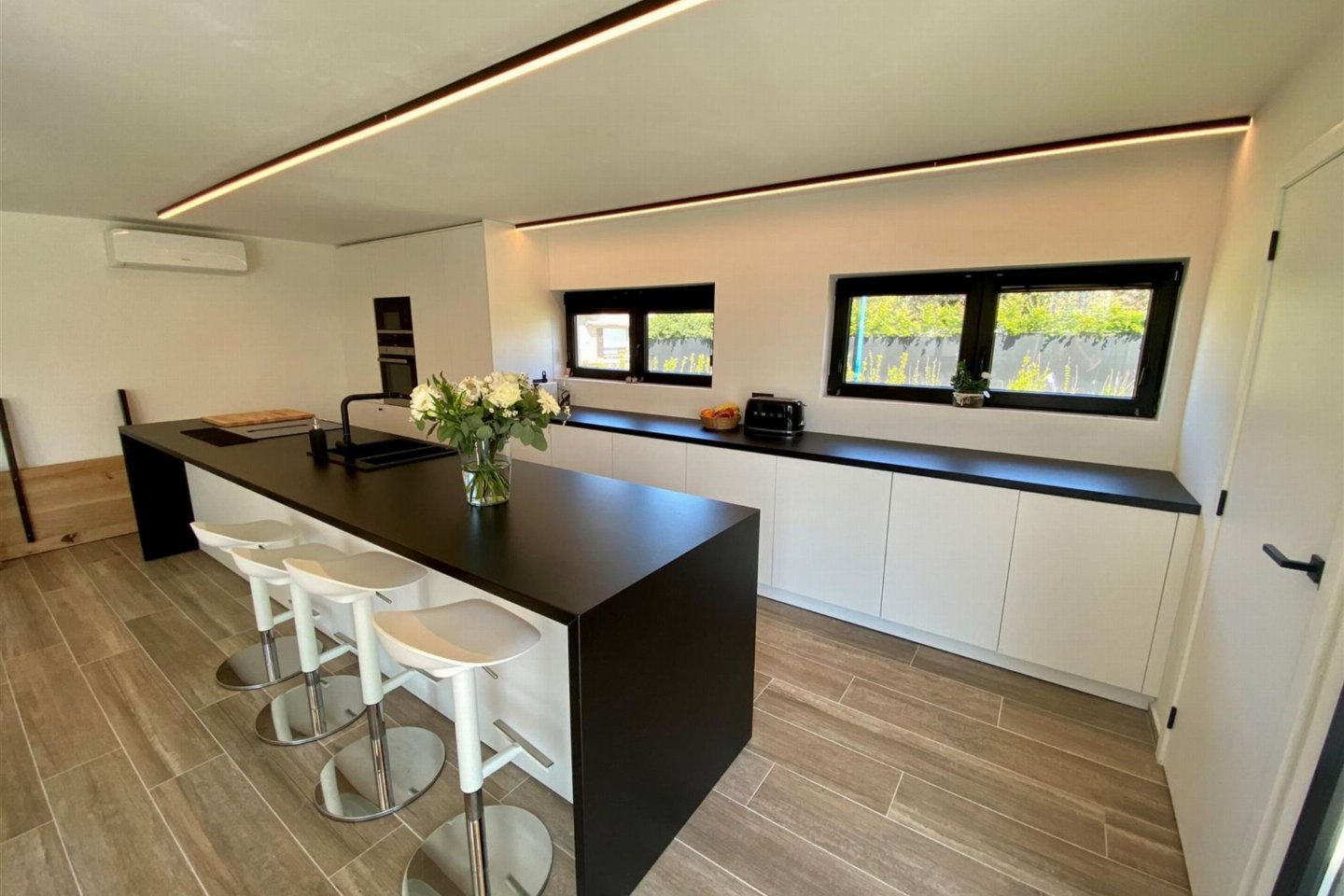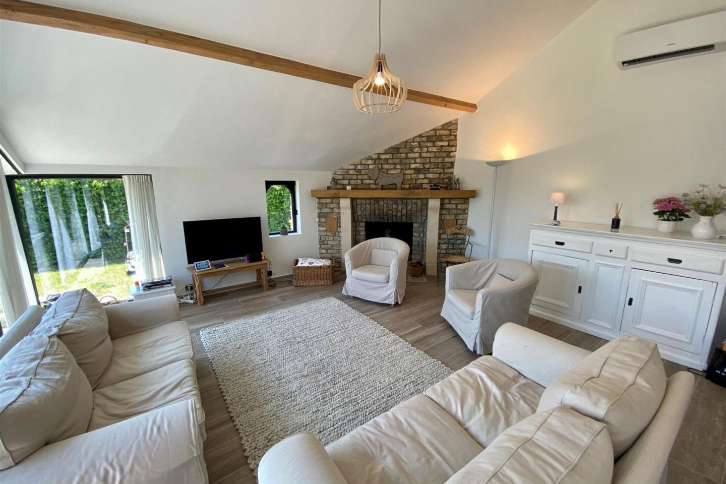 Begane grond: hal, open keuken met kookplaat, waterkoker, broodrooster, afzuigkap, koffiezetapparaat(cups), oven, magnetron, afwasmachine, koelkast , woon/eetkamer met TV(flatscreen, digital), open haard, zithoek , toilet met wc , 1x garage(1 parkeerplaats)