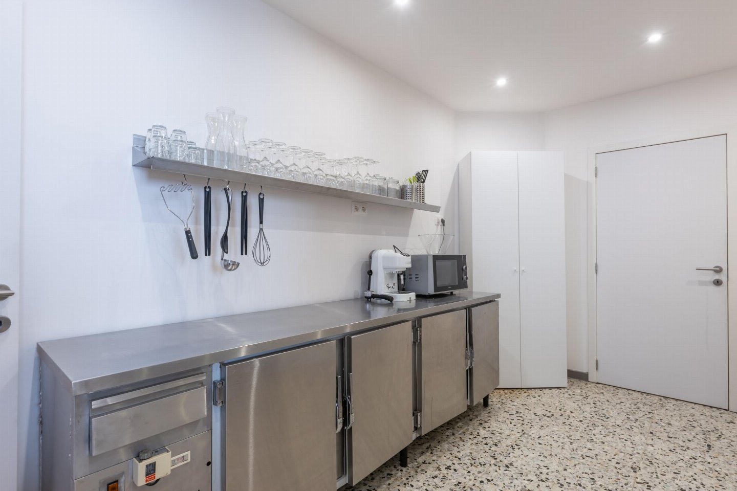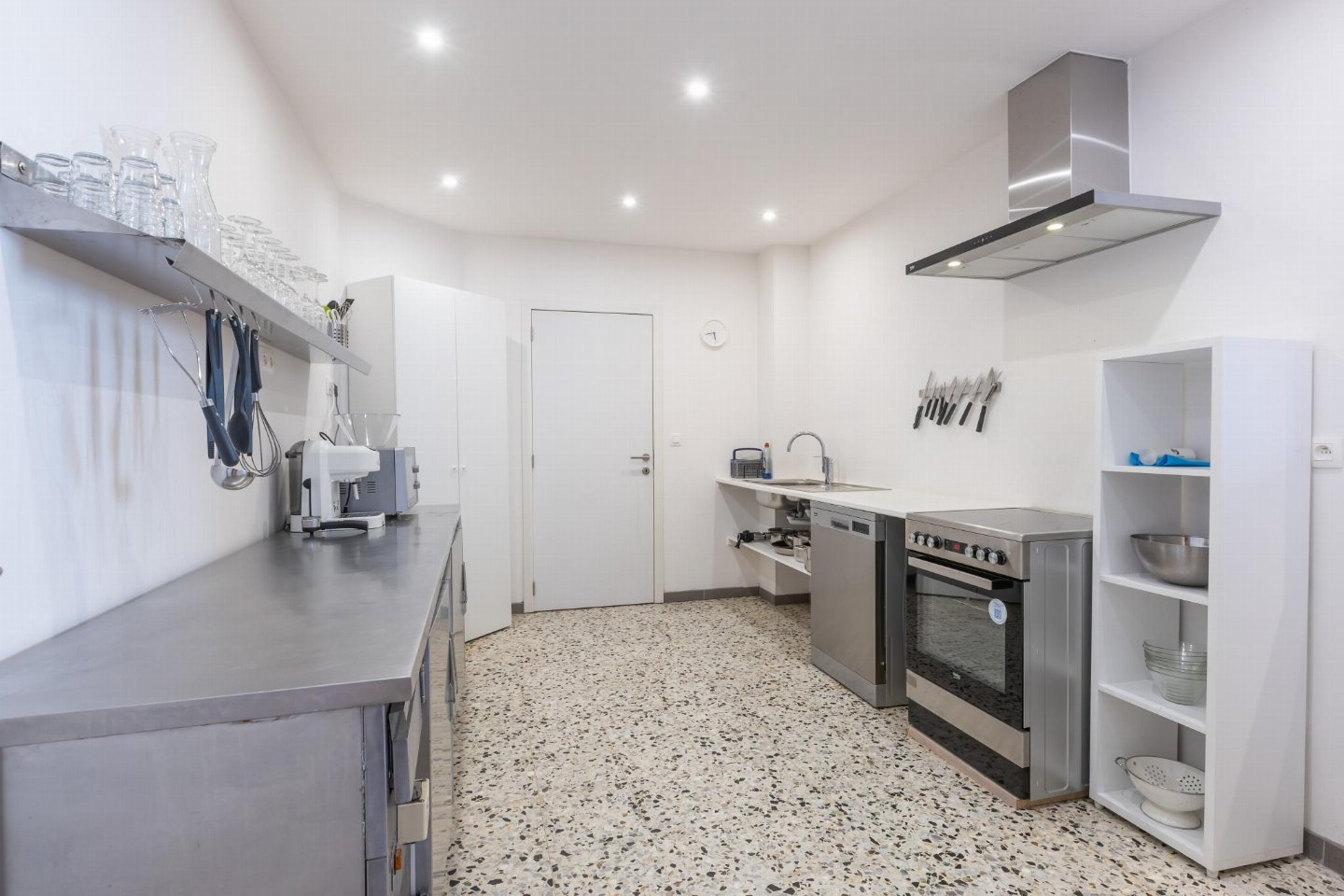 Begane grond: woonkamer met zithoek , eetkamer met eettafel(10 personen), 2x kinderstoel , keuken met kookplaat(4 kookplaten, keramisch), waterkoker, broodrooster, afzuigkap, koffiezetapparaat(filtermaling), koffiezetapparaat(espresso), oven, magnetron, afwasmachine , badkamer met douche, wastafel, wc , bijkeuken met koel-/vriescombinatie