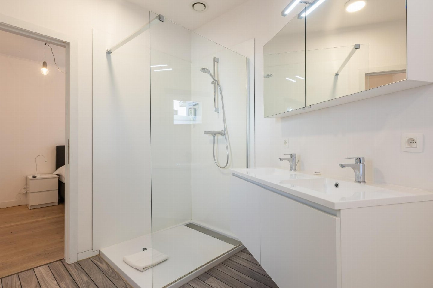 Op de 2e etage: slaapkamer met badkamer met 2-pers. bed, TV(smart TV), douche, wastafel, wc