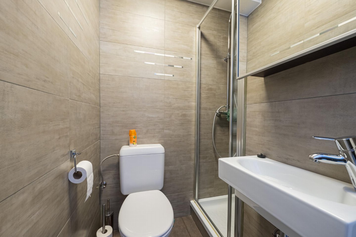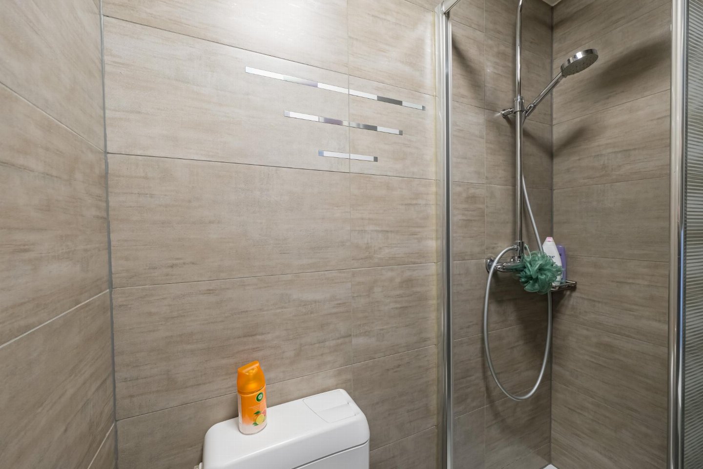 Op de 3e etage: woonkamer met 2-pers. slaapbank(2 persoons dekbed, 140 x 200 cm), TV, eettafel, radio , keuken met koffiezetapparaat(filtermaling), oven, magnetron, koelkast, koel-/vriescombinatie , slaapkamer met 2x stapelbed(dekbed, 80 x 200 cm) , badkamer met douche , toilet, berging, kelder