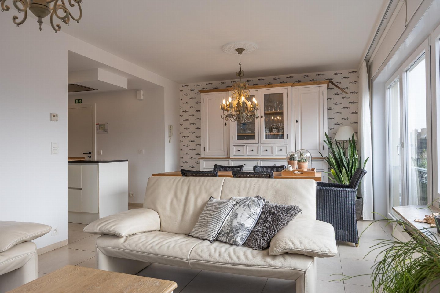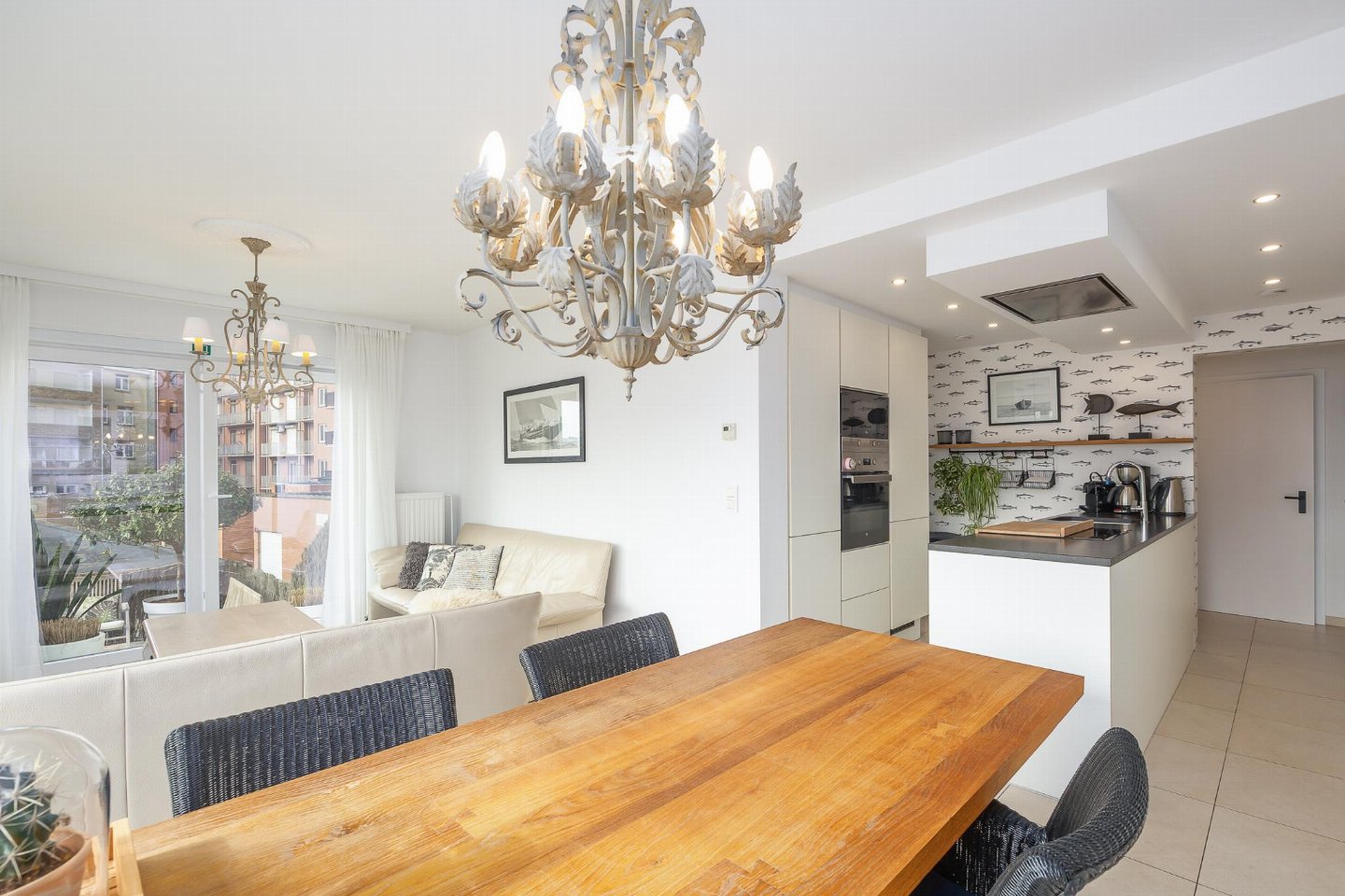 Hoekappartement op de 1e verdieping in residentie Rising Sun in Westende, vlak bij het strand. 2 slaapkamers: één met dubbel bed en één met stapelbed en bureau, ideaal voor max. 4 personen. Lichtrijke woonkamer met toegang tot zonnig terras. Open, volledig uitgeruste keuken. Badkamer met ligbad/douche en berging met wasmachine.