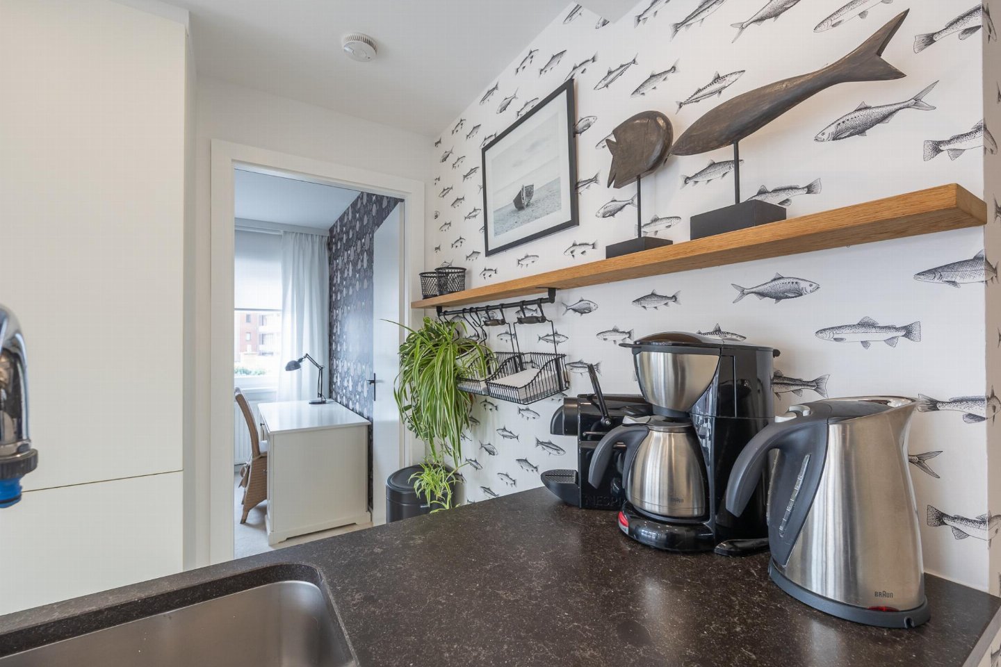Op de 1e etage: woonkamer met TV, eettafel , keuken met waterkoker, broodrooster, koffiezetapparaat(filtermaling), oven, magnetron, afwasmachine, koelkast, vriezer, citruspers , slaapkamer met 2-pers. bed(2 persoons dekbed, 180 x 210 cm) , slaapkamer met stapelbed(dekbed, 90 x 200 cm) , badkamer met ligbad , toilet, berging
