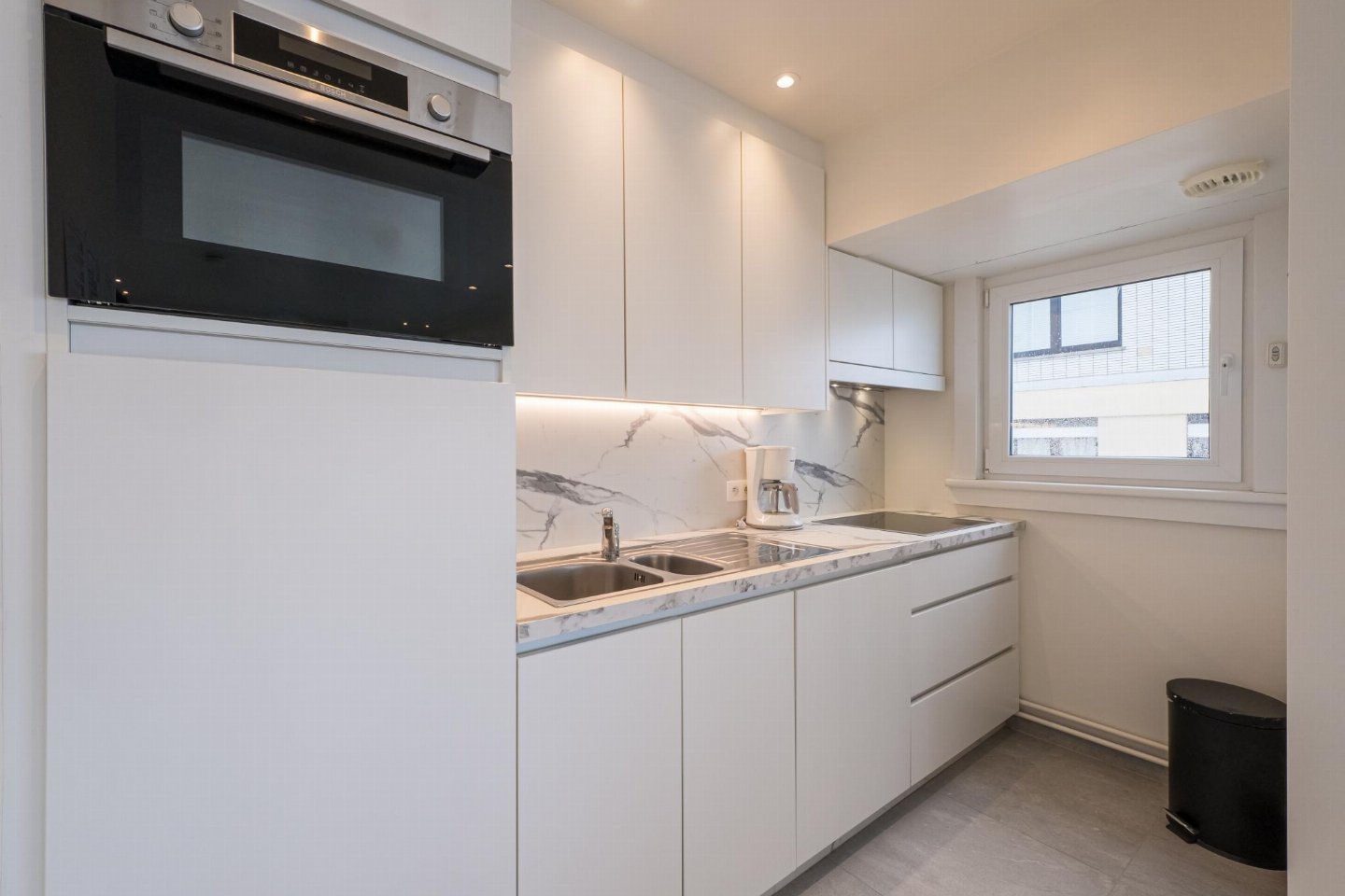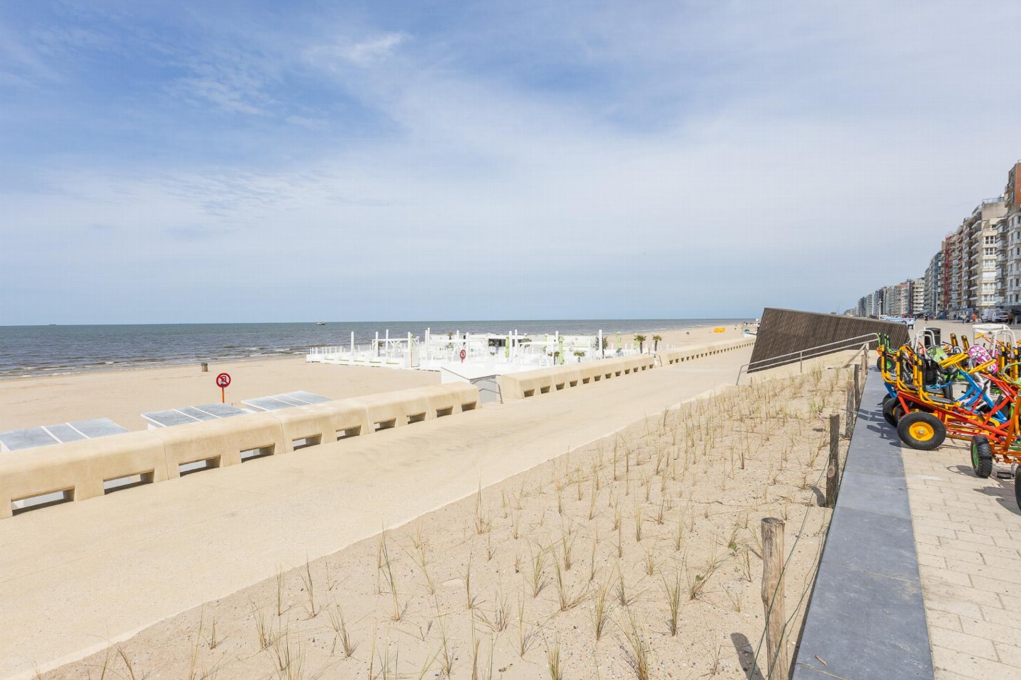 Hoekappartement op de 6e verdieping met frontaal zeezicht, ideaal voor max. 5 personen. 2 slaapkamers: één met dubbel bed en één met stapelbed enkel bed. Ruime, lichtrijke woonkamer en volledig vernieuwde open keuken. Badkamer met inloopdouche, berging met wasmachine en terras met zeezicht.