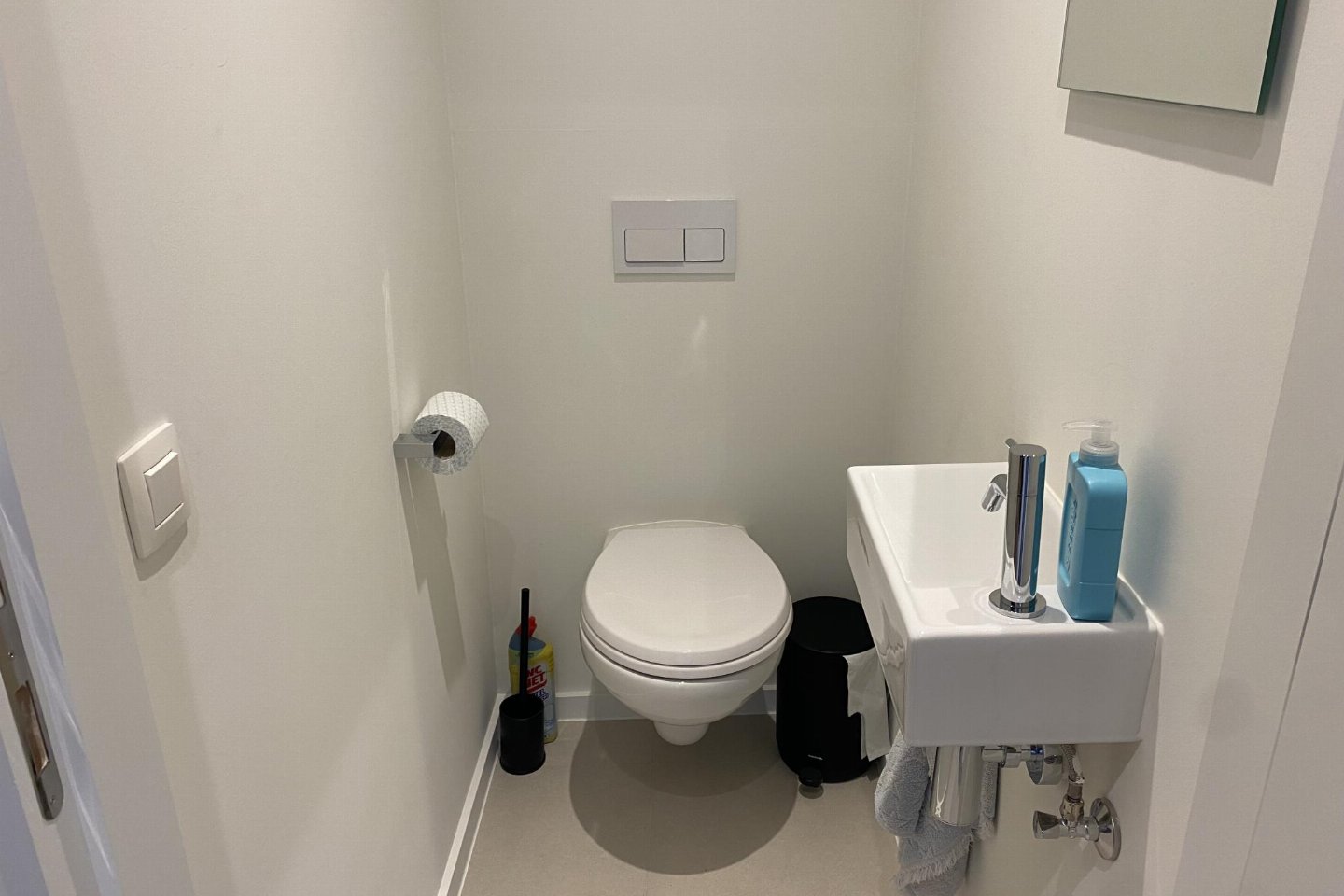 Begane grond: (open keuken(kookplaat, koffiezetapparaat(nespresso cups), oven, afwasmachine, koelkast), woon/eetkamer(TV(flatscreen, digital), zithoek), slaapkamer(2-pers. bed(2 persoons dekbed, 160 x 200 cm)), badkamer(douche(inloopdouche), wastafel), toilet(wc))
