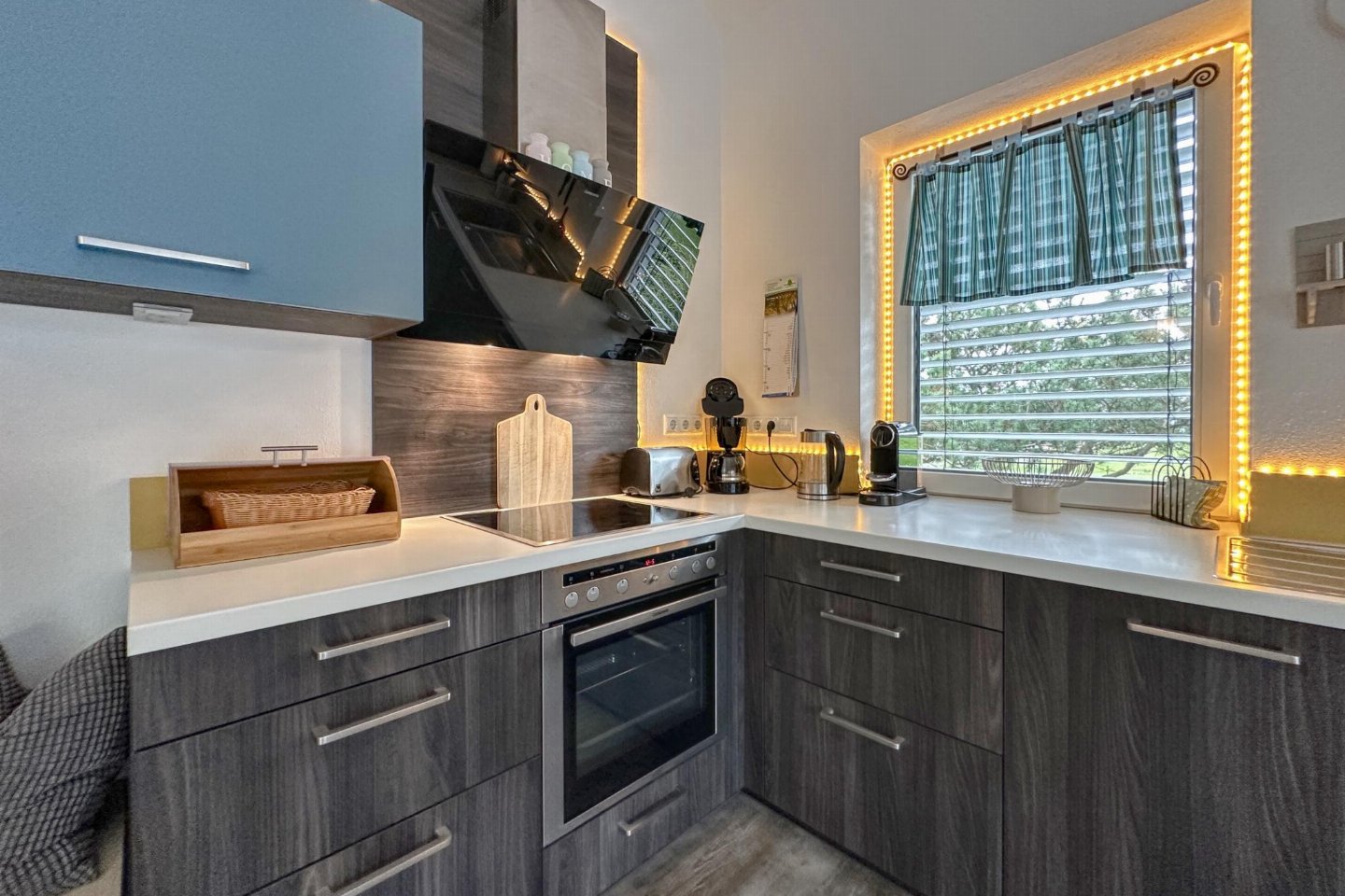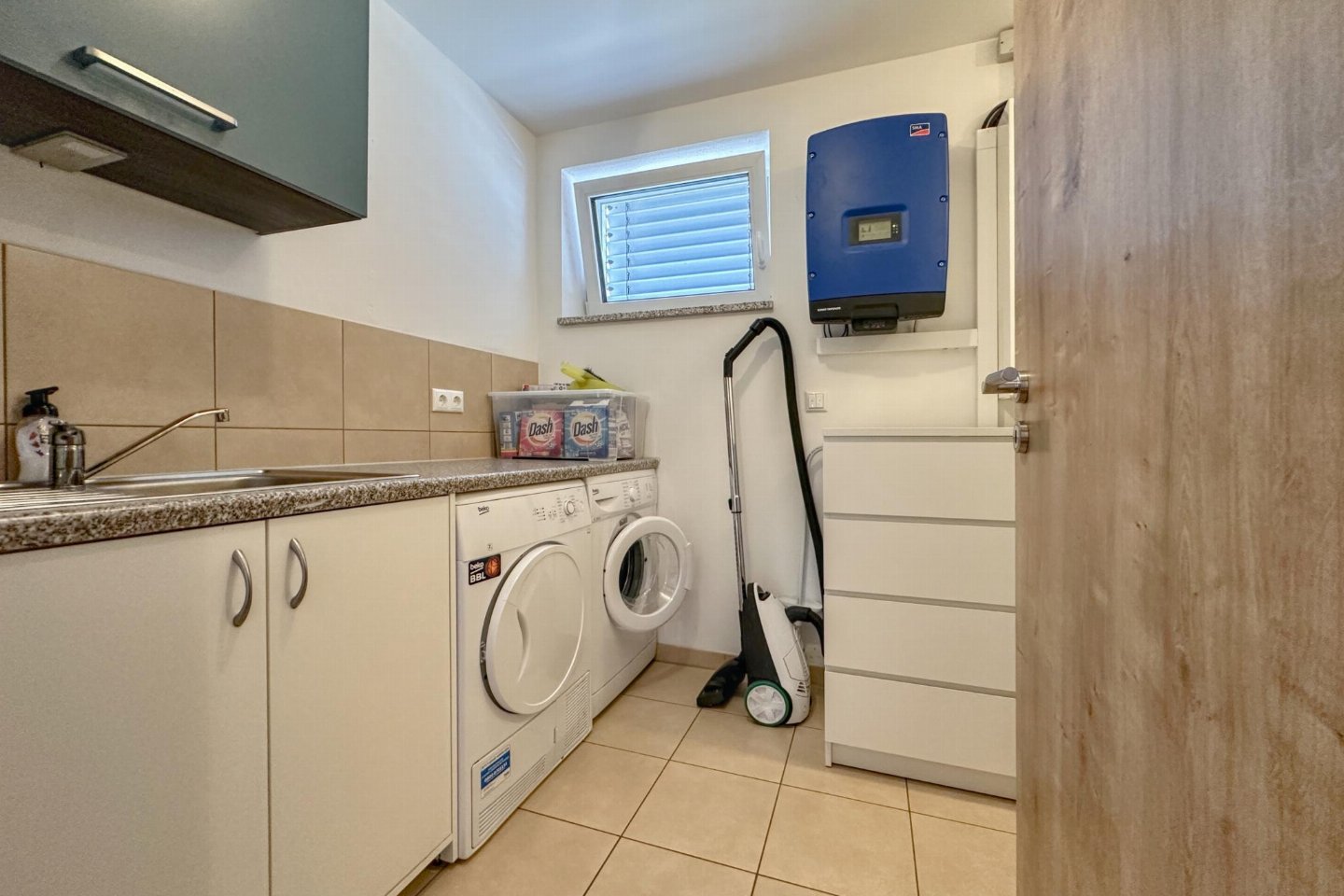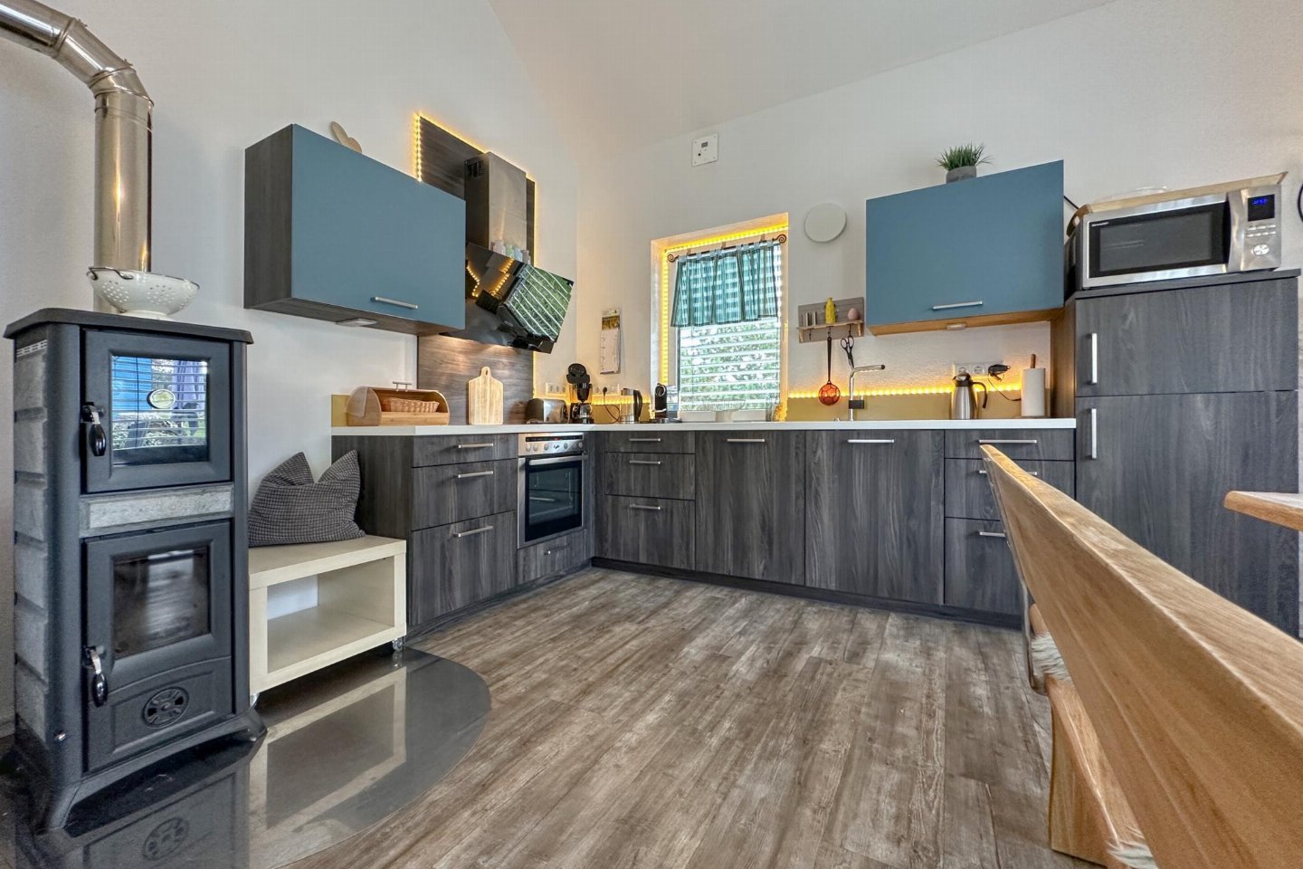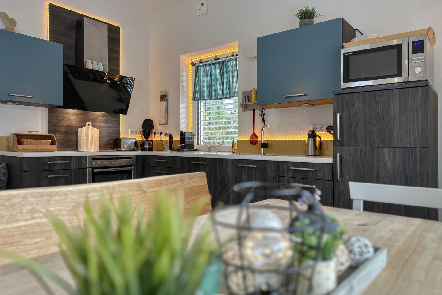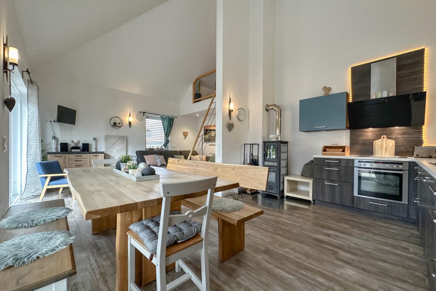 Begane grond: (hal, open keuken(eettafel, waterkoker, broodrooster, fornuis(4 kookplaten, keramisch), afzuigkap, koffiezetapparaat(cups, filtermaling), oven, magnetron, afwasmachine, koelkast( vriesvak), horren, citruspers, Blender), woon/eetkamer(TV(flatscreen, satelliet, smart TV), eettafel, kachel(hout), zithoek, radio, horren), 2x slaapkamer(2-pers. bed(boxspring, 180 x 200 cm), TV(flatscreen, satelliet), horren), badkamer(douche, wastafel, wc, verwarming(vloerverwarming), haardroger), toilet(wastafel, wc, urinoir), berging(wasdroger, wasmachine, stofzuiger, 1x kinderstoel))
