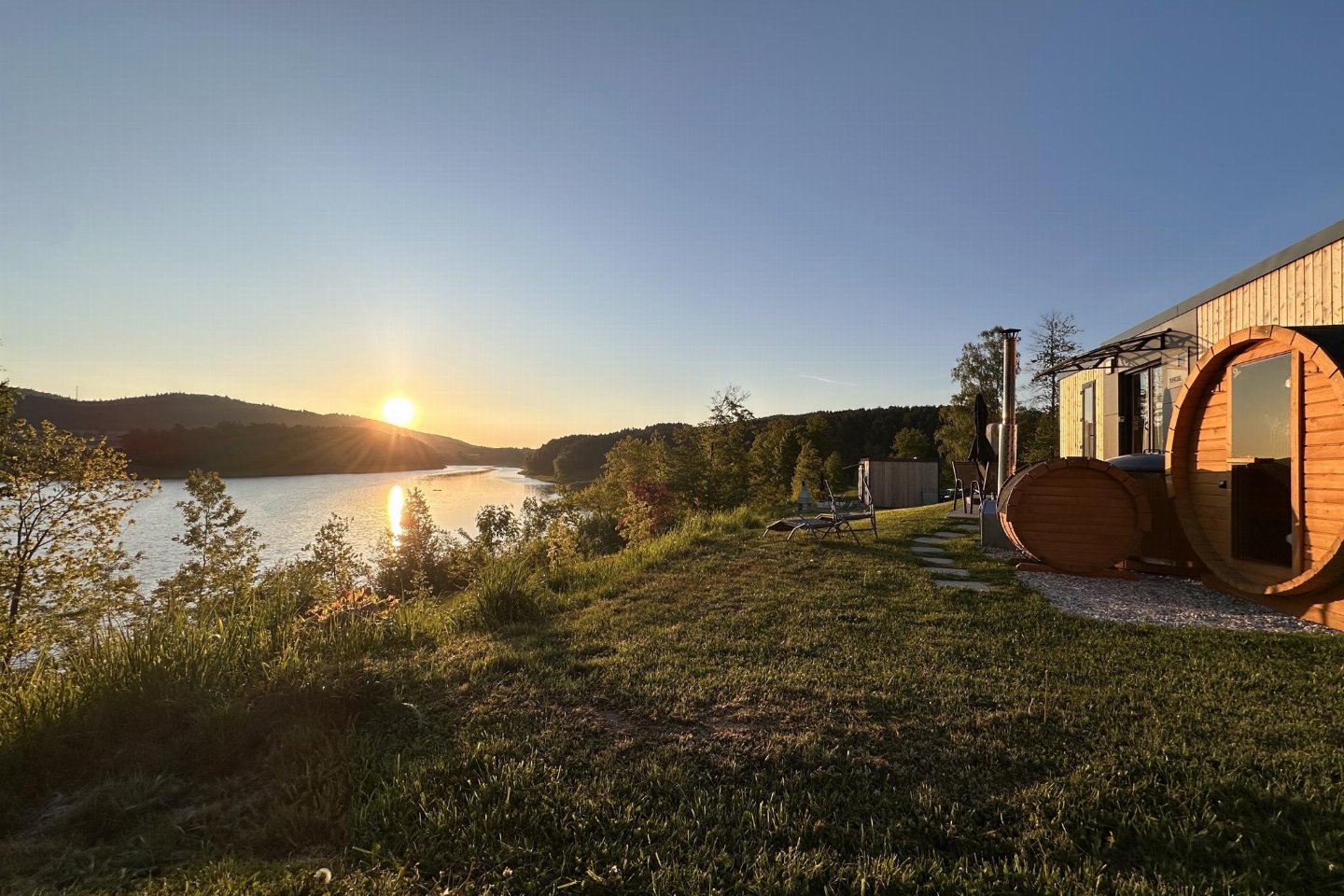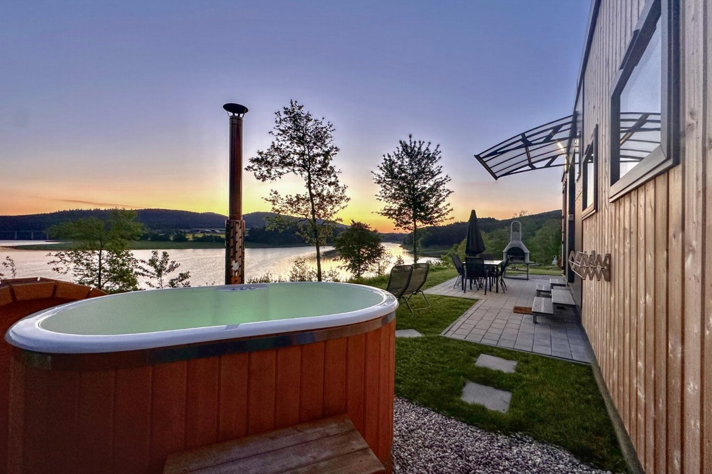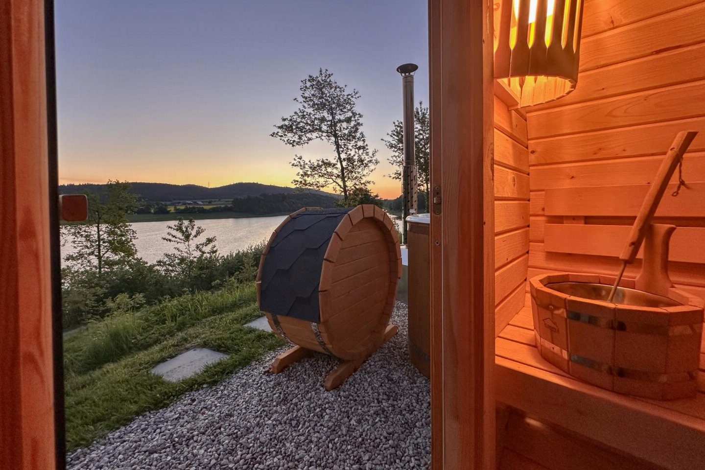 Welkom in het rustig gelegen, kleine vakantiehuis Seeblick aan de oever van het Eixendorfer Meer, in het hart van het Oberpfälzer Wald. Dit moderne chalet is ideaal voor paren, gezinnen of vrienden die comfort en privacy waarderen. Geniet van de lichte woonkamer met een volledig uitgeruste keuken, evenals een eigen terras met grill, tuinmeubilair en ligstoelen. Hoogtepunt is de eigen vaten-sauna en een houtgestookte HotTub. Het huis ligt aan de voorste rij met direct uitzicht op het meer.
