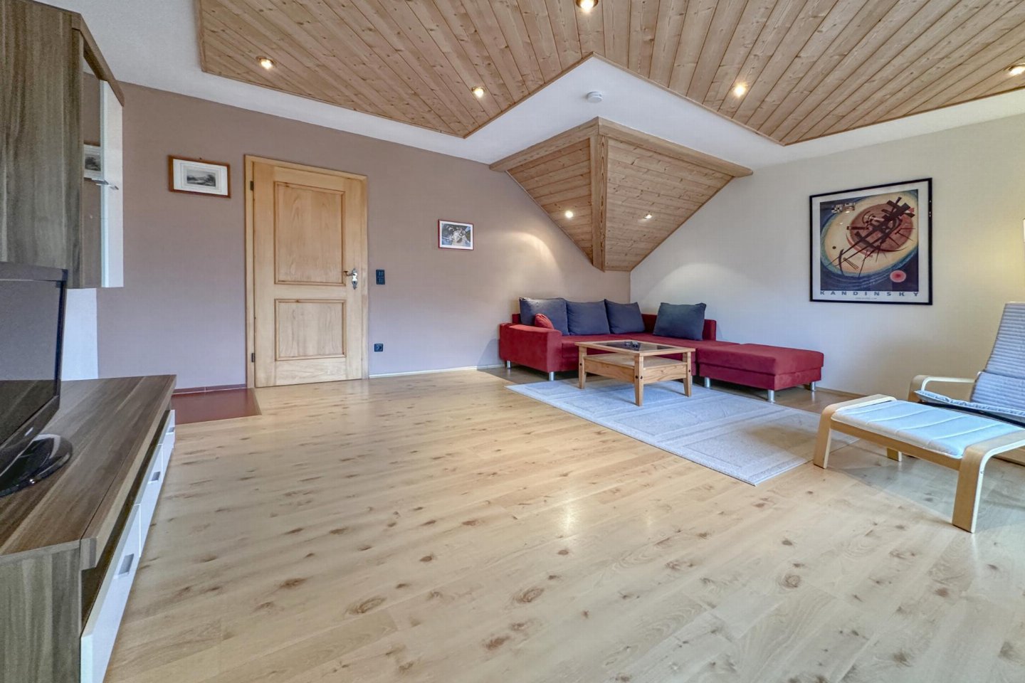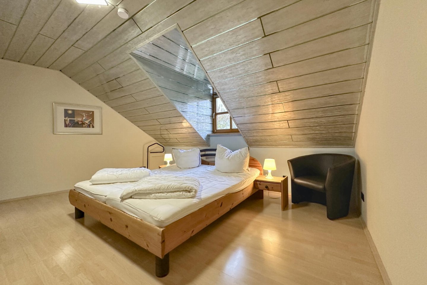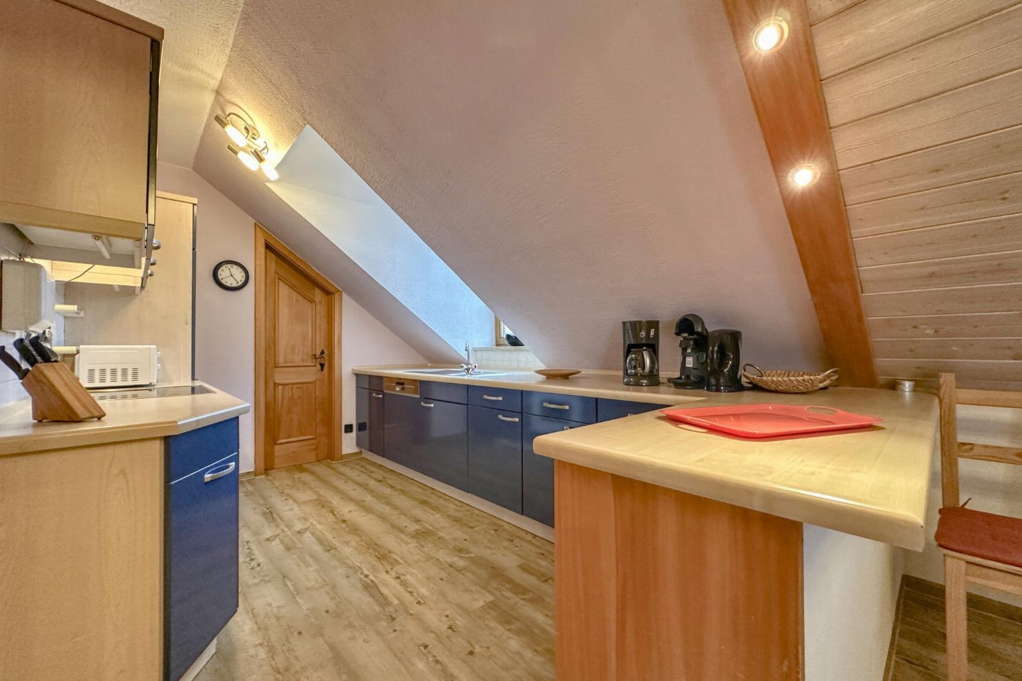 Op de 1e etage: woonkamer met TV(flatscreen, satelliet), zithoek, radio , eetkamer met eettafel, zithoek , open keuken met waterkoker, broodrooster, fornuis(keramisch, elektrisch), afzuigkap, koffiezetapparaat(filtermaling, pads), oven, magnetron, afwasmachine, koelkast( vriesvak), koel-/vriescombinatie , slaapkamer met 2-pers. bed(200 x 200 cm) , badkamer met ligbad, wasbak, douche, wc, haardroger