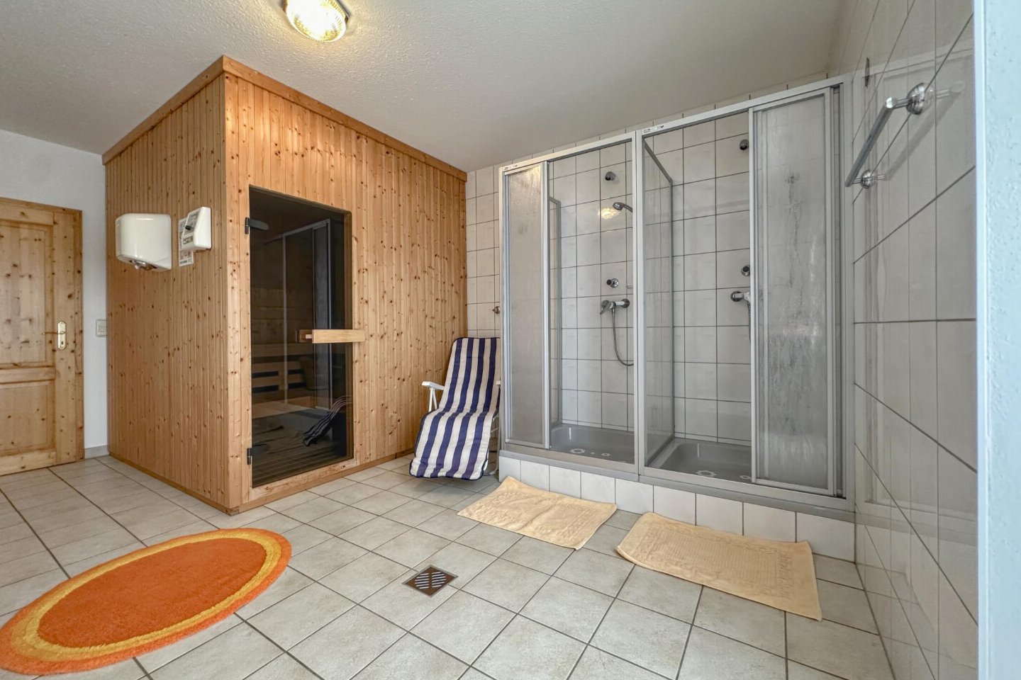 Souterrain: zitkamer met 5x eettafel(4 personen), 1x kinderstoel , keuken met waterkoker, broodrooster, fornuis(4 kookplaten, keramisch), afzuigkap, koffiezetapparaat(filtermaling), oven, magnetron, afwasmachine, koelkast( vriesvak), citruspers , saunaruimte met douche, zonnebank / solarium, sauna(tegen betaling, 10 personen)