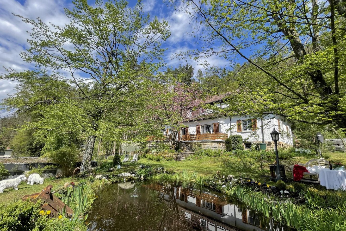 Duitsland, Beieren, WeißenbrunnJe verblijft in een combinatie van twee comfortabel ingerichte vakantiewoningen op de 1e verdieping, naast elkaar. Het verzorgde landhuis in WeiÃ