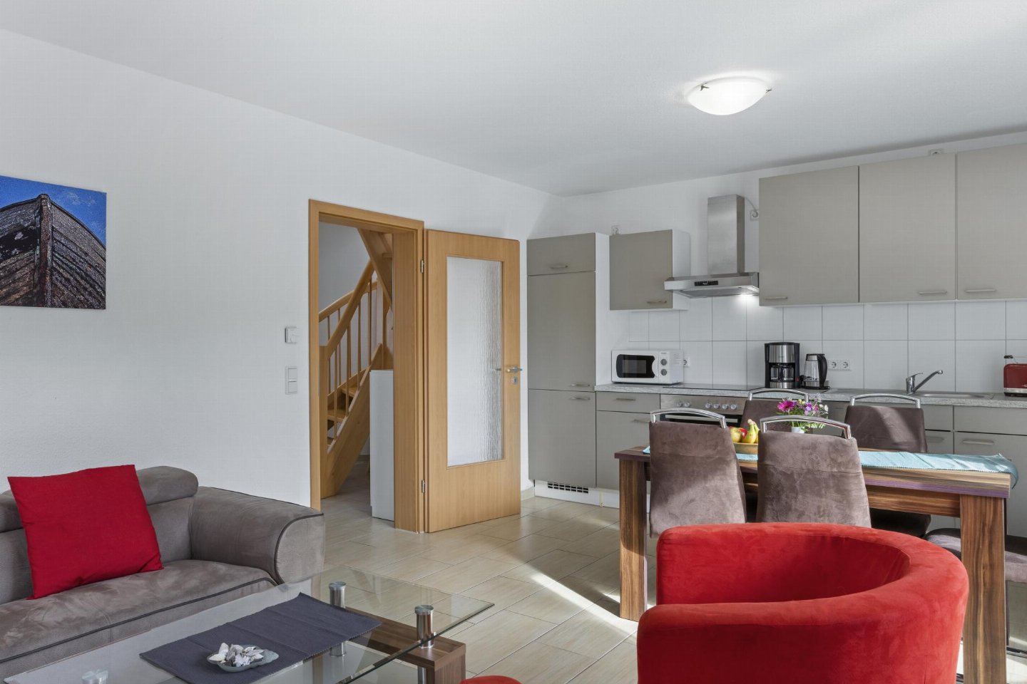 Duitsland, Mecklenburg-Vorpommern, BoiensdorfOp korte loopafstand van het natuurlijke strand wacht deze charmante twee-onder-een-kapwoning op je in Boiensdorf aan het Salzhaff - een toevluchtsoord voor iedereen die op zoek is naar rust en stilte dicht bij de zee. Het huis heeft een zonnig terras, een gedeeltelijk zijzeezicht en een aparte fietsenberging.