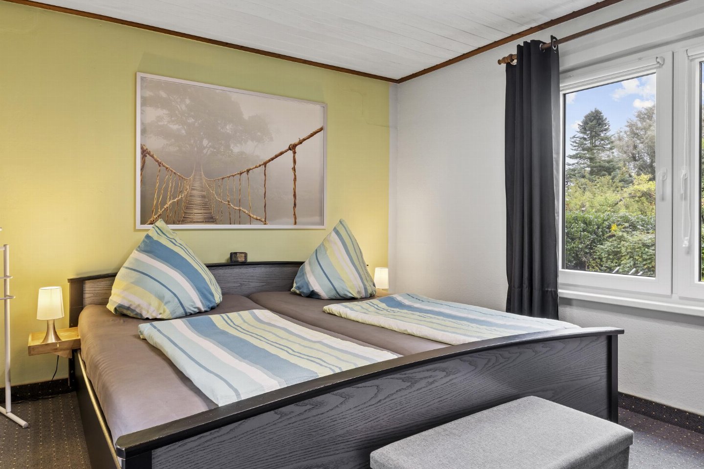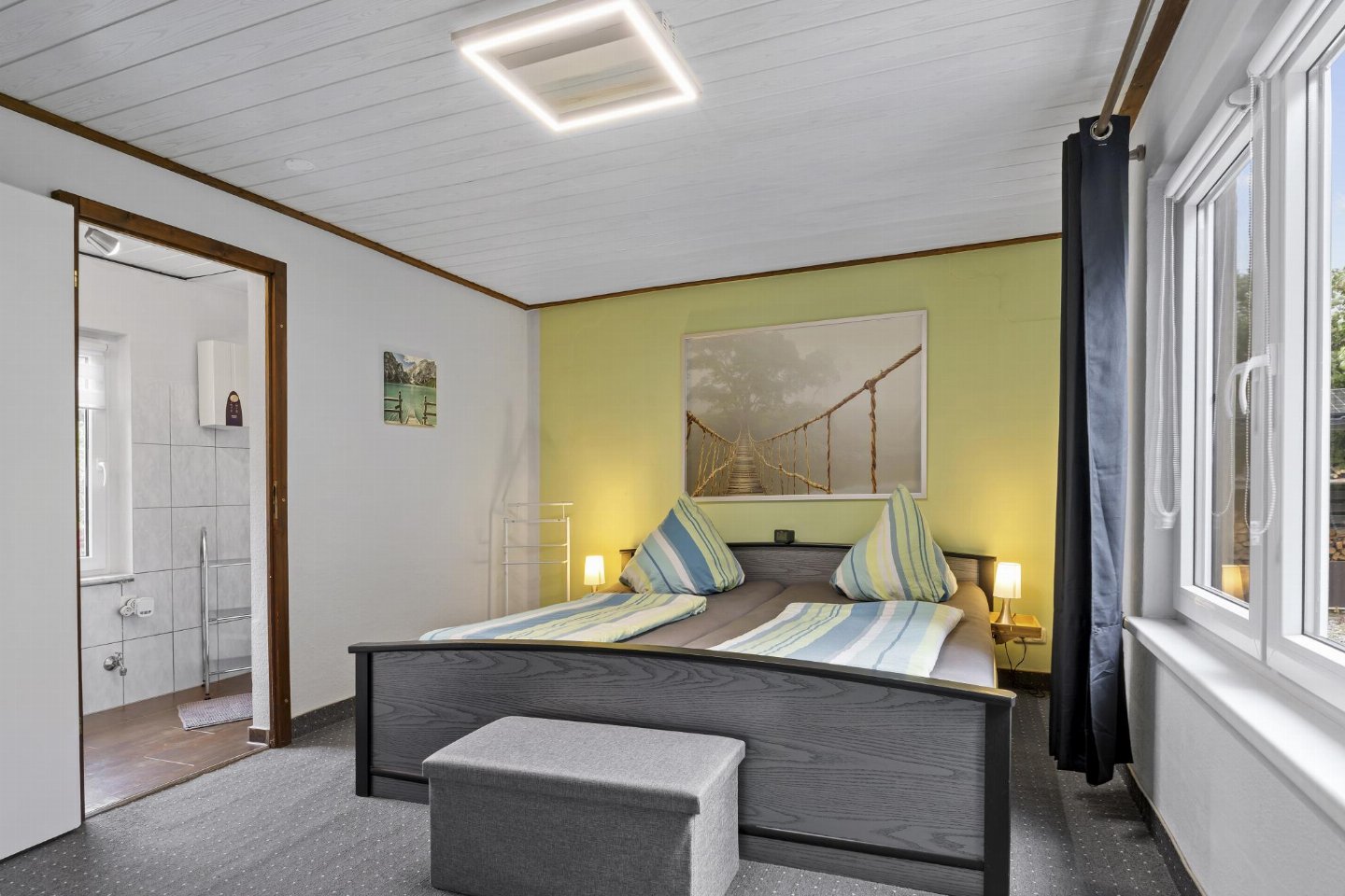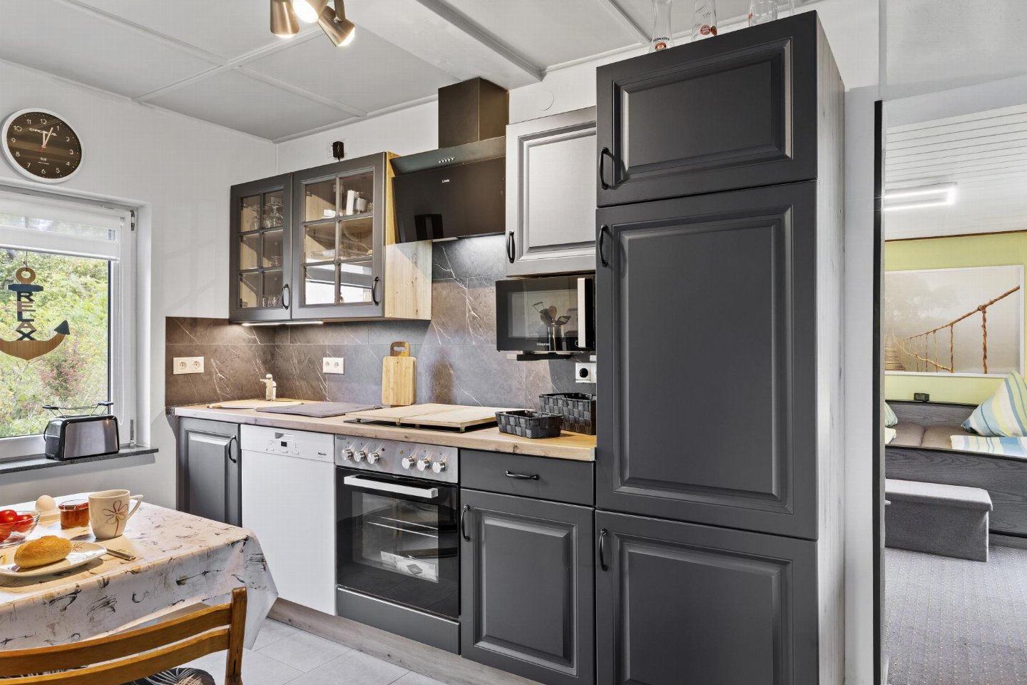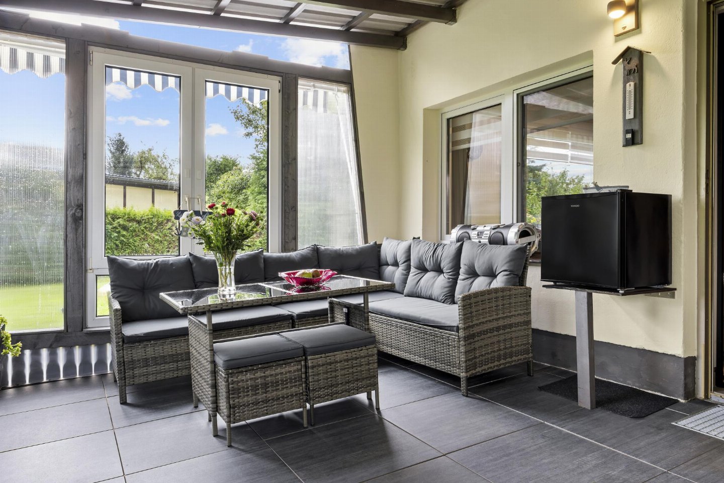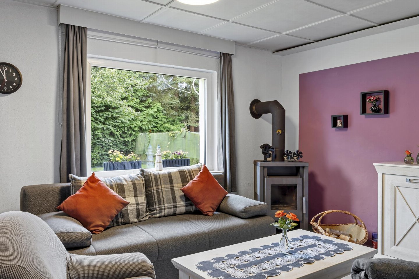 Begane grond: keuken met radio , woon/slaapkamer met 2-pers. slaapbank, TV, open haard , slaapkamer met 2-pers.king size bed, TV , badkamer met wasbak, douche, wc , serre/veranda met TV, zithoek, radio
