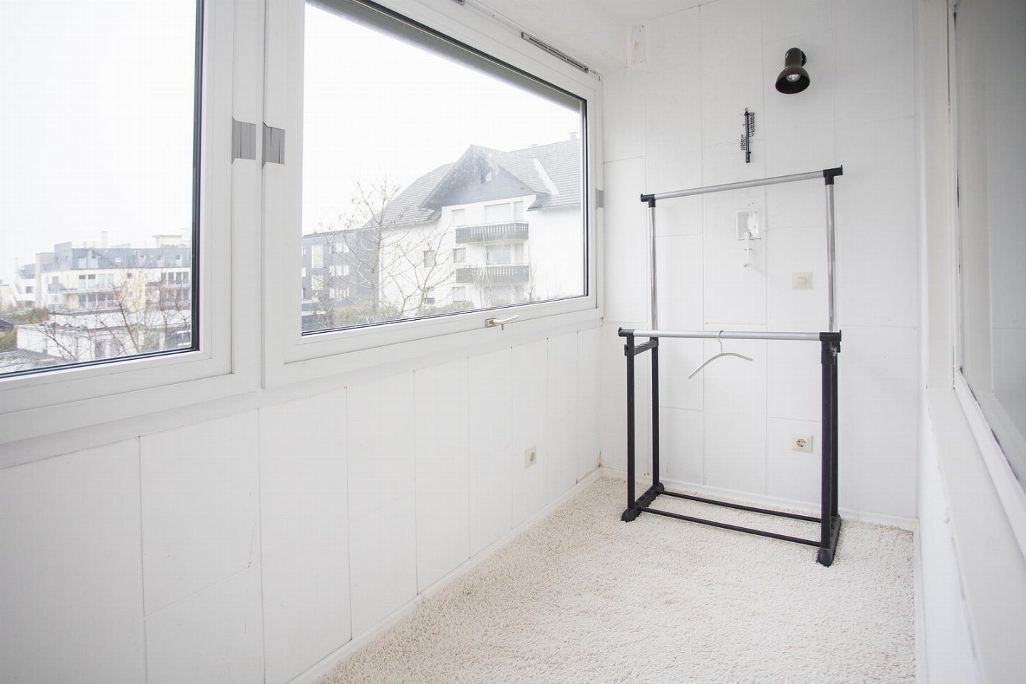 balkon. De zithoek, keuken en de